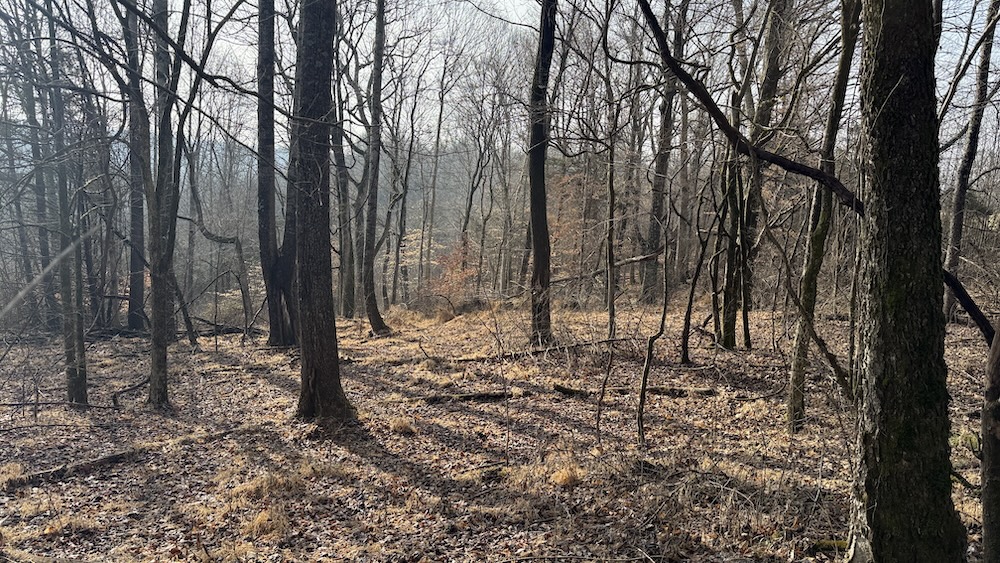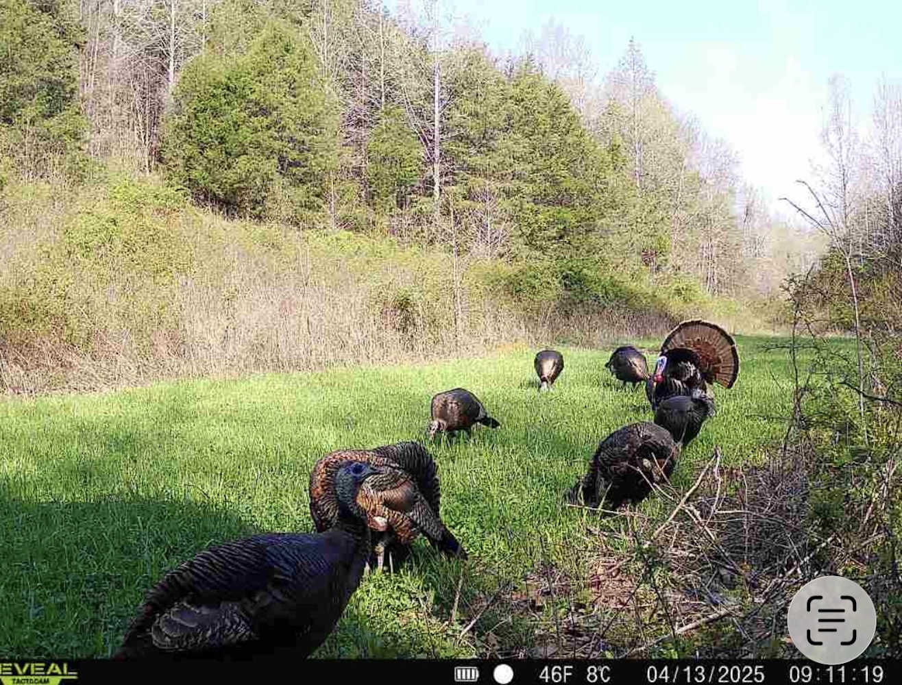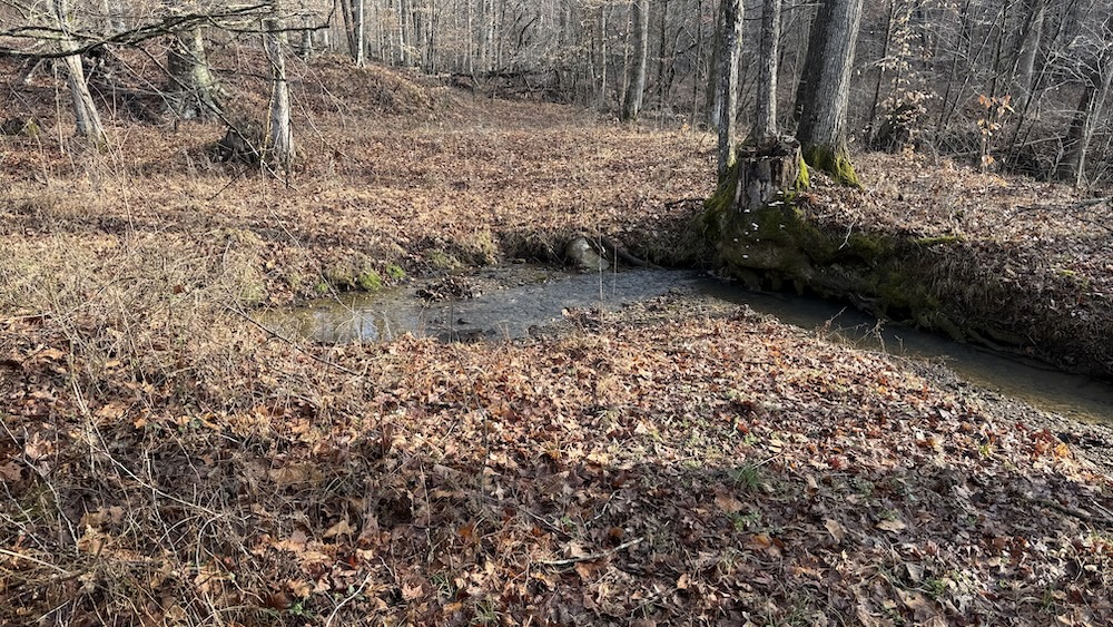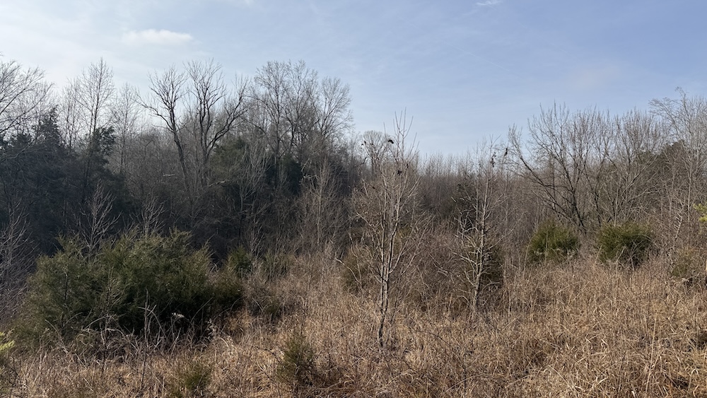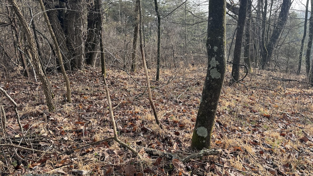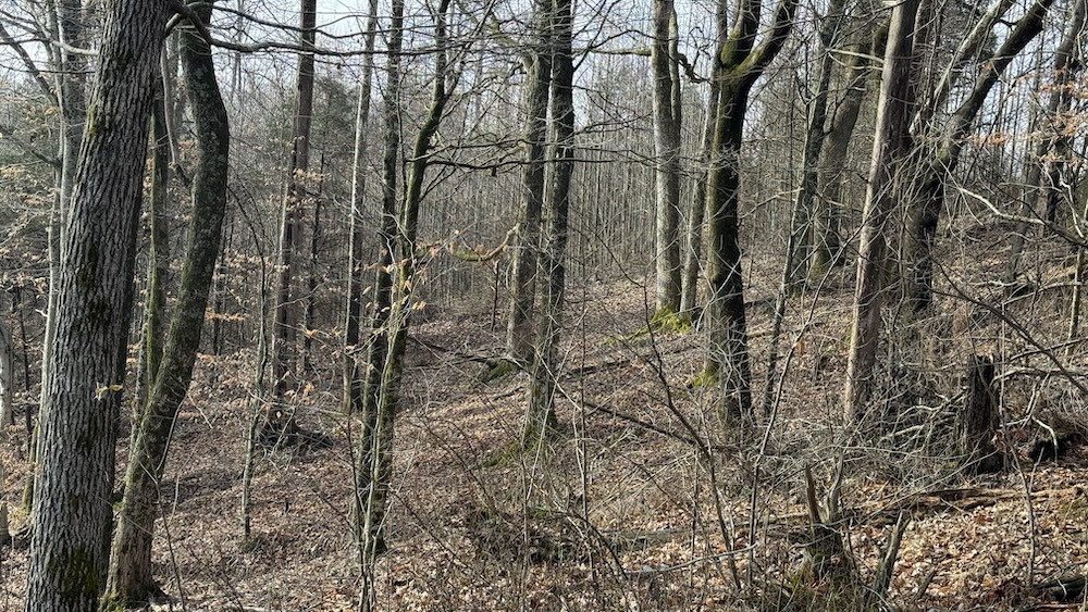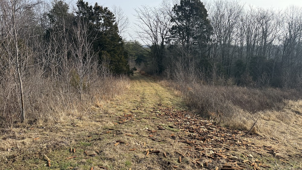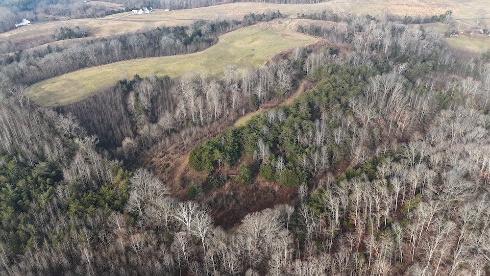 Approximately eight acres of the property are in crop ground that can be used for row crops or annual food plots to support wildlife. Surrounding the crop ground are areas of hardwood draws and thick cover that create natural transitions between open and wooded terrain. The topography includes gentle slopes leading into more wooded hollows and draws, offering varied habitat and terrain. The mix of open ground and cover provides habitat for deer, turkey, small game, and other wildlife species commonly found in south central Kentucky.