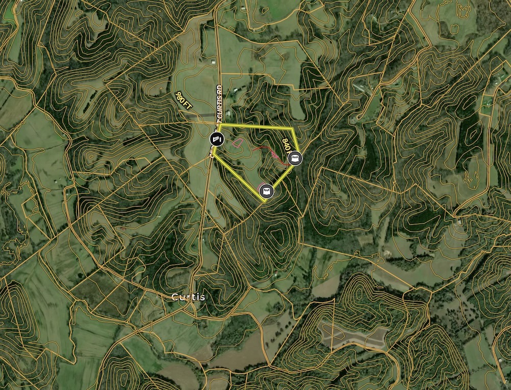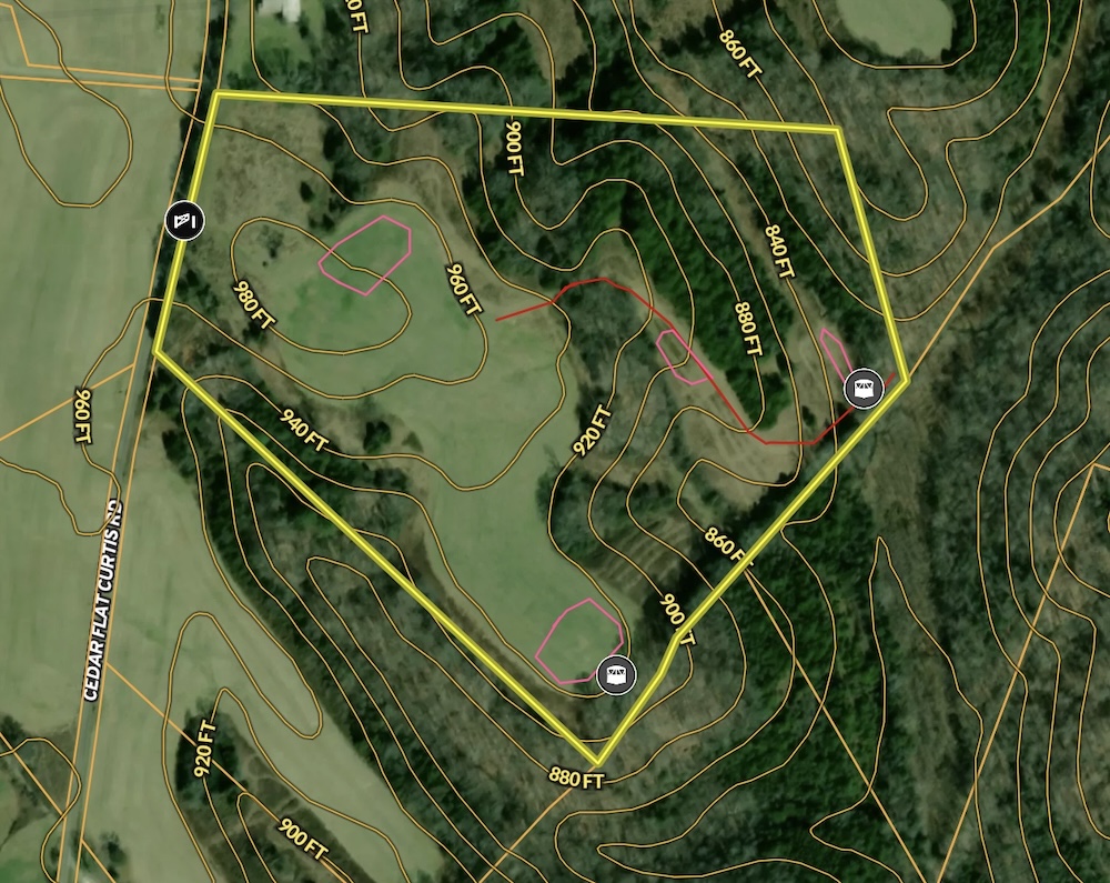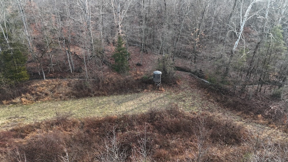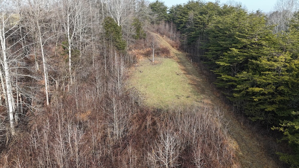 This 33.88-acre tract in Metcalfe County, Kentucky, offers a blend of open crop ground and mixed timber, supporting a range of recreational and rural land uses. The property is located on Cedar Flat Curtis Road in the rural area near Curtis and Cedar Flats in south central Kentucky. The gated entry provides controlled access, and the tract includes multiple established food plot areas, two Banks blinds, and a two-person ladder stand. An open building site near the entrance provides a location for a future residence or weekend cabin with utilities likely accessible along the road.