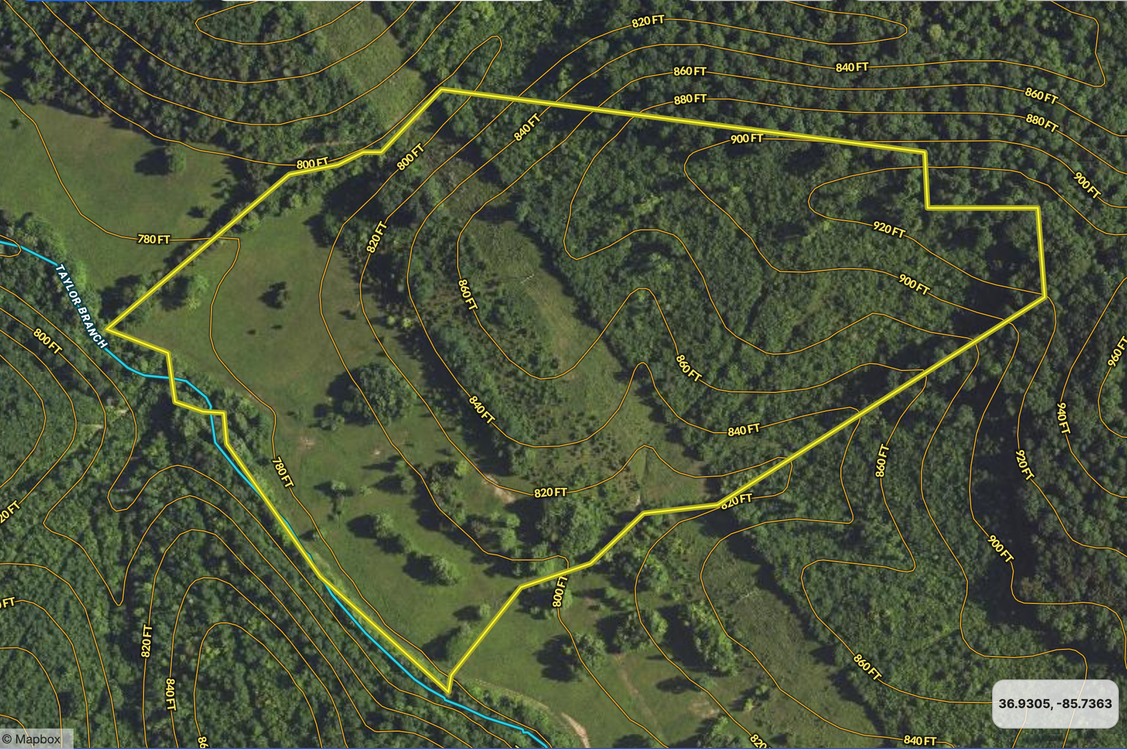 - Taylor Branch flows along the southwestern boundary