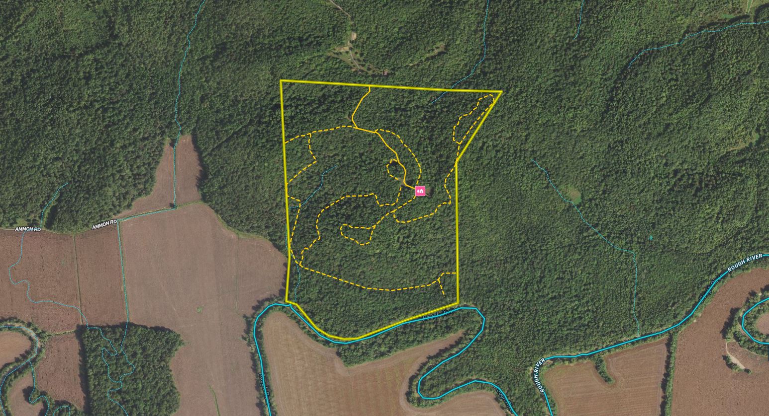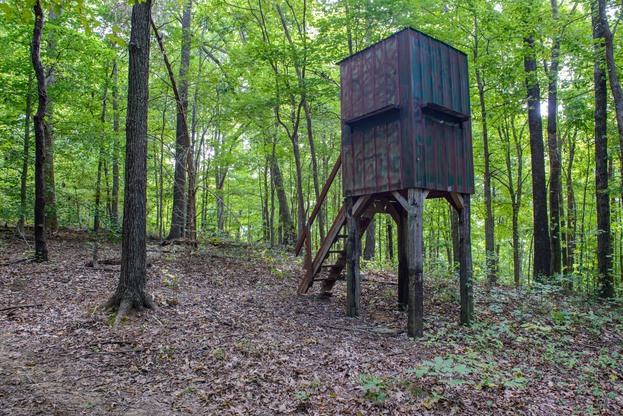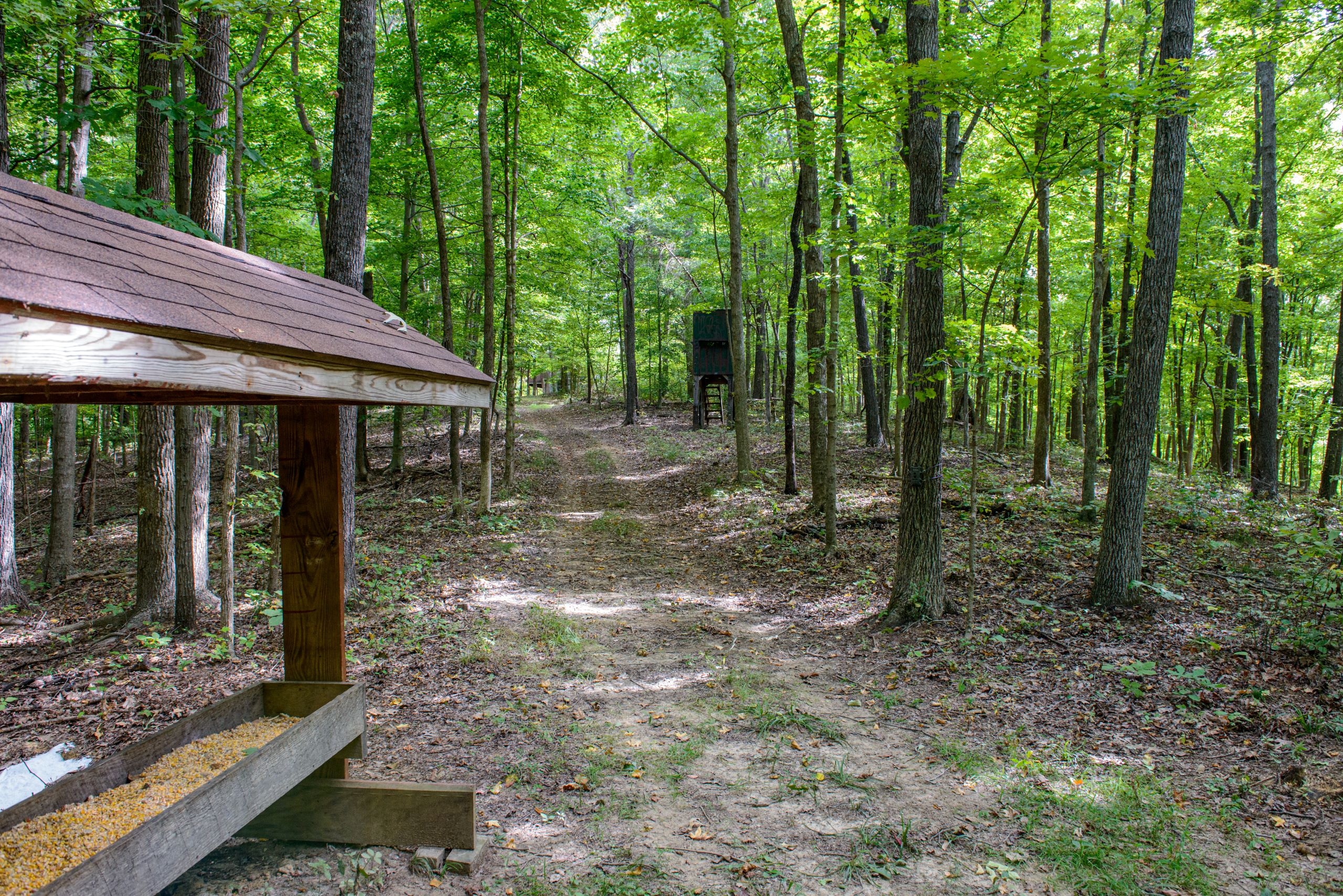 This property has everything needed for quality deer and turkey hunting with the added bonus of an off-grid cabin! The cabin has reclaimed wood walls throughout, an established solar system, a propane stove and wall heater, a bathroom, and a covered front porch. A 500-gallon propane tank is located next to the cabin, along with a storage shed. The property has a rolling topography with timbered ridges and draws throughout. It has areas with mature stands of softwoods and mast-producing hardwoods and other areas of dense security and bedding cover. There are several open areas along the entry road that would be ideal locations for food plots with the potential for more food plot acreage to be opened up. An established trail system runs throughout the property and provides easy travel for farm work and quiet access to favored stand sites. There are several blinds and feeders located in proven ambush sites. The southern end of the property adjoins large row crop acreage and has approximately one-half mile of frontage along the Rough River. The river is a major travel corridor and provides water for wildlife all year long. If you’re looking for a mostly timber hunting tract with an off-grid cabin located in an area known for big bucks, give us a call today and schedule your private tour!