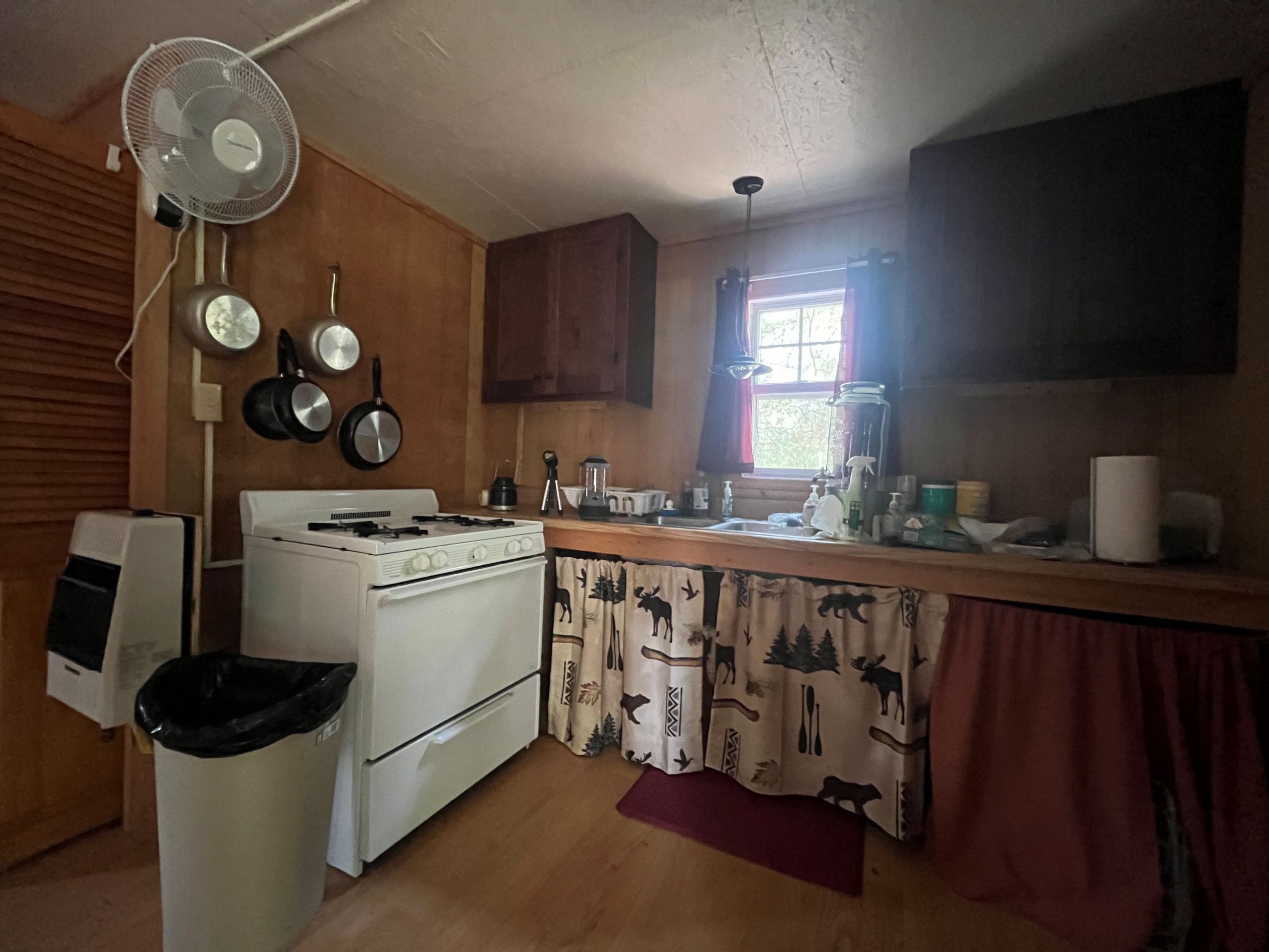 - Off-grid cabin with gas heat and stove