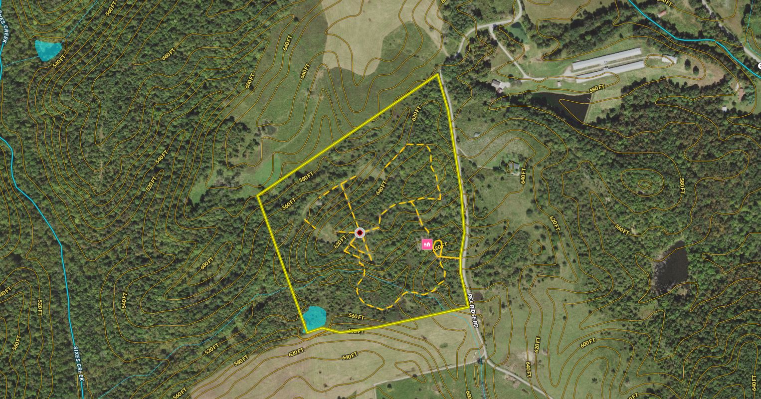 - Well-built deer blind in the property’s core, centered in a spoke with additional shooting lanes and paths