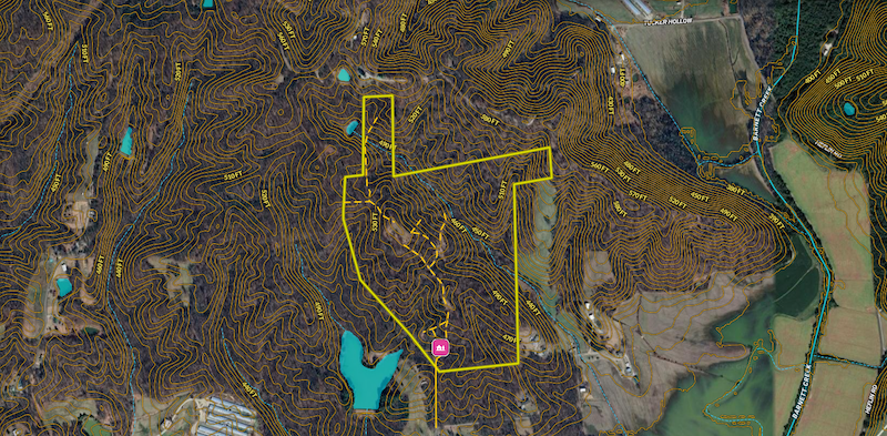 Food plot, Trail network, Tree stand/Blinds, Internal Road Network, Gated entrance