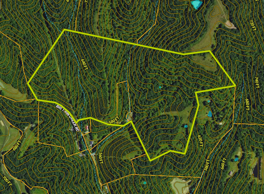 - Approximately 821 feet of road frontage on Big Twin Creek Road