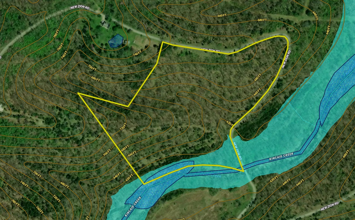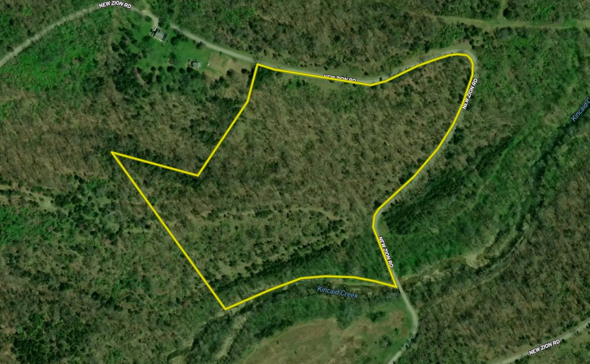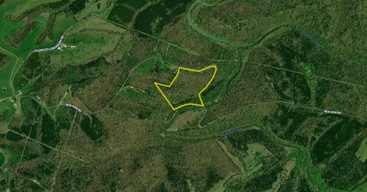 Located Northeast of downtown Falmouth, you will find this versatile tract of recreational land with ridges and bottomland. This property boasts ~2000 ft of road frontage on New Zion Rd and ~750 ft of Kincaid Creek frontage at the property's southern edge. A gravel driveway leads you to a cleared building site perfect for a cabin, house, or barn. If you are looking for a small recreational/hunting tract that packs a punch, this may be exactly what you are looking for! The forested areas provide significant habitat for deer and turkey bedding. There is roughly 120 ft of elevation change, with the higher parts being up at the building site/cleared area and sloping down and leveling out at the creek bottom. Pendleton County is a Zone 1 deer county. Don’t let this opportunity pass you by! Give Land Specialist Josh Freeland a call today to set up your private showing!