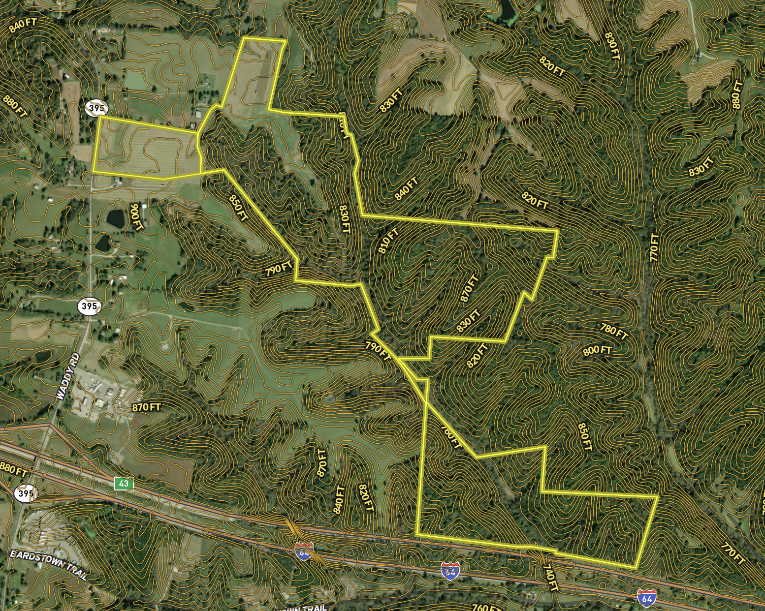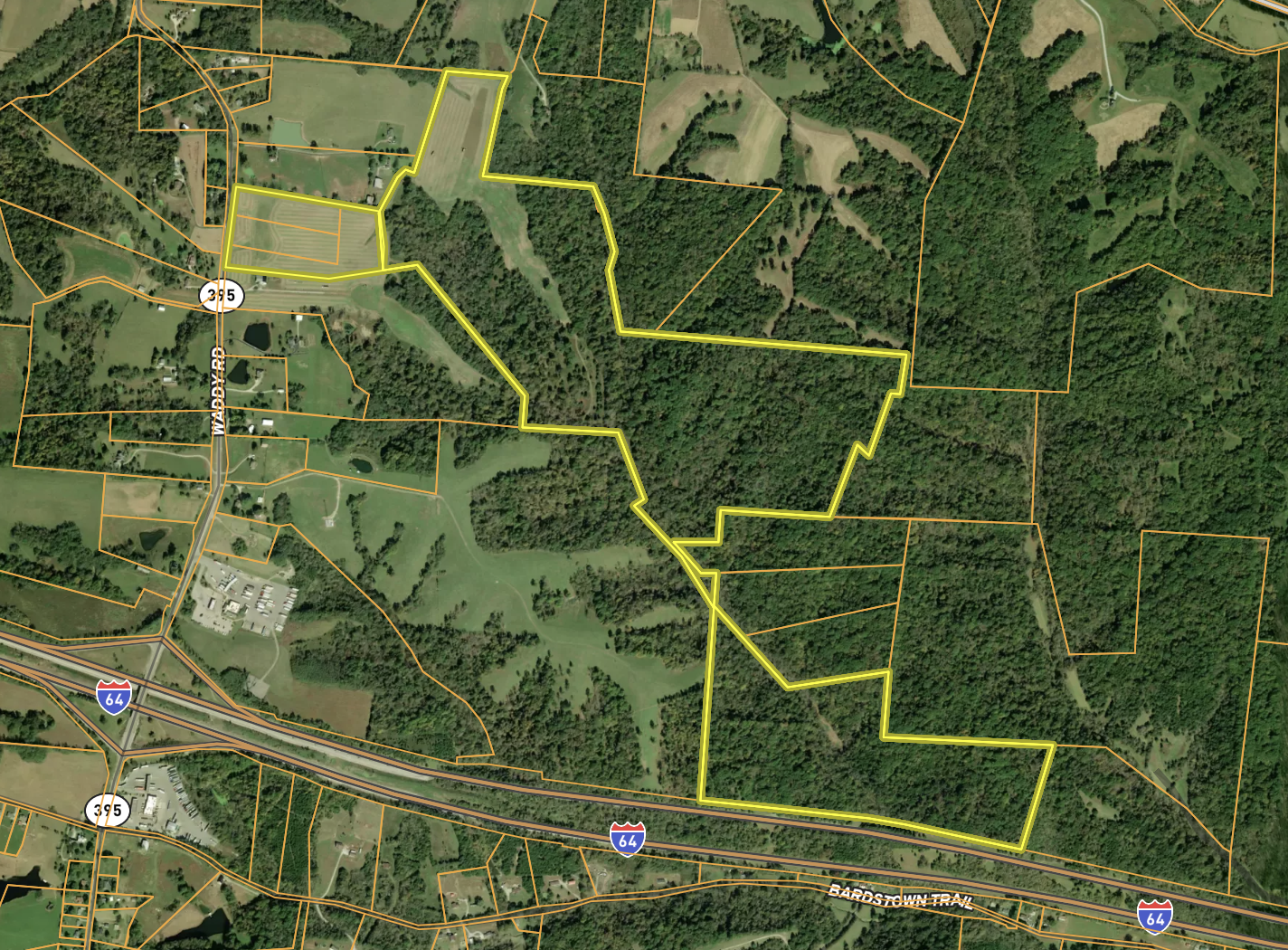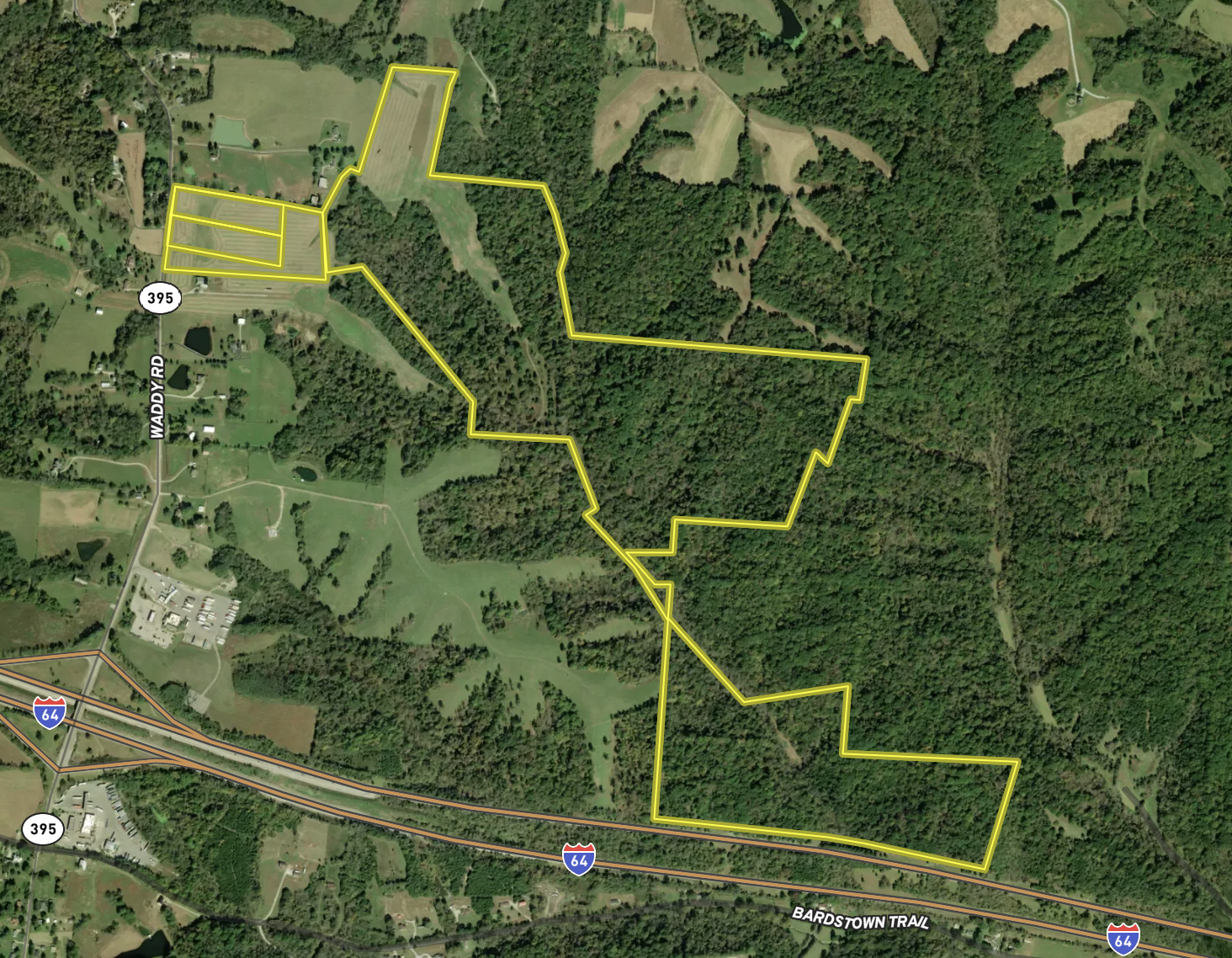 If you’re looking for that special property with just about everything to offer, give this one some serious consideration. What a Tract!! It is very conveniently located between Lexington and Louisville, with significant road frontage on I-64 and Waddy Rd. This property not only holds long-term investment potential but it is loaded with other attractive features. Included in this large acreage farm are two five-acre lots recently surveyed that reside along Waddy Rd. less than a mile from Exit 43 (Waddy/Peytona). Rolling topography here allows for multiple building sites and 50+ tillable acres currently utilized for corn. The remaining mostly wooded areas provide substantial seclusion and are home to a multitude of wildlife. An extension of the Ballard Branch flows the length of the property, providing added benefit. For the past eight years, this farm has been managed for mature whitetails, and a minimum number of bucks have been taken. The results are evident! A mix of hardwoods and soft mass cover with edge and browse provide ample cover for plenty of turkeys, too! Not to mention plenty of areas to supplement with food plots and other habitat improvements. Whether it’s building your dream home or having your own working farm with recreational benefits, all the while owning property in a prime location for investment, the possibilities here are endless. Give listing agent Brent Rorie a call today to set up a private showing if this sounds right for You!!
