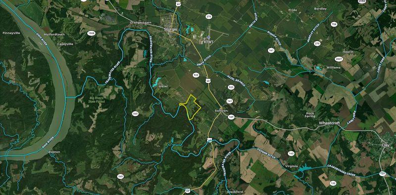 This 234+/- acre property in Union County, Kentucky is located just outside of Sullivan and offers more than eight-tenths of a mile of frontage on the Tradewater River. Currently used for pasture, the property is fenced and cross-fenced, with multiple ponds and small lakes providing water resources for livestock and wildlife. The soils on approximately 128 acres have an NCCPI rating of 60.78, indicating strong potential for row crops or other farming uses. The property is primarily flat, with sections of gently rolling hills. One hilltop in particular offers phenomenal views, overlooking the landscape and provides a beautiful build site. The property features good road frontage, providing convenient access for vehicles and equipment. Several ponds and lakes are scattered throughout the property, ideal for livestock water sources and offering opportunities for fishing. The property’s combination of river frontage, pasture, and timbered areas supports a diverse range of agricultural and recreational activities. Located in Union County, properties of this size and type are rarely available. The balanced mix of farmland, water resources, and diverse terrain makes this property suitable for multiple uses including grazing, farming, recreational activities, and potential building sites. For buyers seeking acreage that can suit multiple needs, this property has a lot of upside; call today, and schedule your private showing.