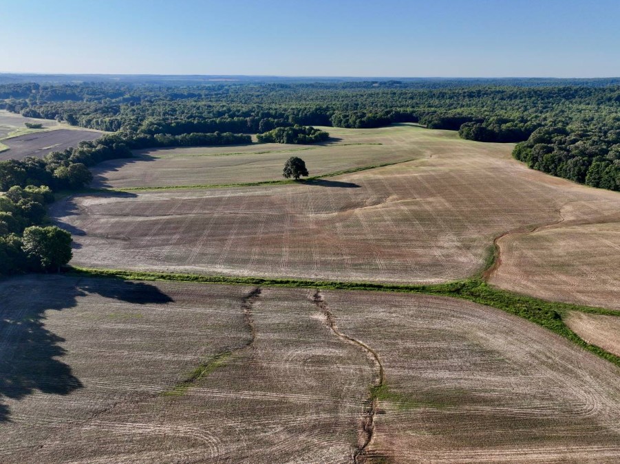 This 381-acre property offers a diverse blend of agricultural production and recreational features, making it well-suited for buyers seeking working farmland with additional land use opportunities. Approximately 128 acres are tillable and consist of high-yielding cropland with an average NCCPI rating of 74.43, indicating strong soil productivity. Other field elements are currently utilized in a combination of grazing, and hay production, demonstrating the land’s flexibility for multiple agricultural practices. With multiple ponds/lakes, the current land use supports continued agricultural production or could be adjusted to focus on a single use such as row crops, hay production, or pasture depending on operational goals. The balance of open ground and non-tillable acreage allows for diversified land management while maintaining productive value. Nearly two miles of Tradewater River frontage define a significant portion of the property. This river corridor is bordered by hardwood timber, creating a natural buffer and providing valuable riparian habitat. The wooded river edge supports consistent wildlife activity, particularly for deer and turkey. The river frontage also introduces seasonal waterfowl use, offering recreational hunting opportunities depending on water levels and migration patterns. The property is positioned well off the road, with no nearby through traffic. This layout provides a quiet setting that supports uninterrupted time on the property, and reduces external pressure on wildlife. The secluded nature of the tract enhances its suitability for long-term land stewardship, recreational use, or a combination of both. From an investment standpoint, this property offers multiple avenues for use and income potential. The tillable acres provide agricultural value, while the timbered river frontage and natural cover add long-term recreational appeal. The combination of productive soils, water frontage, and acreage scale makes this property suitable for buyers seeking a large tract that can support working agriculture alongside outdoor recreation. Overall, this is a well-rounded land offering that emphasizes agricultural utility while also providing meaningful recreational attributes. Its productive tillable ground, extensive river frontage, hardwood timber, and secluded location combine to form a property that can be managed for agriculture, recreation, or a balanced mix of both.