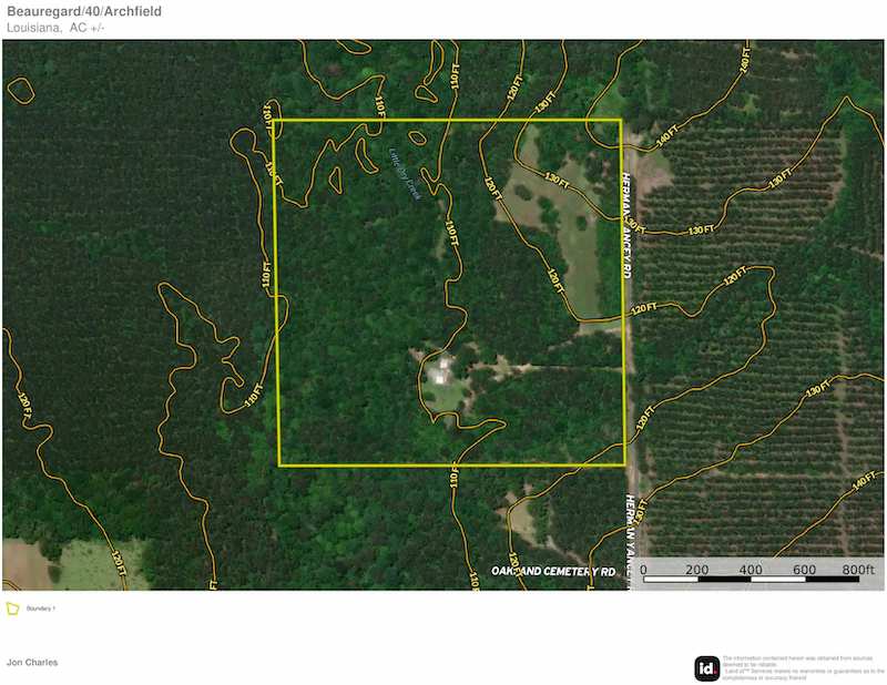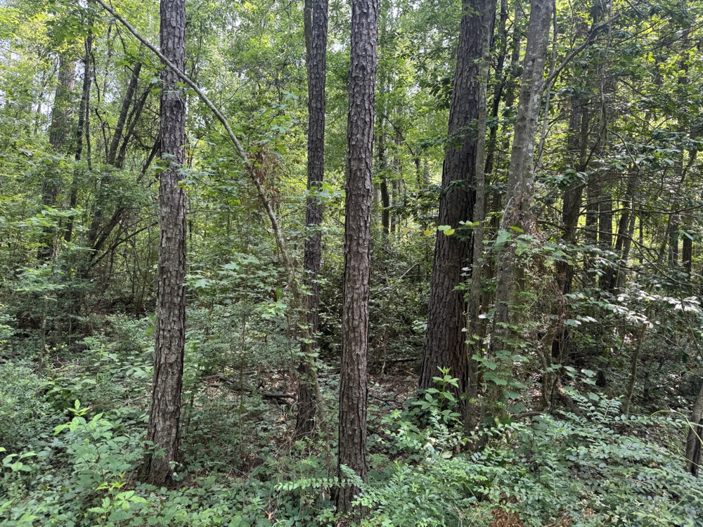 - Scattered hardwoods and pine trees