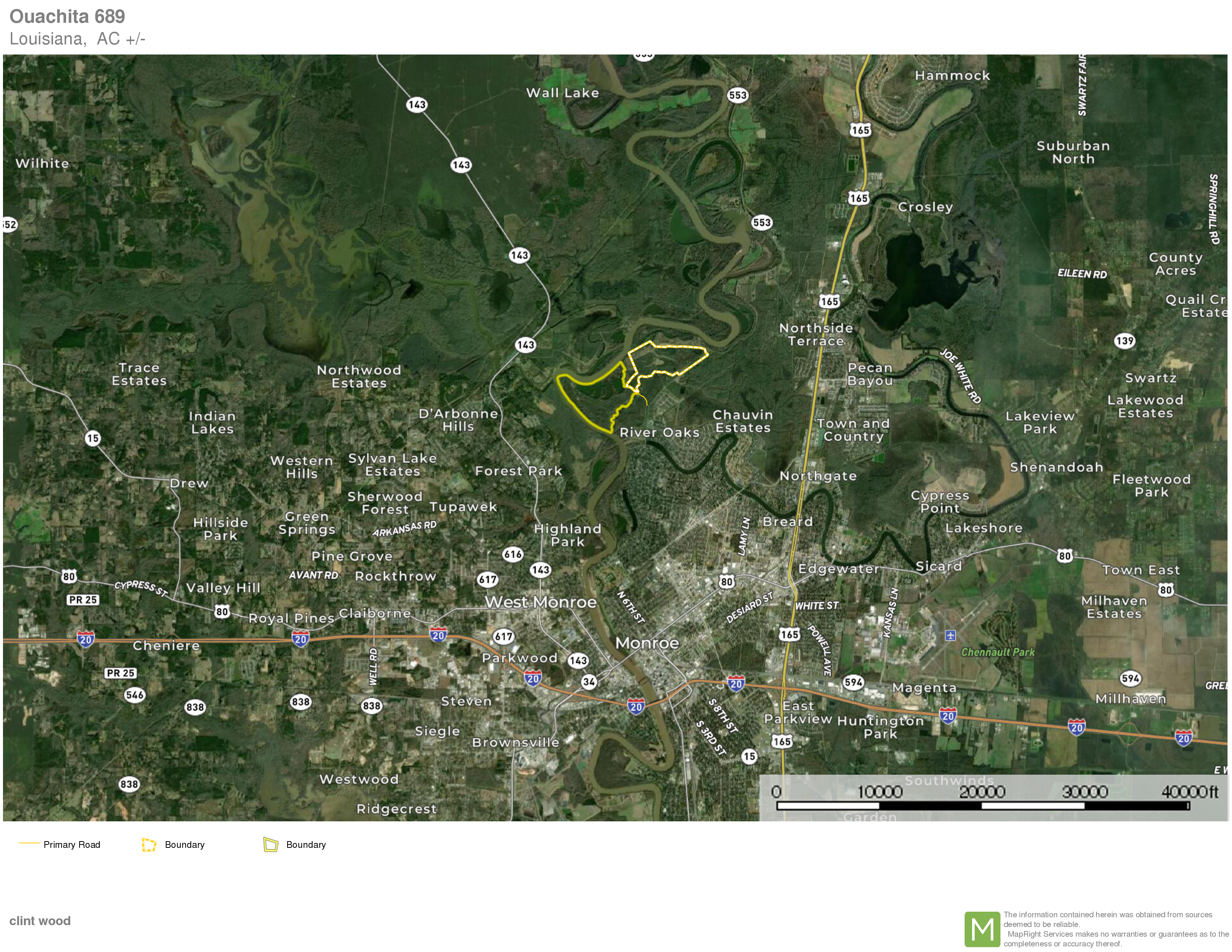 This very special property is located almost within the city limits of Monroe, yet offers some of the finest hunting opportunities in the state. Boasting nearly 2.5 miles of frontage along the scenic Ouachita River, this property also features beautiful hardwood, cypress sloughs, huge private lakes, and is boarded on one side by a bayou. The deer population is second to none and the property also has outstanding fishing lakes as well as boating for year-round recreation. Beautiful Virgin hardwood timber consisting of mostly Oak offers abundant forage for the wildlife. Food plots, feeders and deer stands are abundant as you enjoy some of the finest hunting in the South. Amenities include raised gravel roads throughout the property, utilities, outstanding access, the ability to use a private airstrip, and the opportunity to purchase one of several housing or camp options.