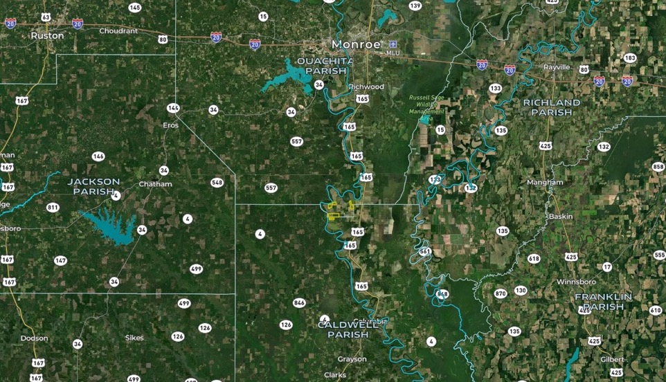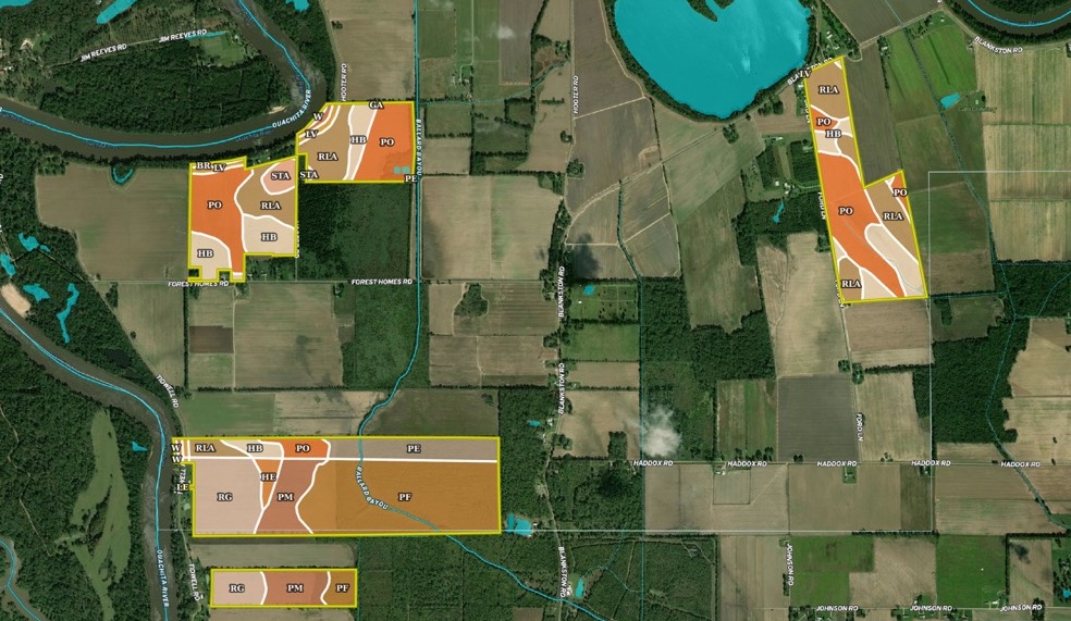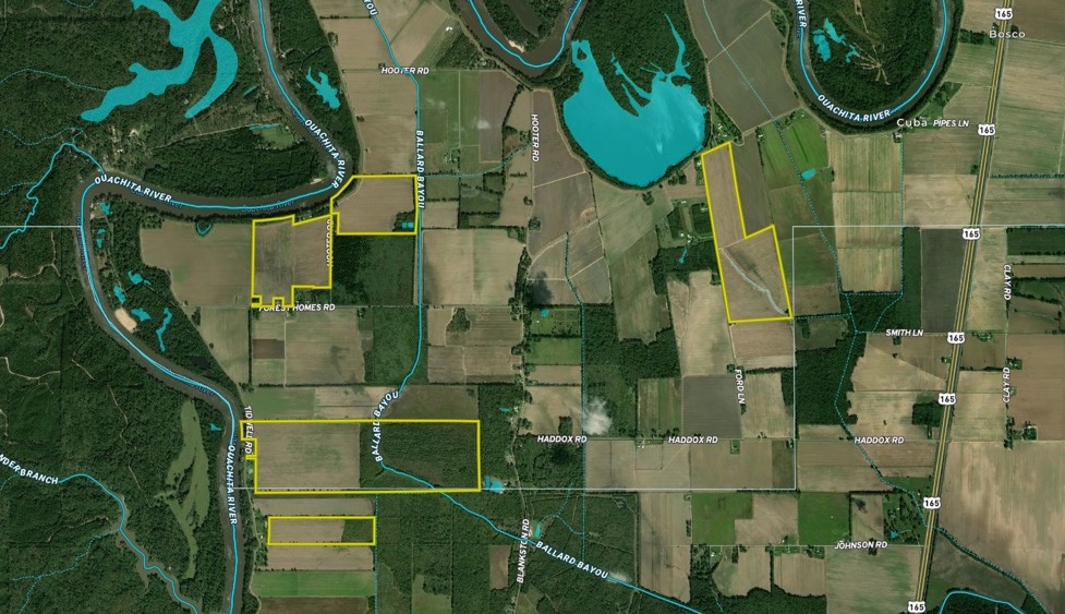 This farm consists primarily of tillable agricultural land with irrigation potential via a re-lift from the Ouachita River. The property is divided into four parcels, all within a mile of each other. The southern two tracts cover 281 acres, including 110 acres enrolled in CRP, generating an annual payment of $7,000 until the contract expires in 2033. The remaining 265 acres are largely tillable, featuring Rilla Silt Loam, Portland Silty Clay Loam, and Hebert Silt Loam soils. With road frontage and easy access, this property offers farm income and additional revenue from the CRP, providing excellent hunting opportunities. Located just 15 minutes from Monroe, this is a promising investment for those seeking a productive, income-generating property.