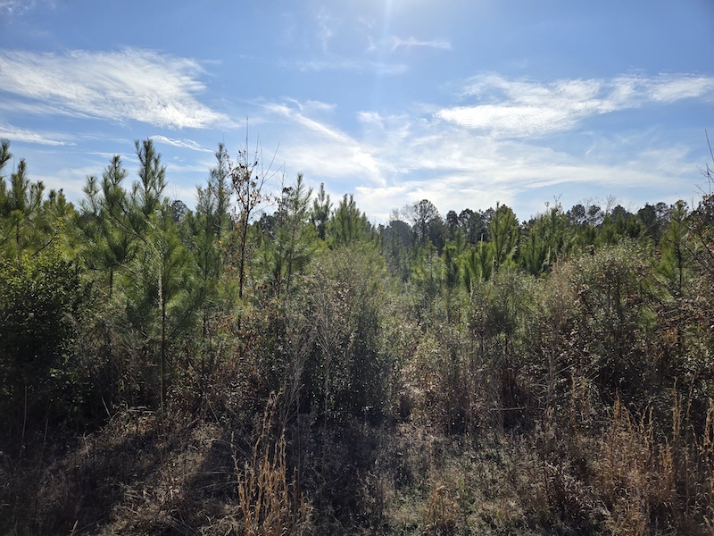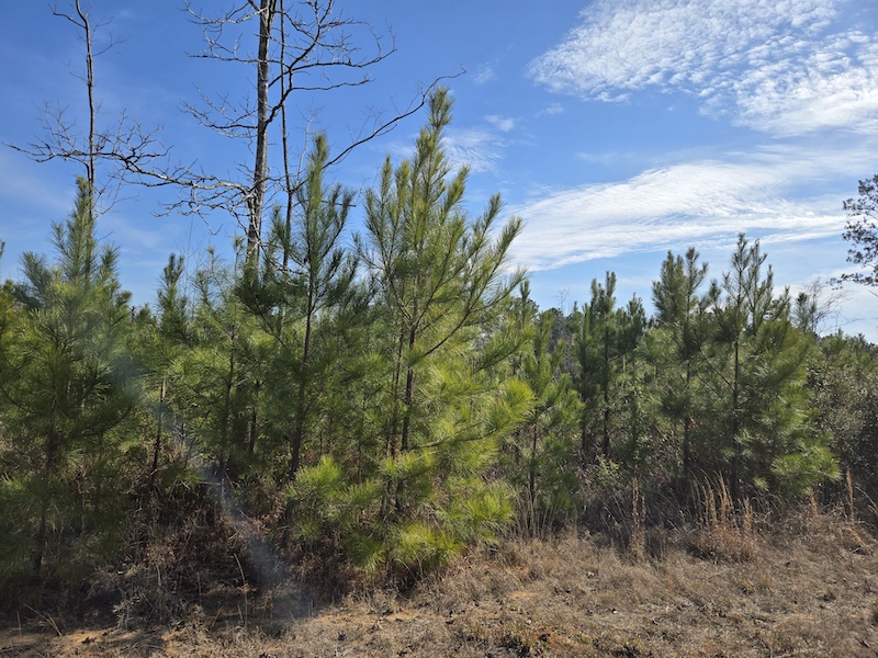 Approximately half of the property is planted in a 4–5-year-old pine plantation, providing excellent bedding cover and future timber value, while the remaining half features a beautiful stand of 15–16-year-old pine that is approaching an ideal stage for both habitat and long-term growth. This mix of age classes creates exceptional edge habitat that wildlife love, as evidenced by the abundant deer and hog sign found throughout the property.