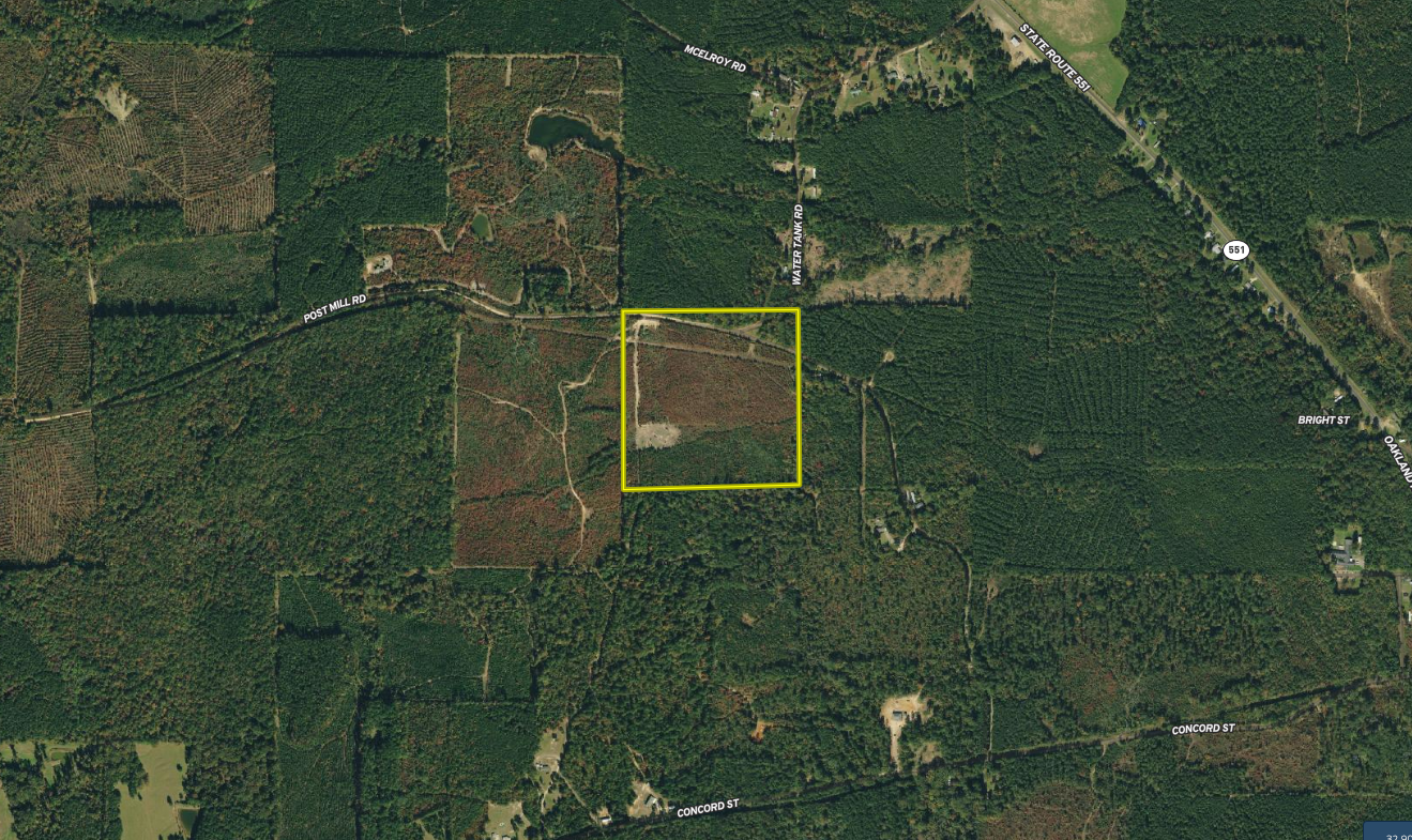 Young pine tract with good deer cover. There is a nice Food plot with a box stand on the property and a power line coming through that would make for good food plots. There is a road system as well. The 1390 feet of Post Mill Road frontage would set up nicely for a camp. There are close to 5 acres that are included North of Post Mill road. Call us to take a look.