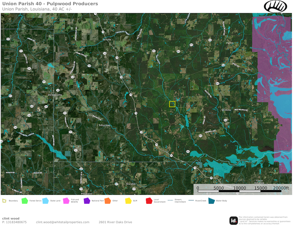 This is a nice small acreage tract with great hunting opportunities. There would be potential for a home site, and you can hunt out your back door. The property was planted in pine around 11 years ago. A low runs through the tract and is a looking deer habitat with some good edges and thickets throughout. The property is 5 miles East of Downsville and 10 miles Northwest of West Monroe. The access is from Aleeah Lake Loop Road. Give us a call to take a look.