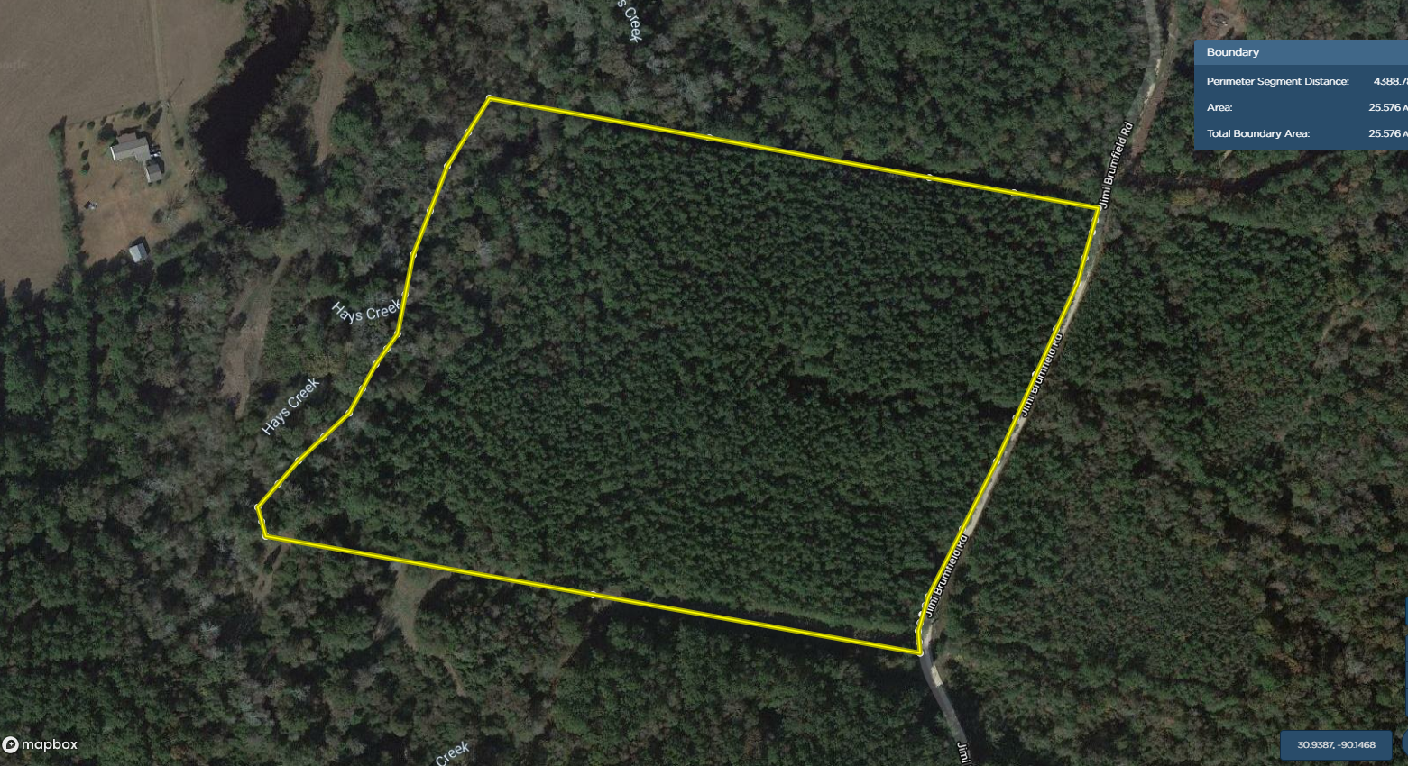 Great new listing with lots of hunting and recreational opportunities. This tract also has the potential to make a great home site. As you navigate through this tract you will see that it has an internal ATV trail that will navigate you almost completely around giving you great access to almost the entire tract. The property consists of mature pine timber and some scattered hardwoods. It also has beautiful Hays creek that borders the entire Western boundary of this tract affording you the opportunity to swim, water wildlife and occasional fishing. There is a nice food plot on the southern edge of the tract that could be ready for planting in no time to get you hunting right away. Call today for additional information or to schedule a showing.