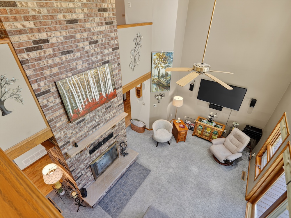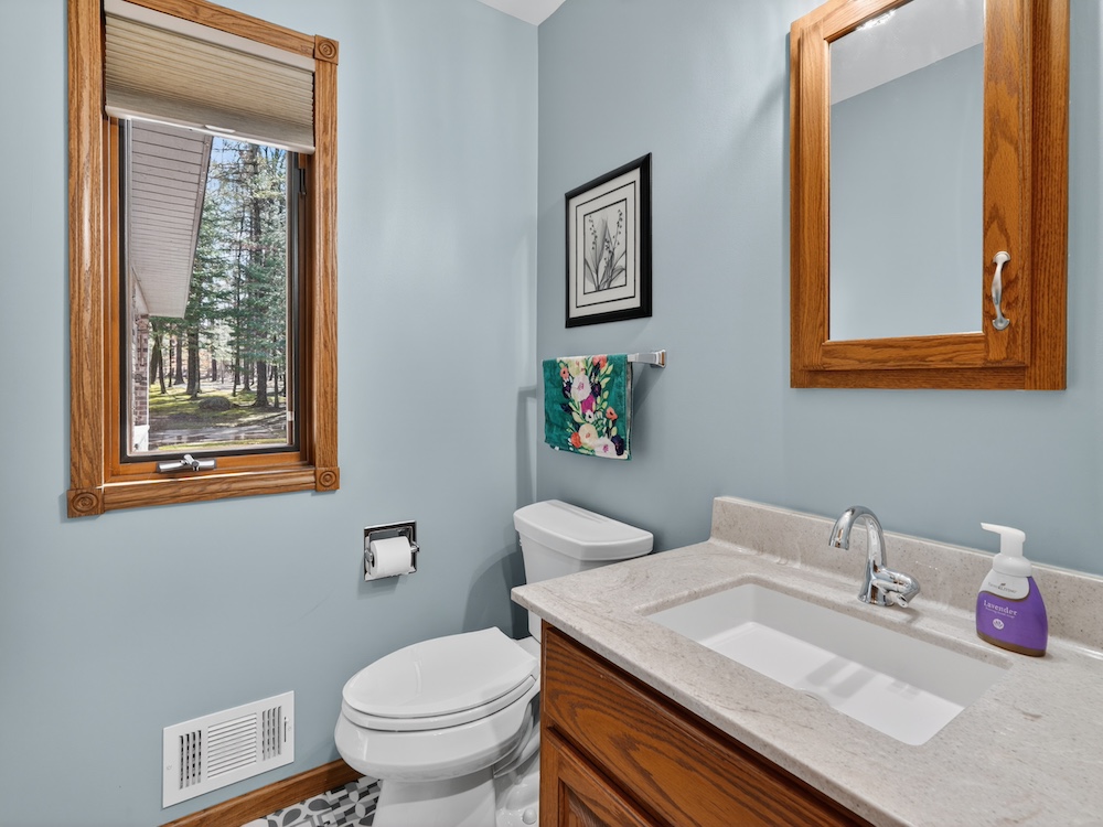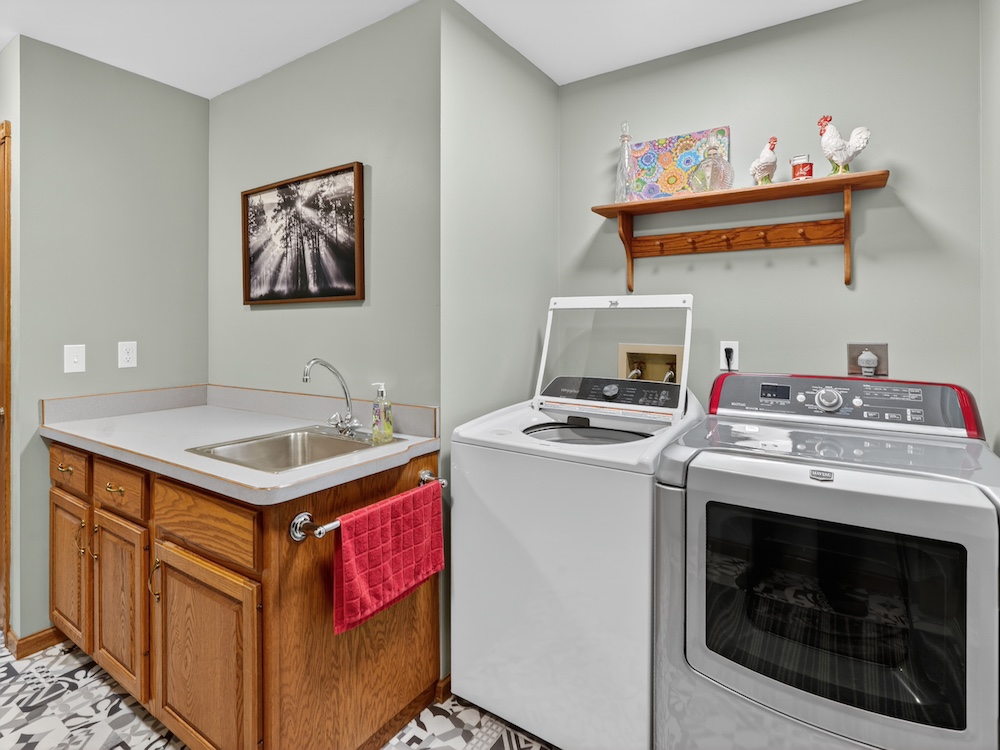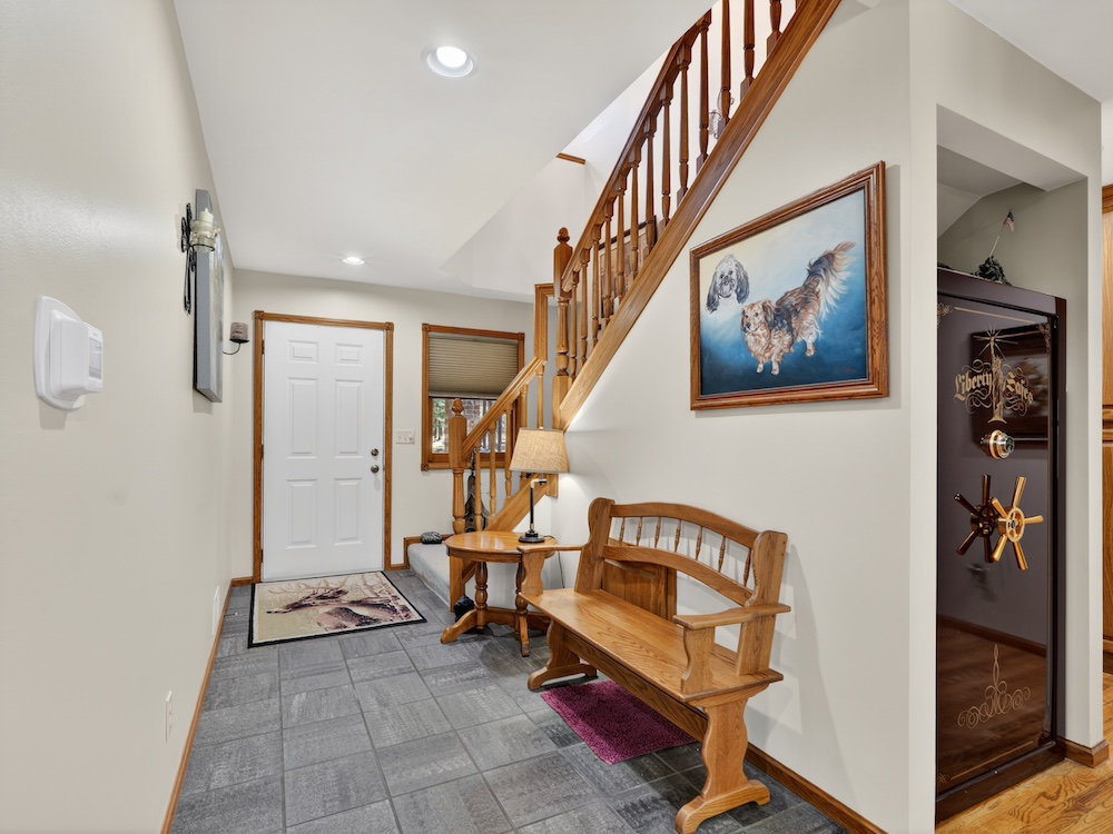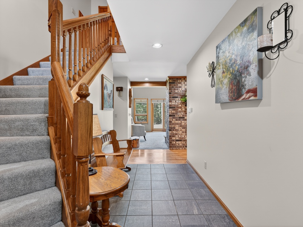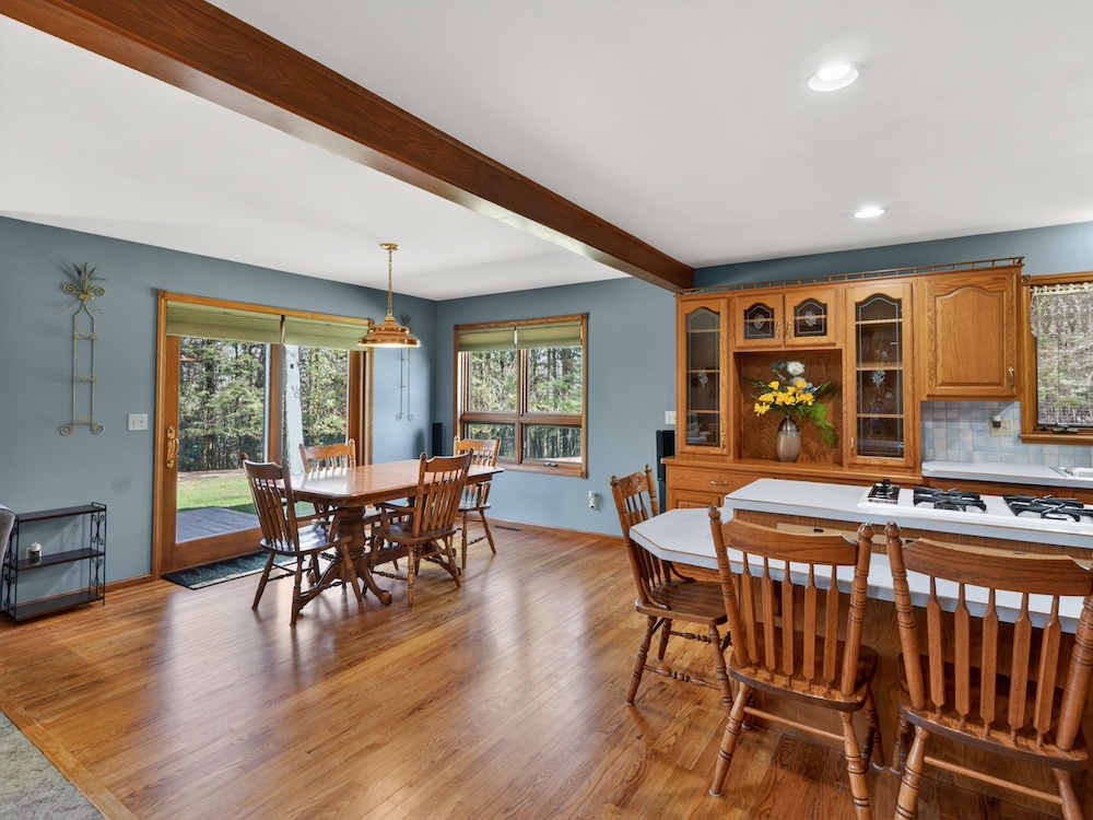 The 2,300± square foot custom-built home offers character and quality craftsmanship throughout. The open concept kitchen, dining, and living area creates an inviting layout centered around a walk-around real wood fireplace that adds warmth and a natural focal point. Custom oak trim, solid wood flooring, and quality cabinetry provide a timeless look and feel. The main-floor primary suite offers convenience and privacy, along with main-floor laundry and an additional half bath for guests.