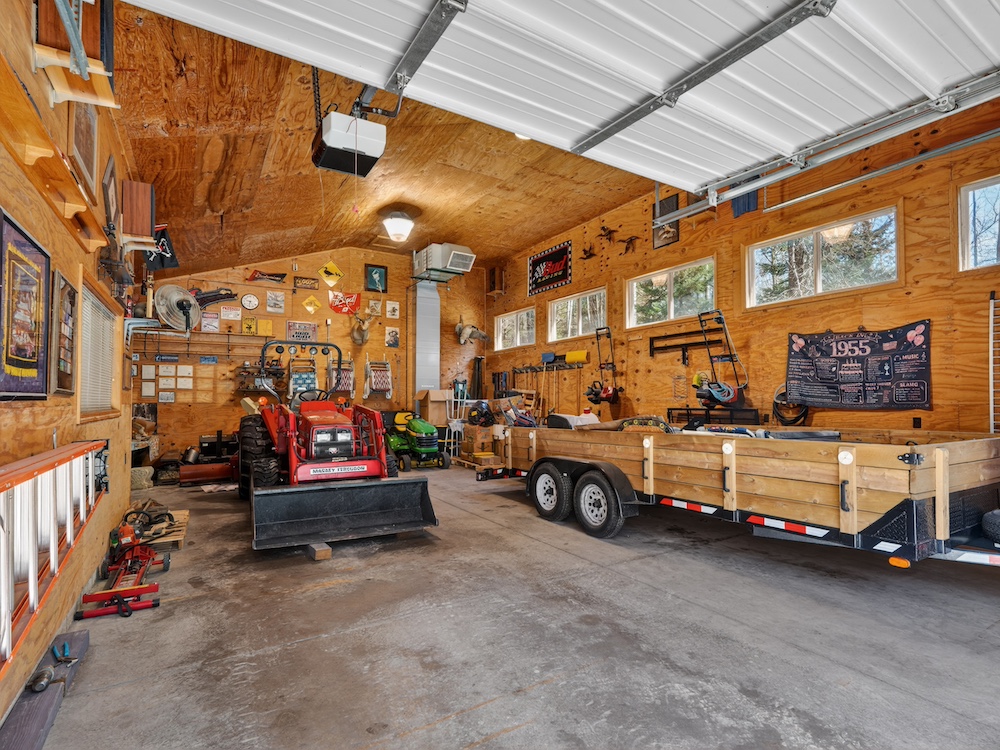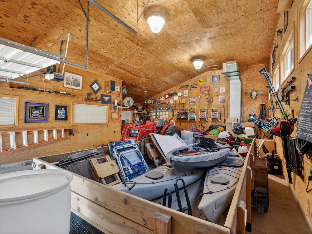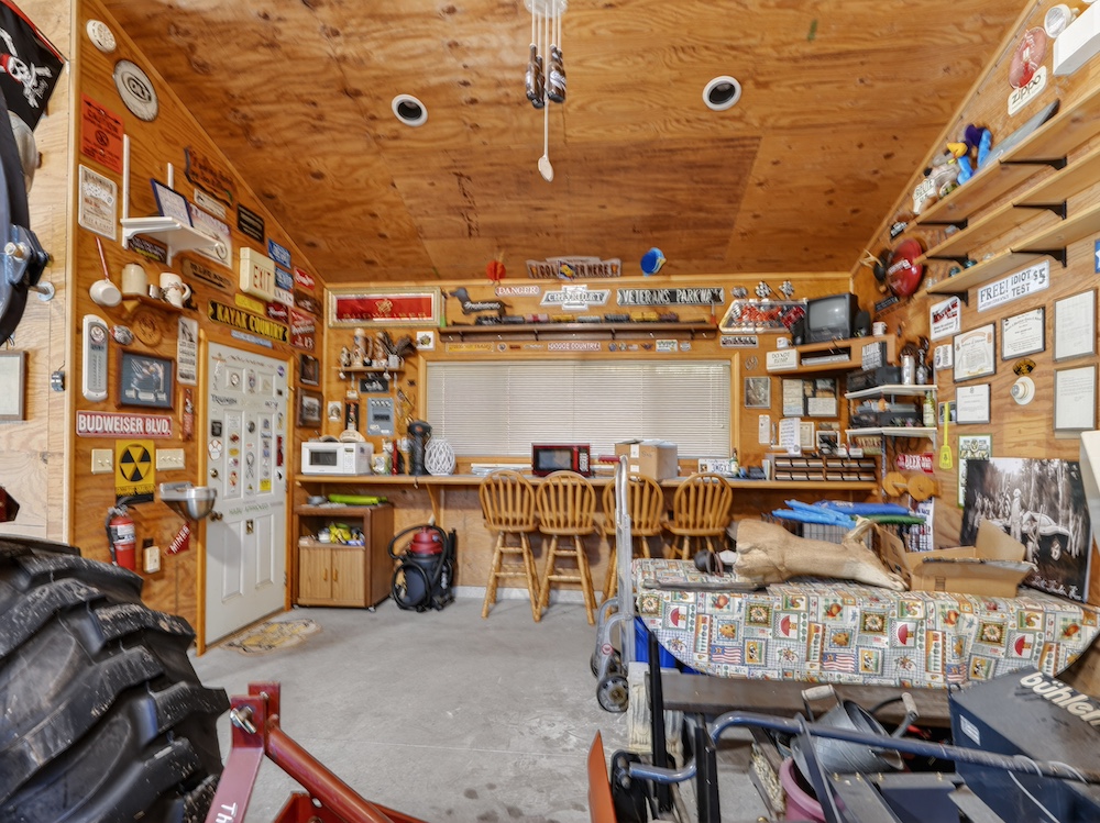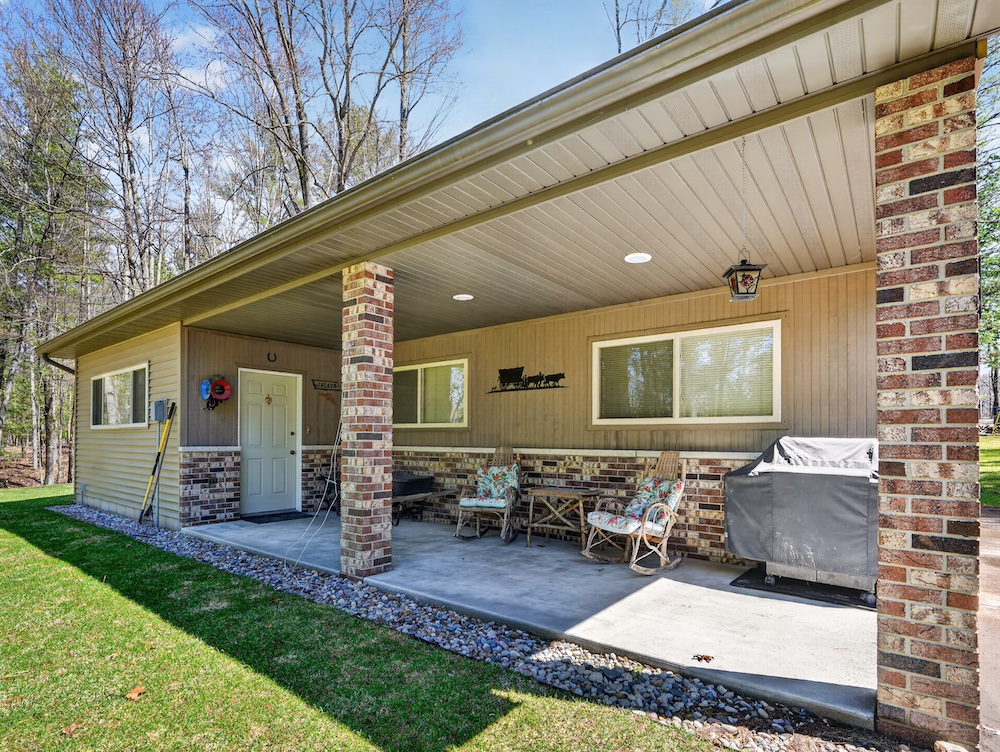 Additional improvements include a heated 40x24 barn with concrete floors, 12' and 8' overhead doors, and a covered porch area that creates an excellent setup for entertaining, equipment storage, or workshop use.