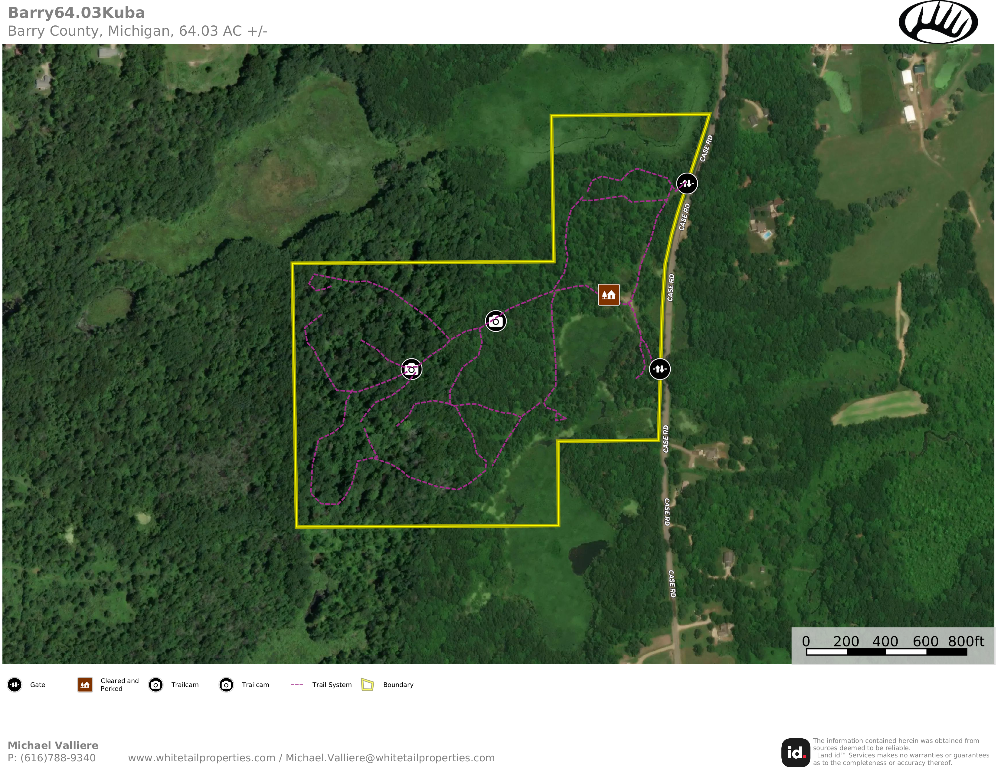 Privacy, seclusion, and rolling topography highlight this beautiful wooded tract. The manicured trail system allows the use of all acres for hunting, riding, walking, camping or recreation of any sort. Improvements include a cleared and perked potential build site, gated and graveled access points from paved road frontage and an elaborate trail system. This farm has had no hunting on it for over six years and is loaded with deer, turkeys, waterfowl, and small game. Timbered acres include maple, pine, and oak, as well as other mixed hardwoods. The densely wooded timbered acres of this great tract give way to several wetland and pond areas, offering magnificent views and great funneling features for strategically ambushing wild game on this unique recreational tract. I would love to take you for a tour of this forested tract!