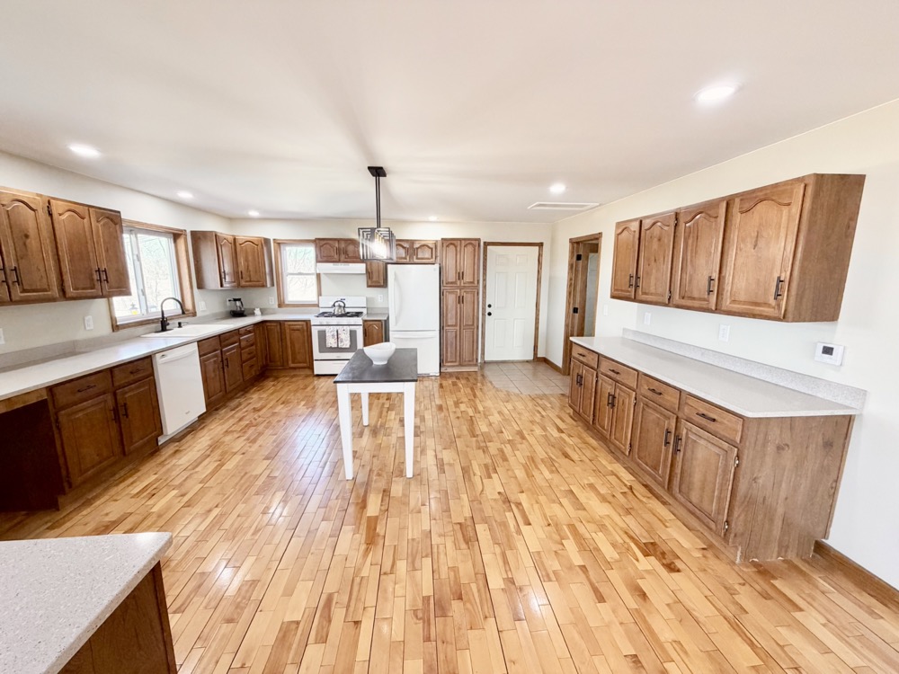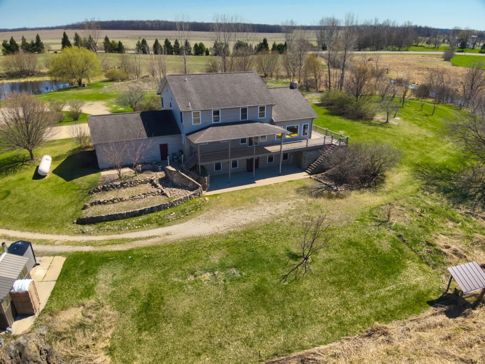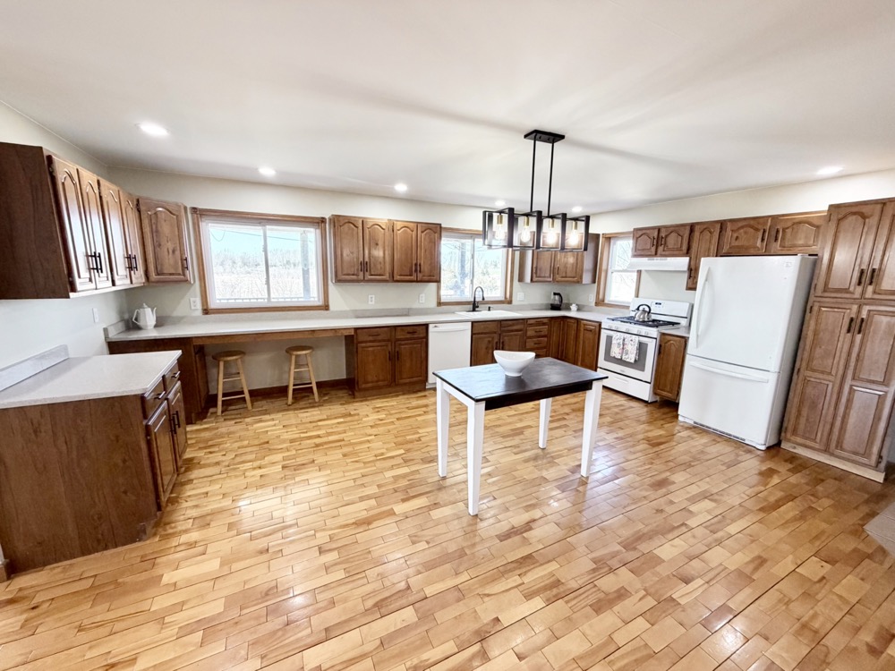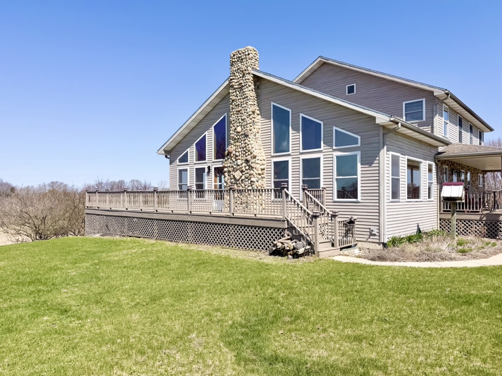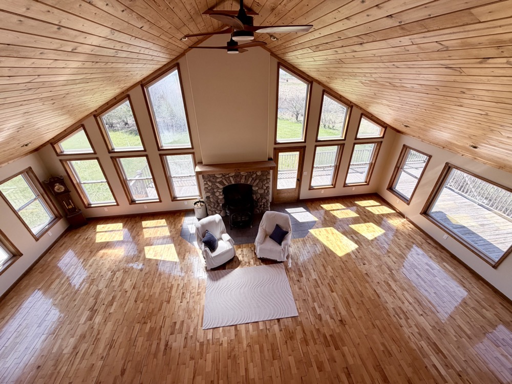 Positioned within this setting is a well-built 3,151+/- square foot home constructed in 2005. Designed with an open-concept layout, the home features cathedral and vaulted ceilings, maple flooring, and large windows that provide natural light and stunning views across the property. The kitchen includes Corian countertops, a pantry, and an eating area, making it functional for both daily use and hosting.