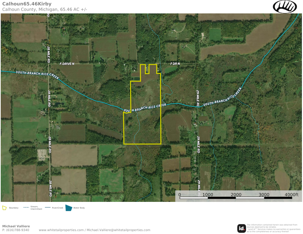 History has proven the ability of this property to produce Great S. Michigan Whitetail Hunting! The quaint road frontage and gated access give this property private and convenient access that could be used as a potential building spot. Working south from the access on the maintained trail are nearly 8 open acres planted in crops over the years and landscaped into highly effective hunting and destination plots for wildlife. Trails working the east and west property lines from north to south allow full strategic access to the remaining heavy security cover of the property, including bridge crossings that help navigate the South Branch of the Rice Creek, which dissects the property. A large percentage of this property is heavy security cover featuring wetlands, scattered timber, and brush. Highlighted with several strategic hunting plots, blinds, and travel corridors. This property is loaded with deer, turkey, waterfowl, and fishing opportunities. Located in a great neighborhood with large parcels in the vicinity and many practicing QDMA. The pictures speak for themselves - Check out harvest and trail cam pictures for this listing. I would love to show you around this great tract!