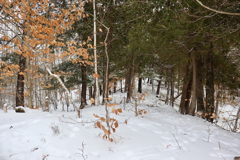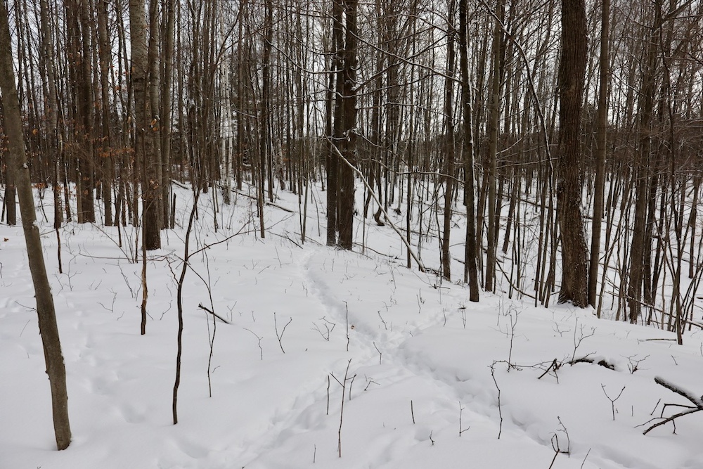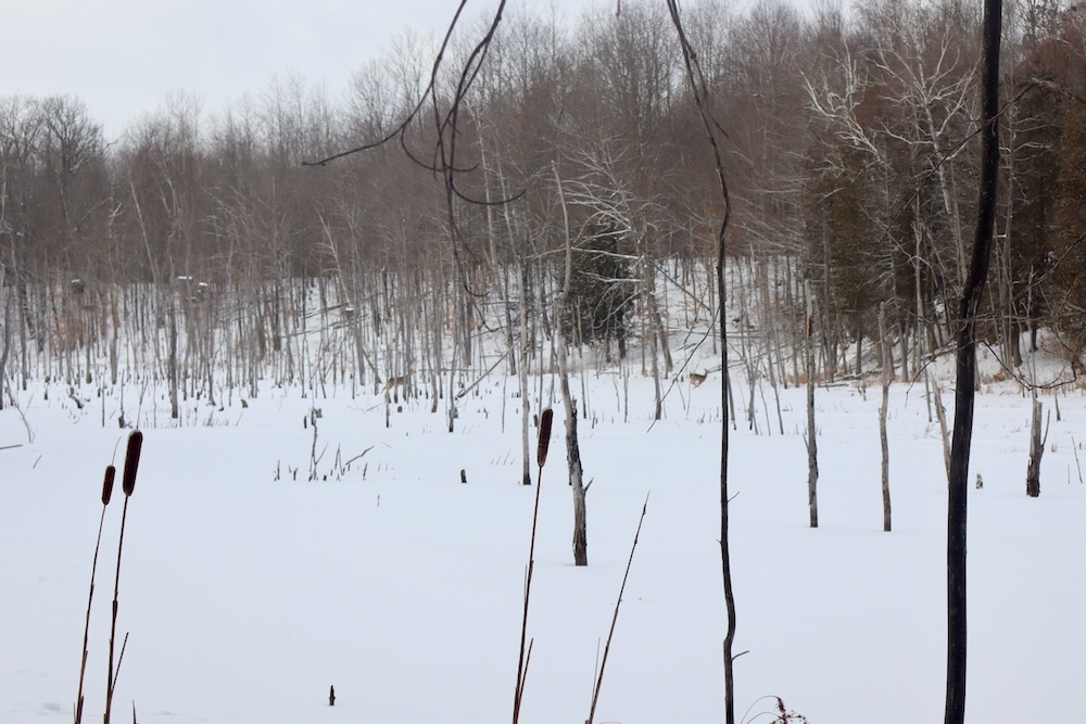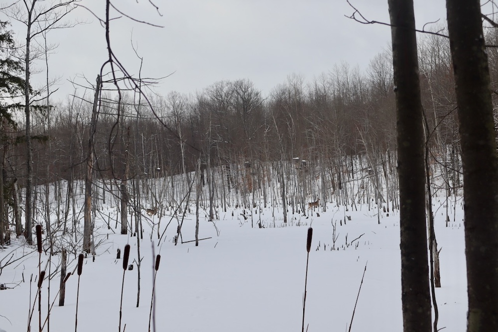 - Rolling hills with ridges, saddles, established deer trails and rubs