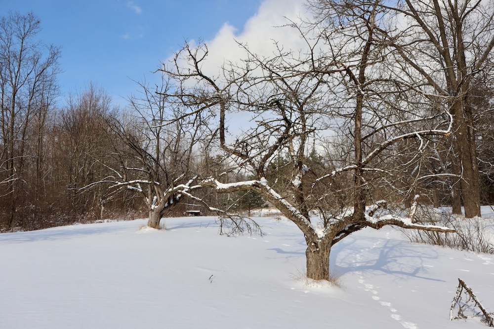 - 8± acres of open field with food plot or crop potential and apple trees