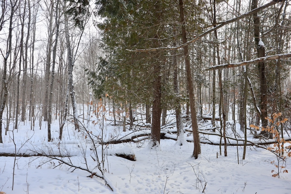 Approximately 585± yards of Cranberry Creek runs east to west along the southern portion of the property, providing a natural edge, consistent water source and an added wildlife travel corridor that strengthens the overall huntability of the land. Moving out of the timber and toward the more open portions of the property, there is approximately 8± acres of open field offering an excellent opportunity for food plot development or row crop use, complemented by existing apple trees that contribute additional natural food sources. In addition, several other locations across the property could be converted into smaller food plots to further enhance the layout. An older trail system is already established throughout the property and would only require light trimming to restore full access for equipment and hunting use.