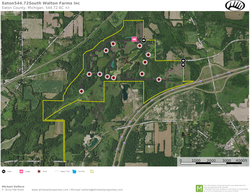 Full of heavy security cover, native grasses, forbs, mixed timber (including oak, pine, maple, and walnut), Battle Creek River frontage, wetland with water control structures for ducks and geese, strategically placed hunting blinds, and miles of manicured road system create an incredible tract! This property has gated access with a circle drive at the renovated main lodge, guest quarters, also known as the Bear Den, outbuildings, and a sporting clay range. Contiguous tracts of this size are rare, and they have some of the best habitat and land features for growing and hunting some world-class deer in southern Michigan. If you are looking for a one-of-a-kind property for deer, turkeys, and waterfowl, let us know. We would love to spend a day showing you around South Walton Farms!!