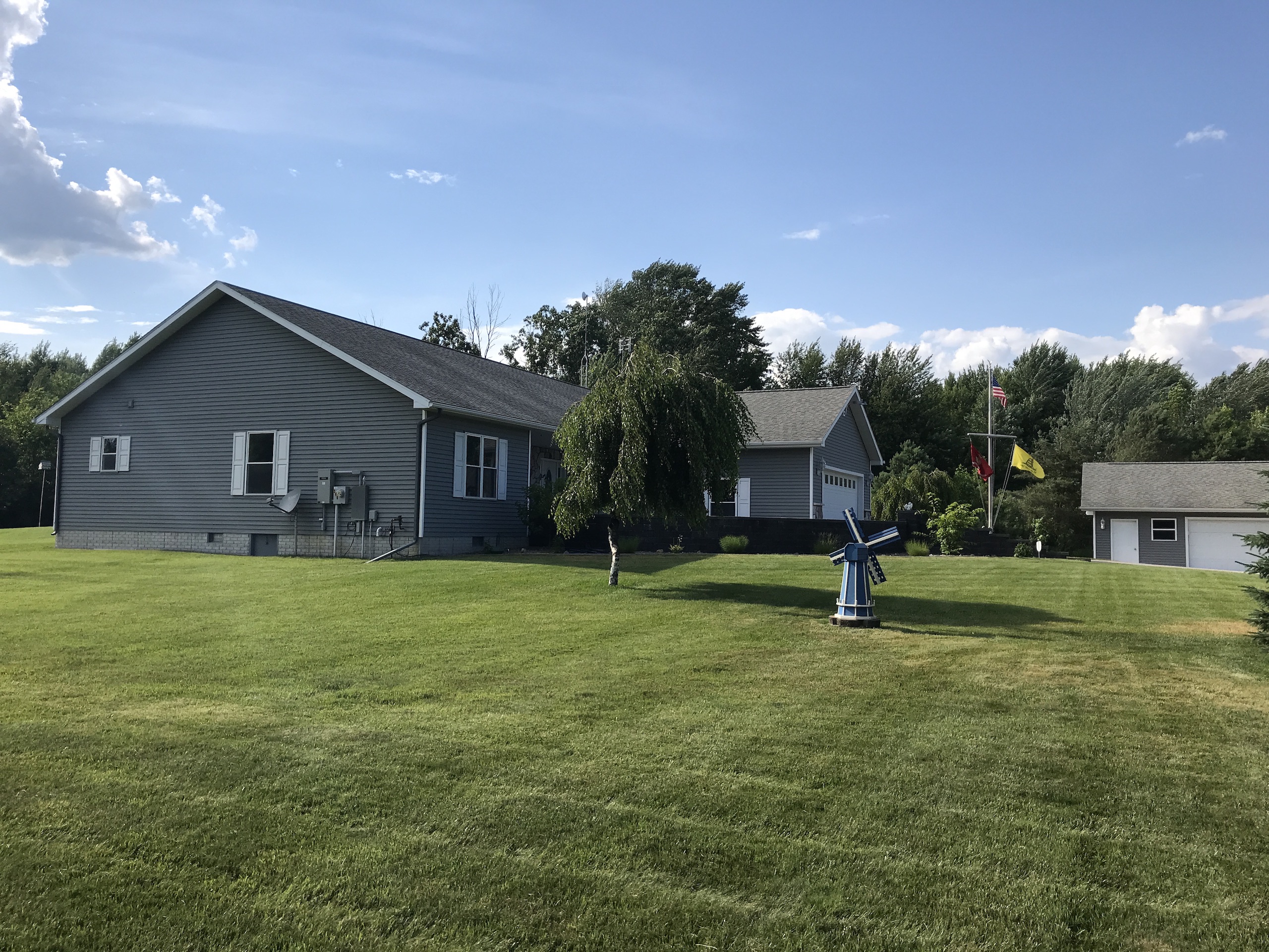 Stunning and meticulously maintained custom-built home on 9 acres. This property has it all from the Amish-built custom cabinetry to the pool house and detached garage/workshop to the beautiful 9 acres with trails, food plot areas and a very nice pond toward the back of the property. The home is approximately 2,700 square feet with a 24’x26’ 2 car attached garage. The detached garage/workshop is 24x32. The home and detached garage were custom-built in 2005. The 24x32 pool house was built in 2012 and the 18x36 in-ground swimming pool was added in 2014. No stone was left unturned from the landscaping to the entire 10-zone sprinkler system, to the Generac whole house generator, new water softener system, new state-of-the-art pool pump system, and all new flooring in the house to the paved driveway that winds back to your private retreat. As an added bonus natural gas is also now available and can be hooked into if someone wishes to upgrade from propane.