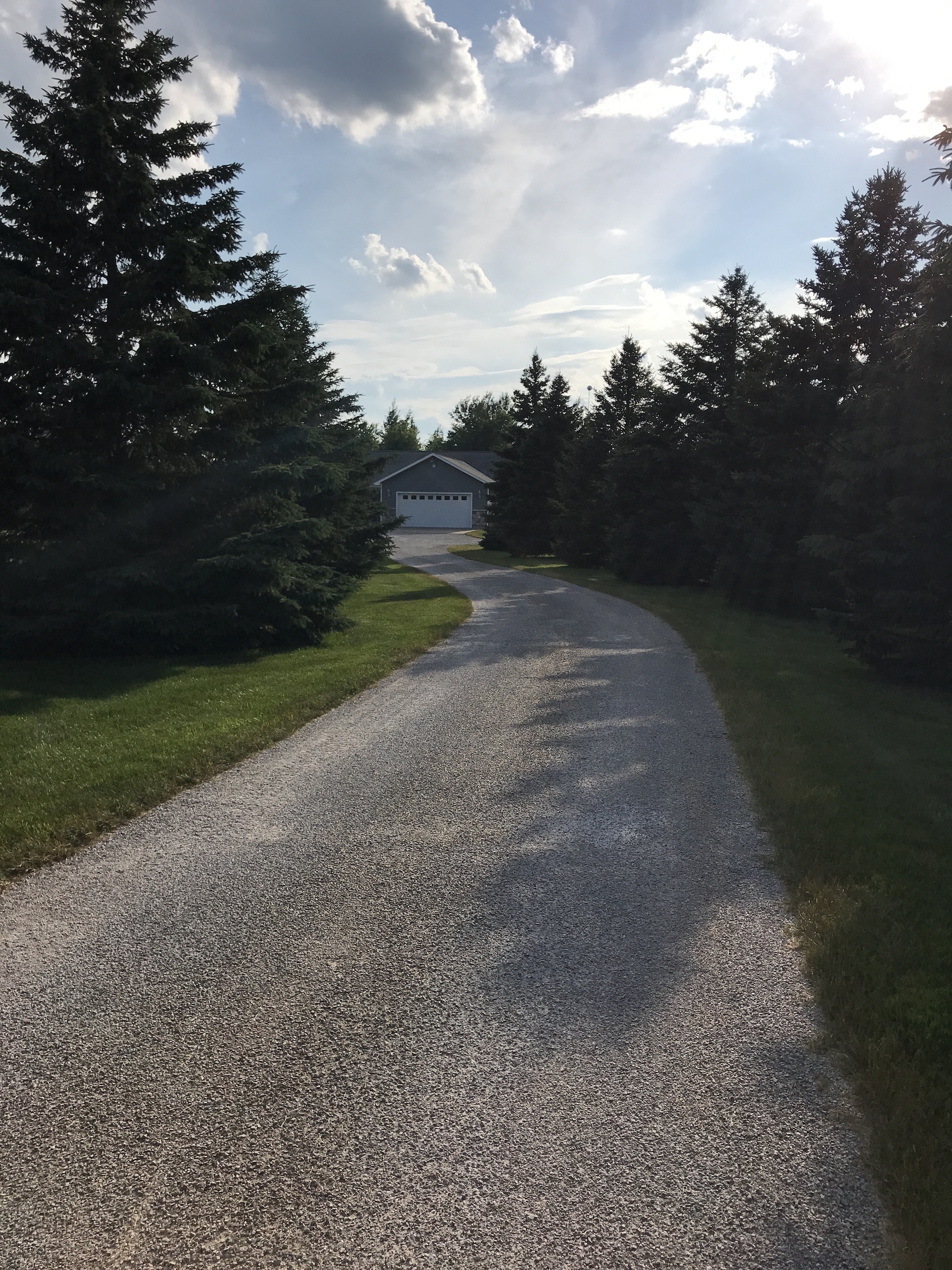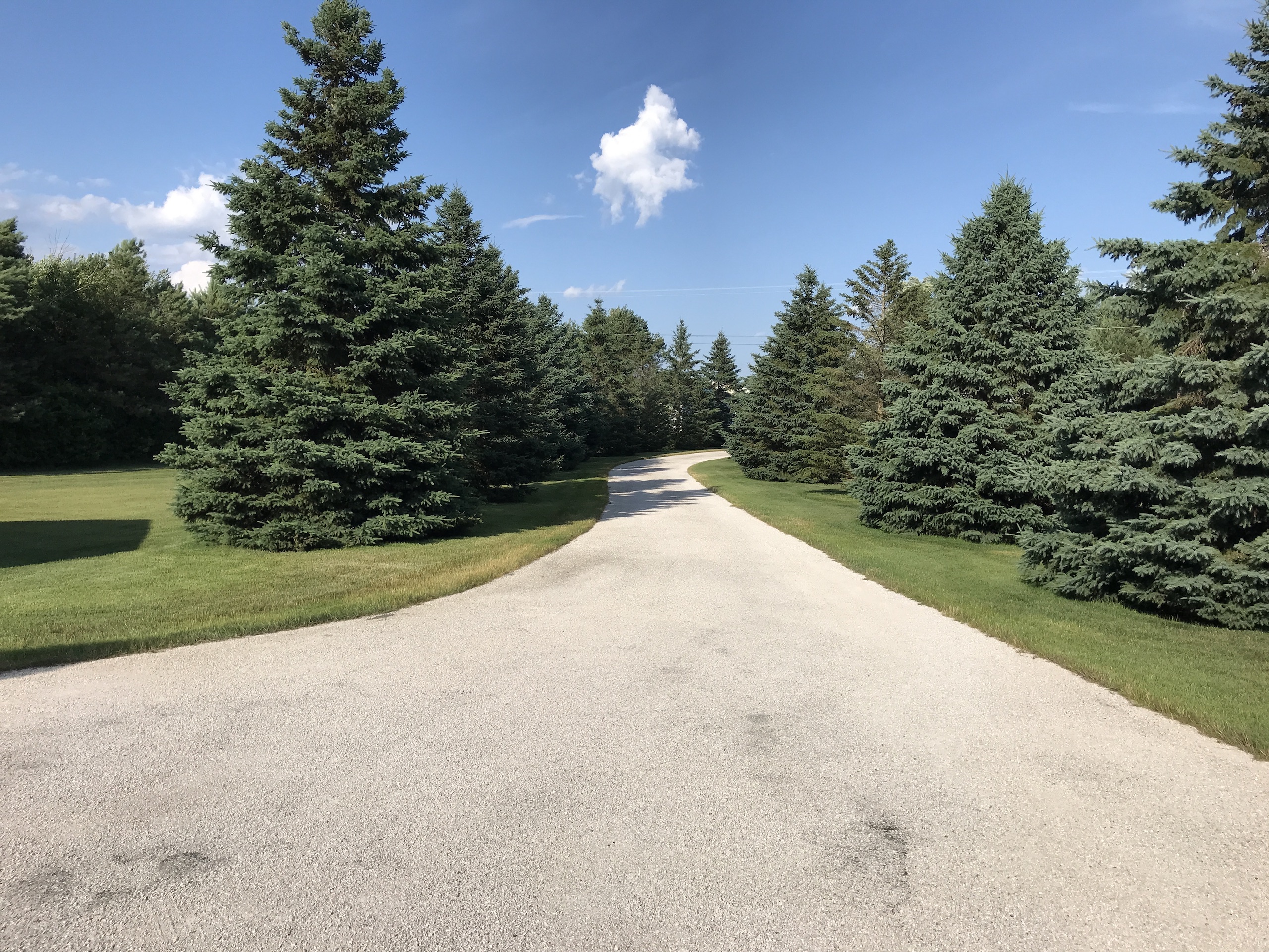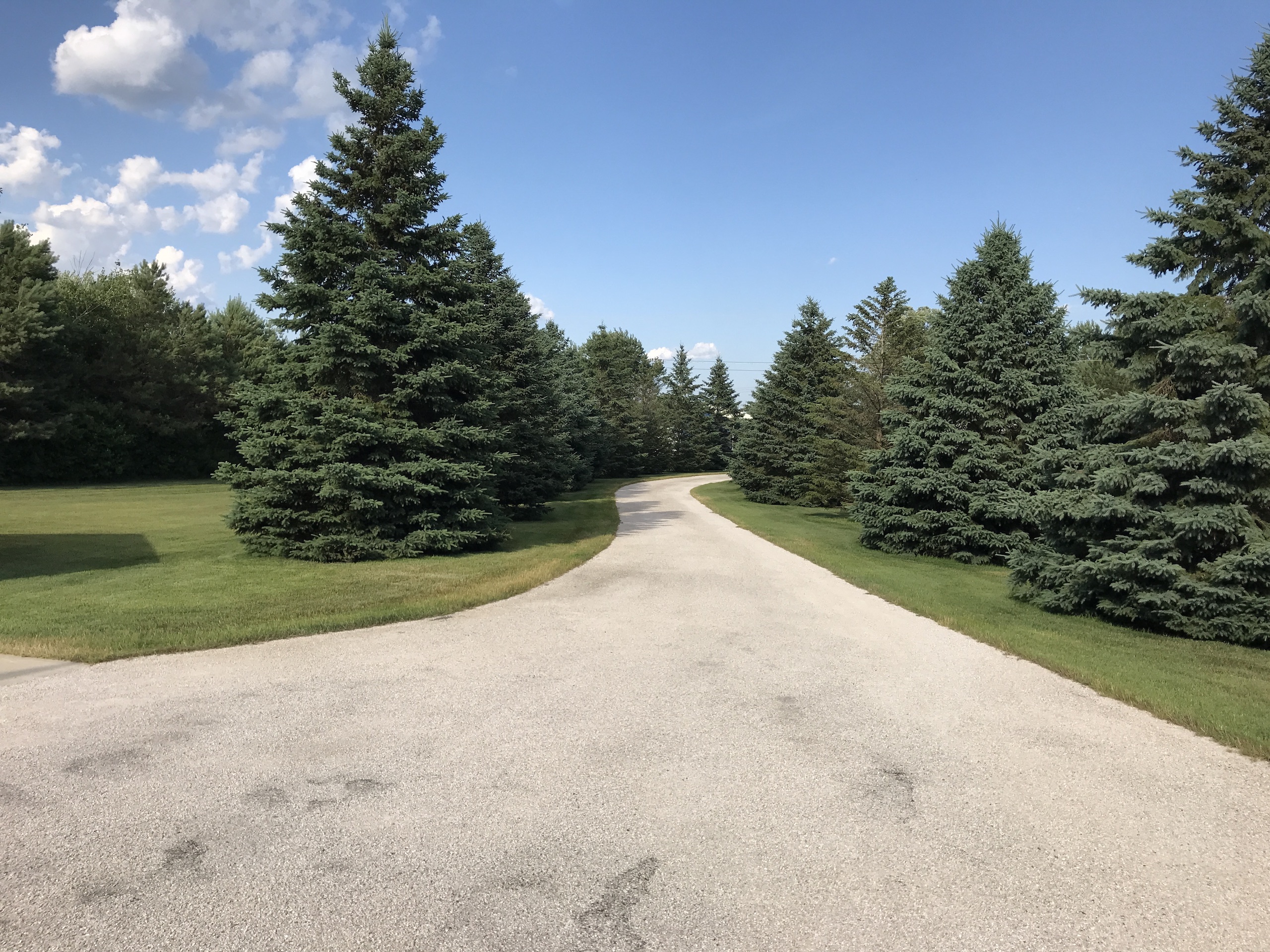 - Winding paved driveway