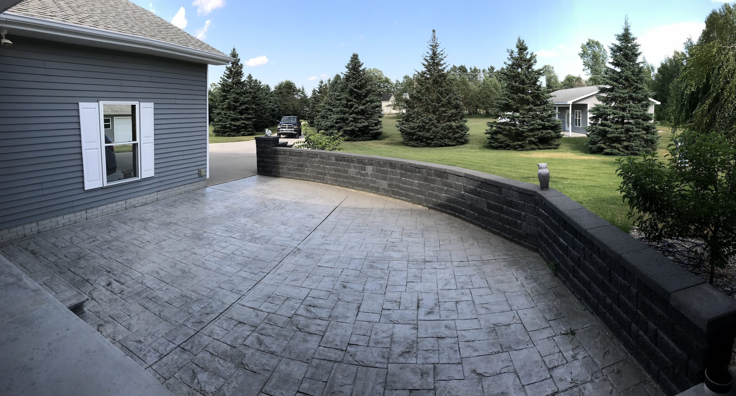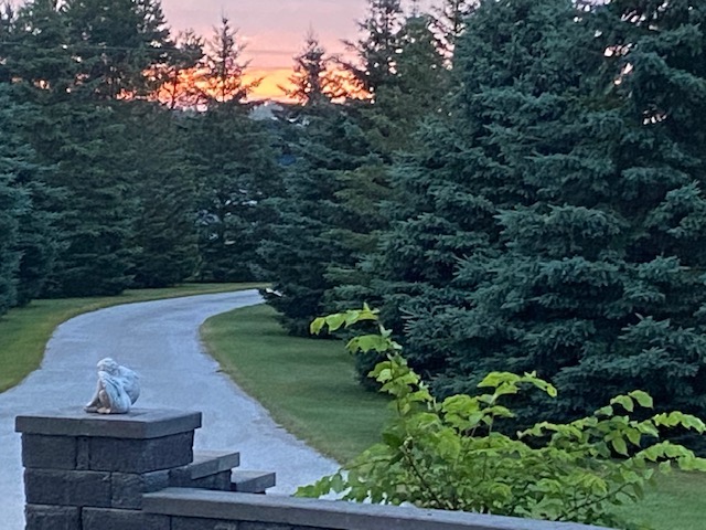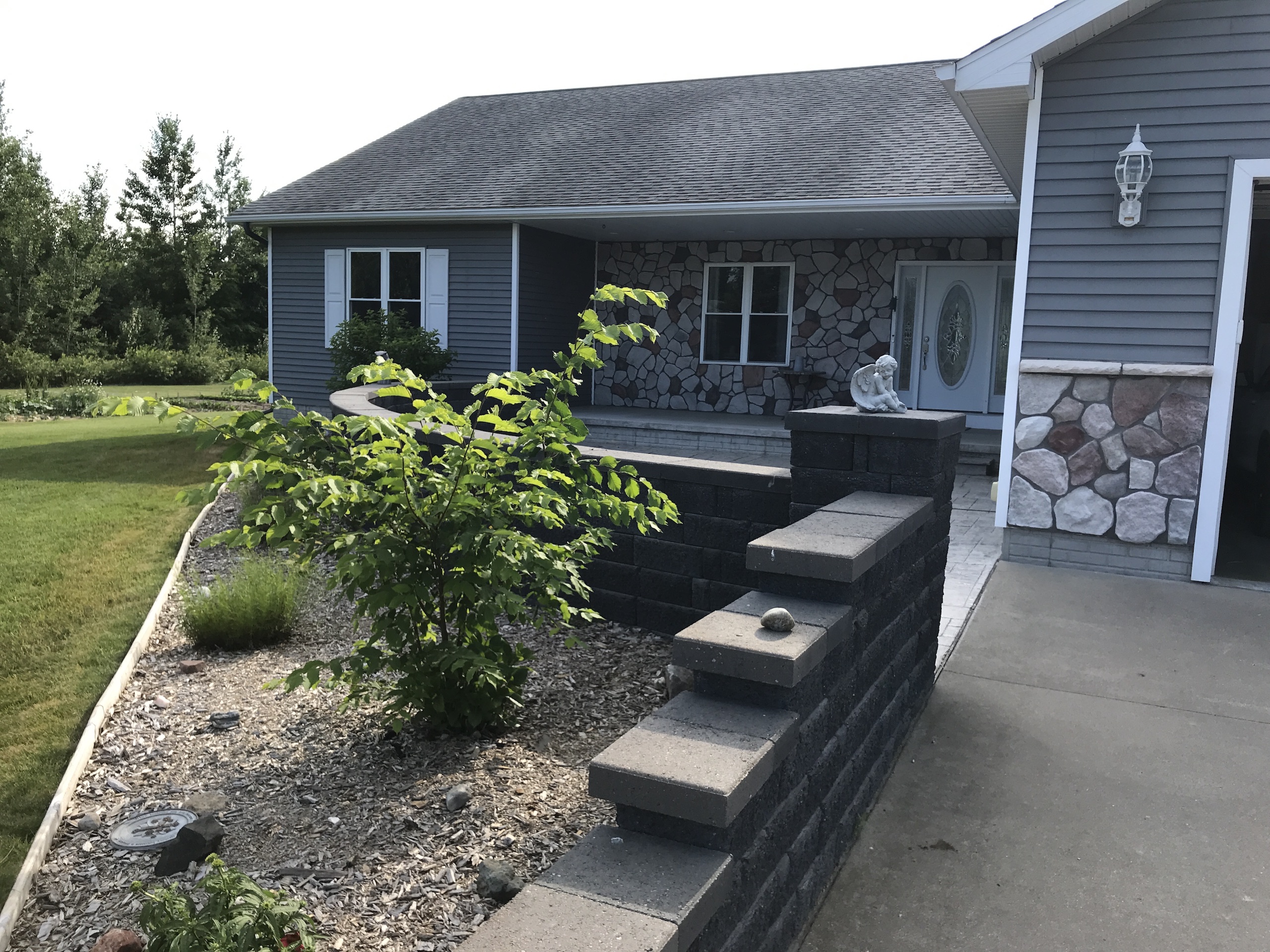 - Winding paved driveway