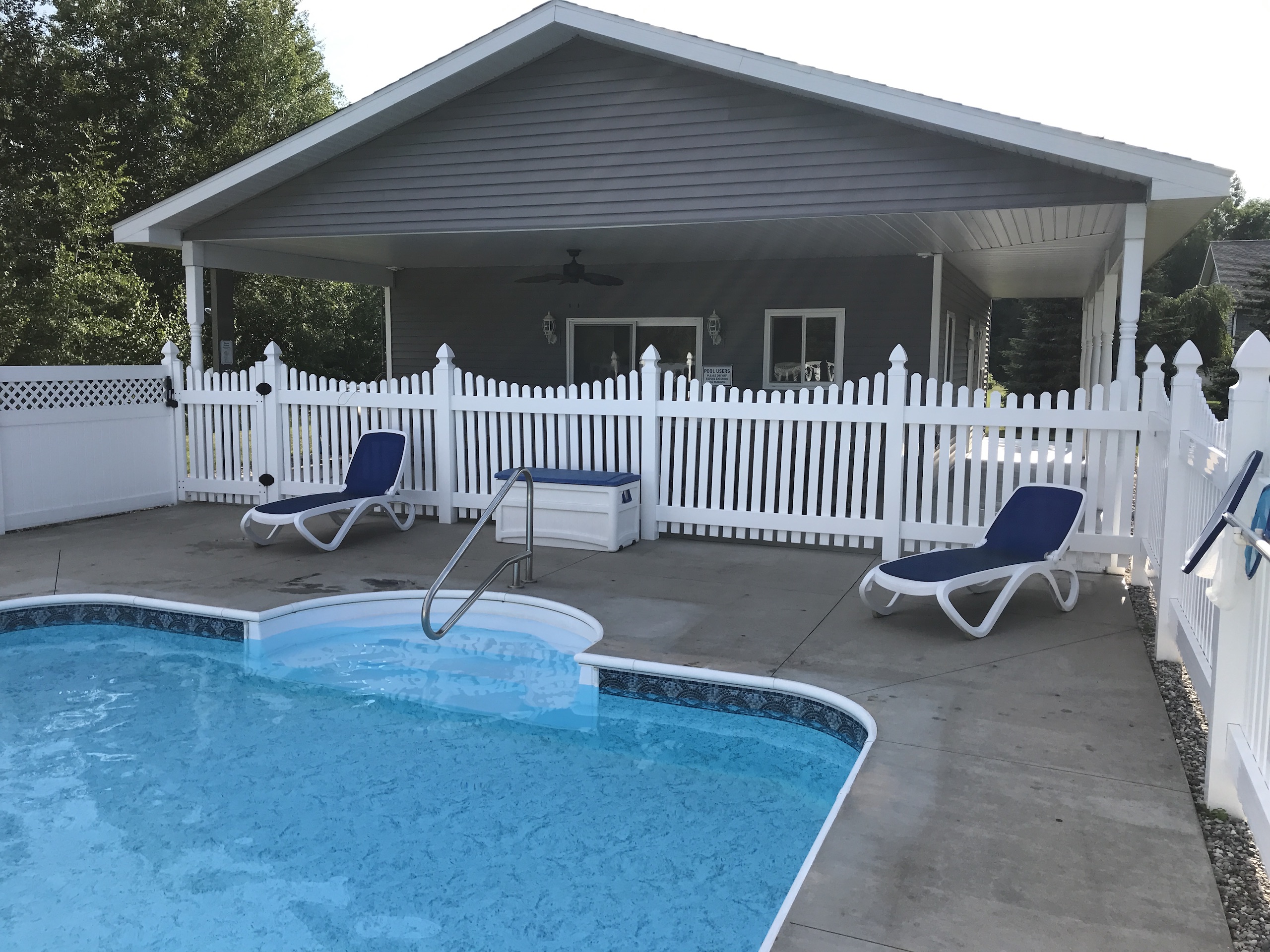 - In-ground pool and pool house