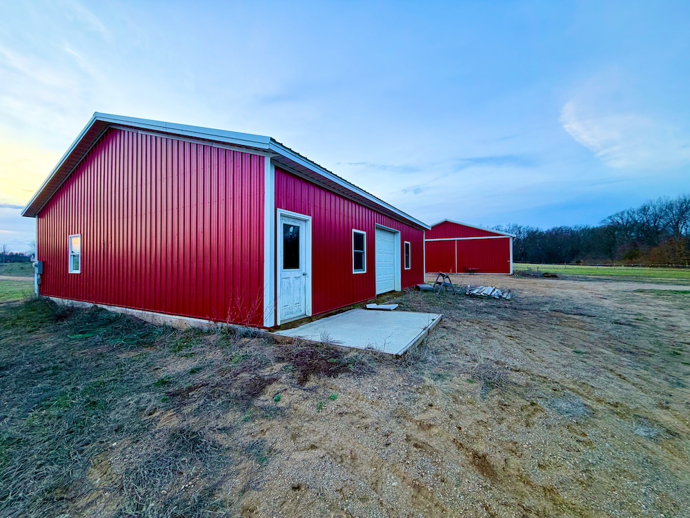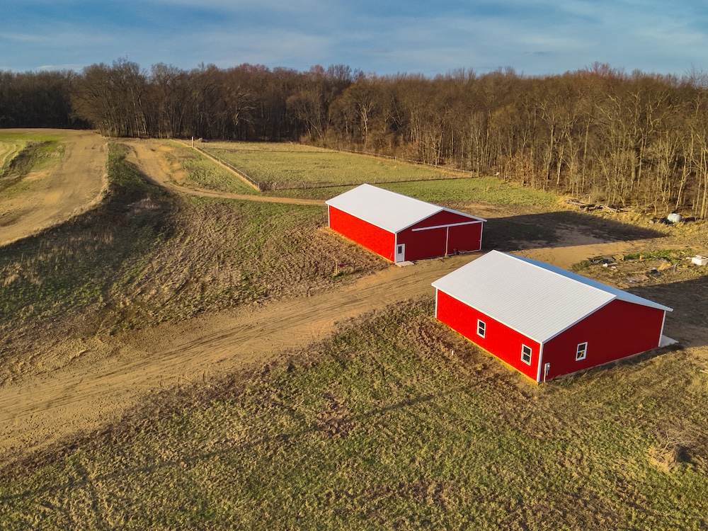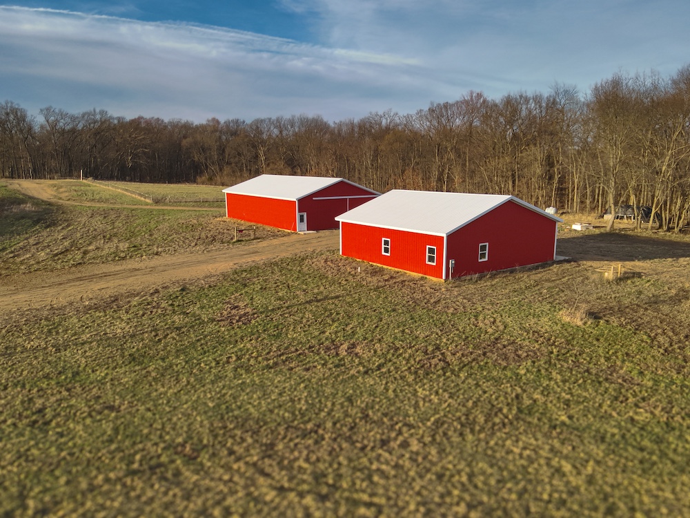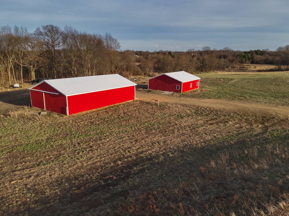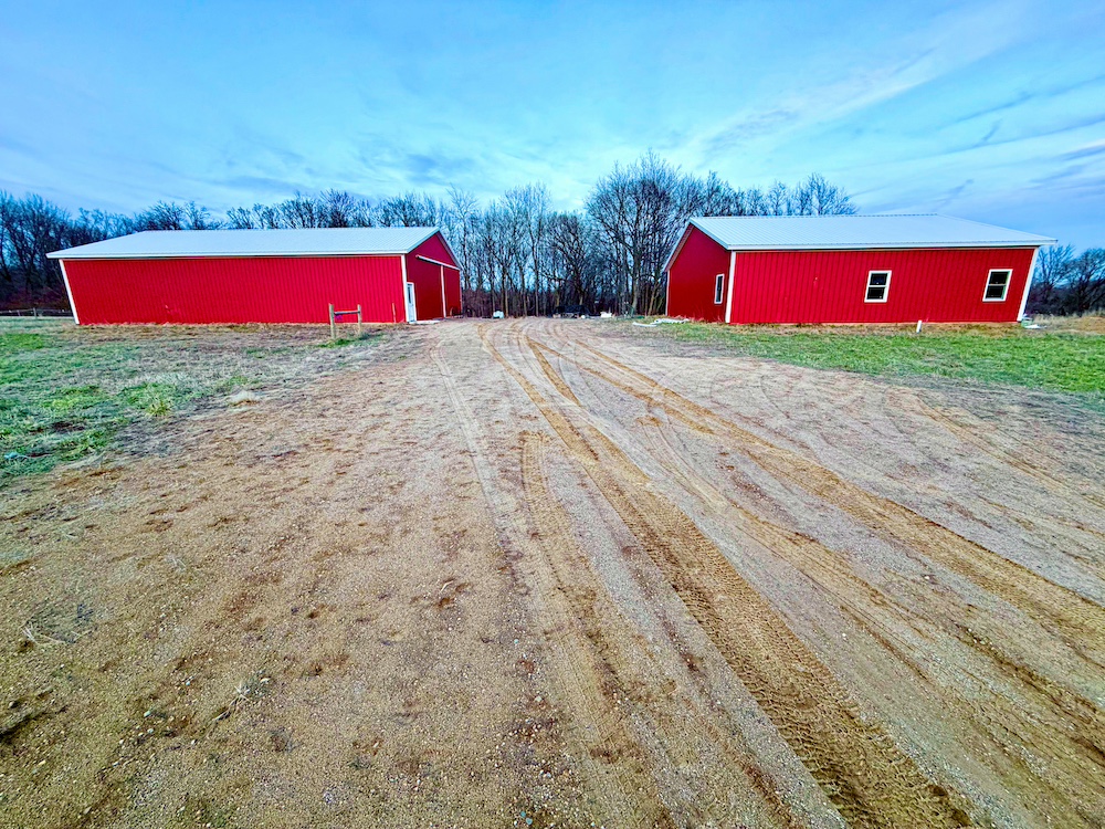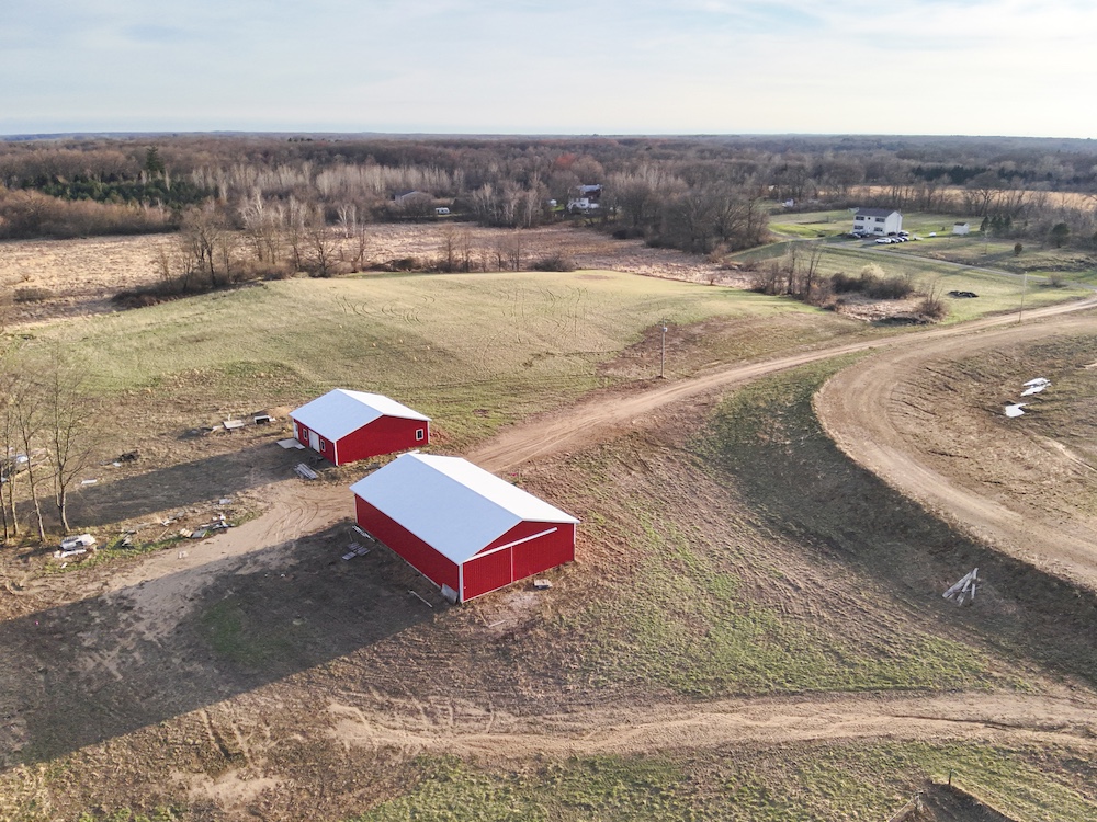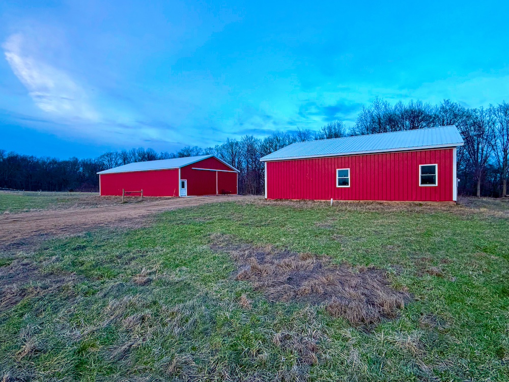 - Two pole barns (40x40 with electric, 40x60 storage barn) and well