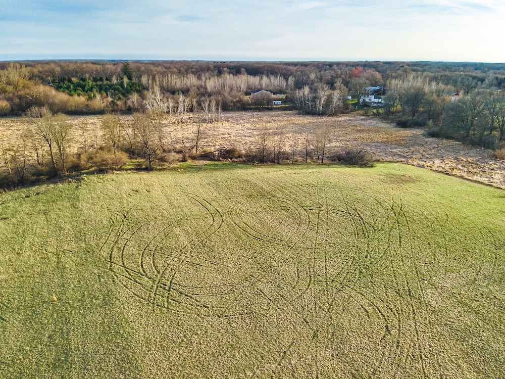 The land includes rolling hayfields, mature hardwood timber in the northeast corner, and low lying wildlife habitat. The southern portion of the property contains a defined wetland and natural deer bedding area, creating ideal conditions for holding wildlife. This diversity of habitat significantly enhances the property's appeal for hunting.