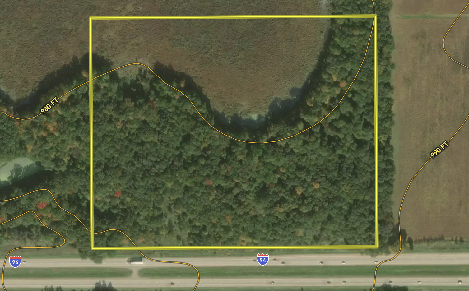 Located just off of I-94 between Battle Creek and Jackson is this reasonably sized hunting tract with mature timber and cover surrounded by agricultural fields and tracts of cover and timber. This piece is ideally suited for hunting, situated between cropped farmed fields on one side and heavy timber and cover on the other. The southern border is I-94 and deer tend to run parallel with this feature. Access from the east presents a great access opportunity with north and northwest winds. There is an excellent-sized wetland area in the northern portion of the property that provides some habitat for waterfowl and cover for deer to bed and hide.