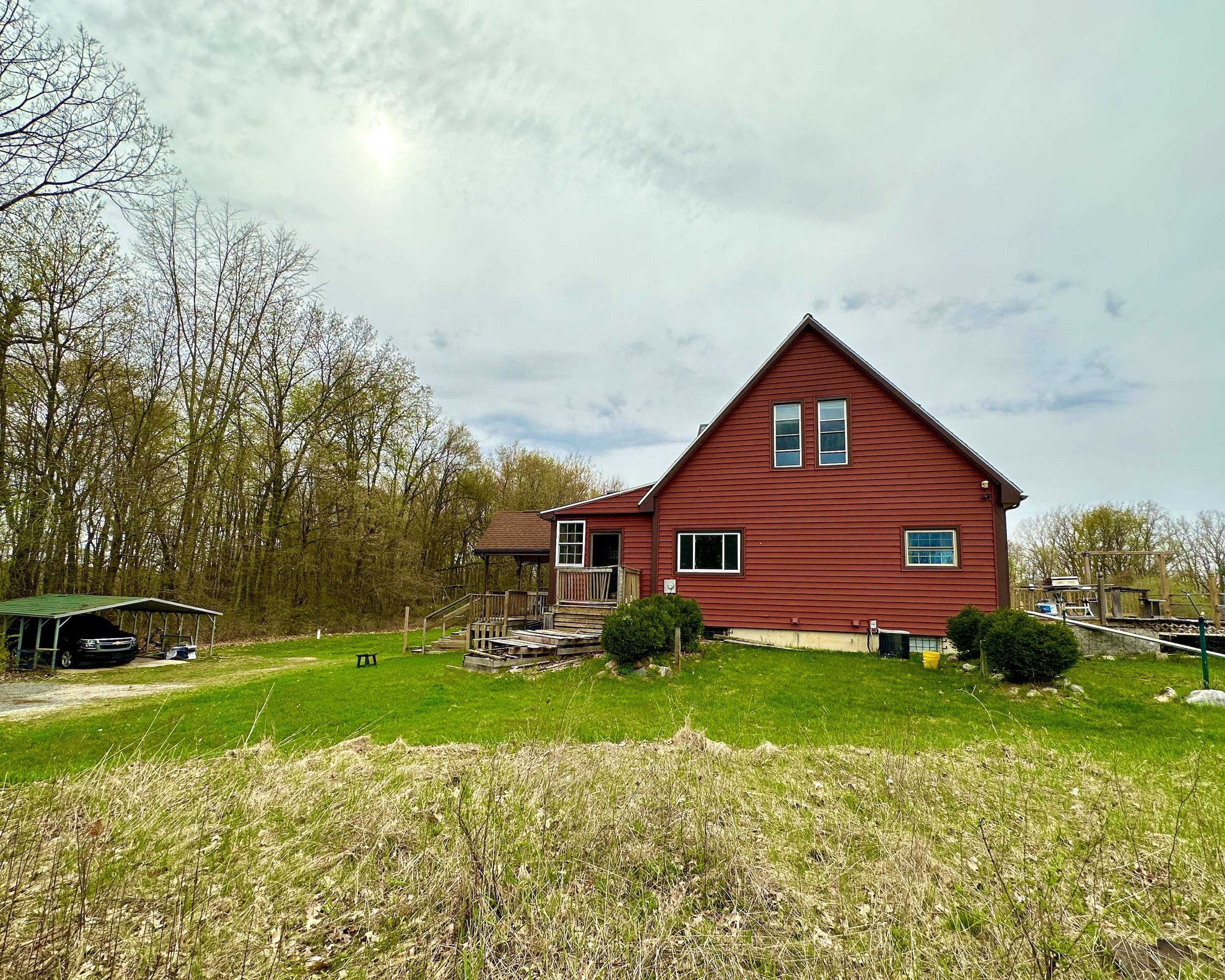 This cozy 1.5 story home is located in the heart of Jackson County just a couple miles north of I-94. The 2 bedroom, 2 bath home includes a walkout basement and a back deck that overlooks the spacious yard. Some other nice features are a carport and a camper port that could fit many uses. It sits on just over 5 acres and borders over 700 acres of non-hunting state-owned land. This is a huge sanctuary for deer and turkey and has great potential for a moderate-sized tract. Many deer trails intersect this parcel. The property is a nice balance of open space and mature timber. The timber is very park-like and open with oaks, maples, wild cherry and other species of hardwood. There are many options for wildlife habitat improvement or turning it into a peaceful sanctuary for enjoyment. Come hunt, ride ATVs, or just enjoy the outdoors. Call us for a showing today!