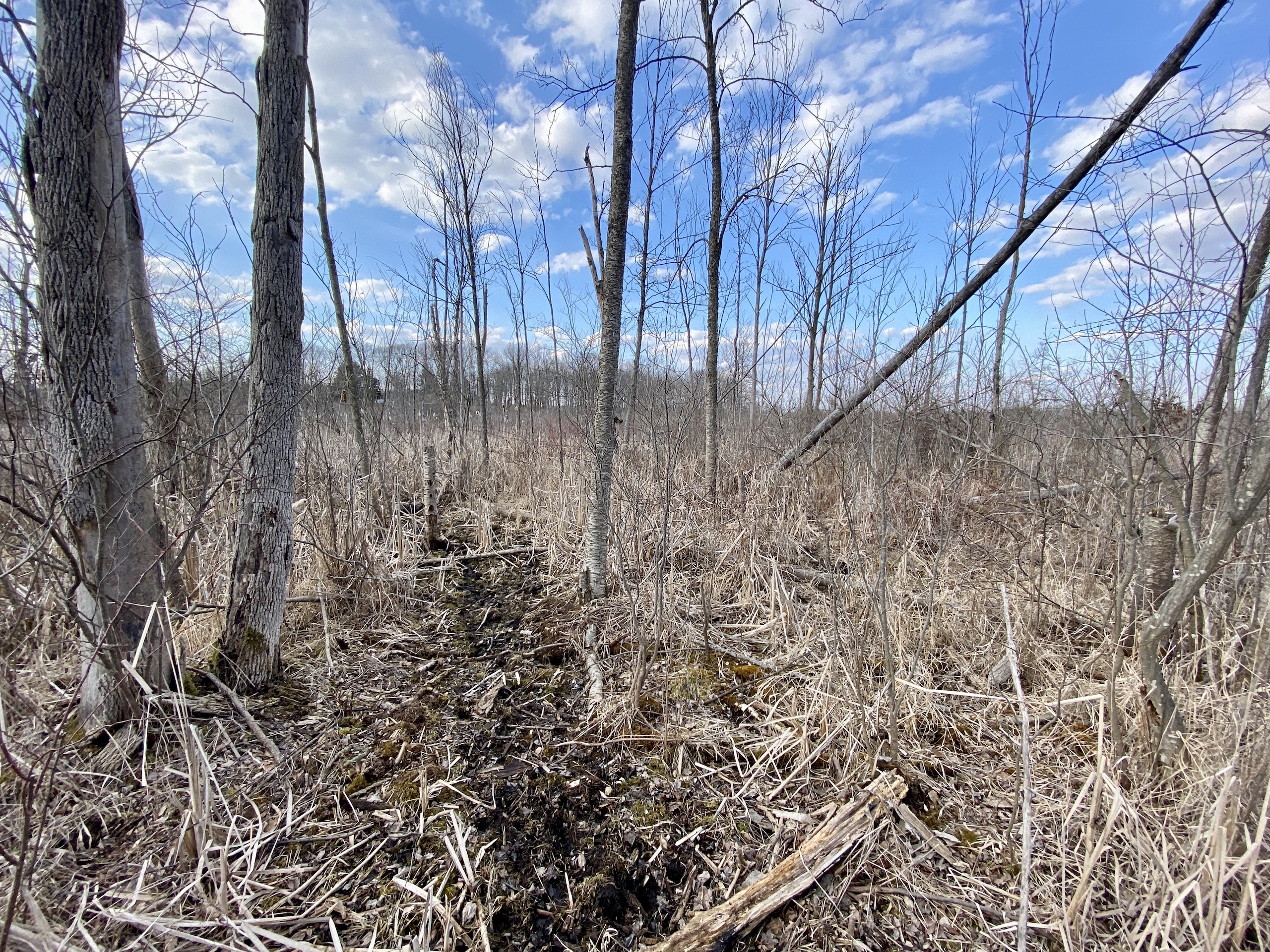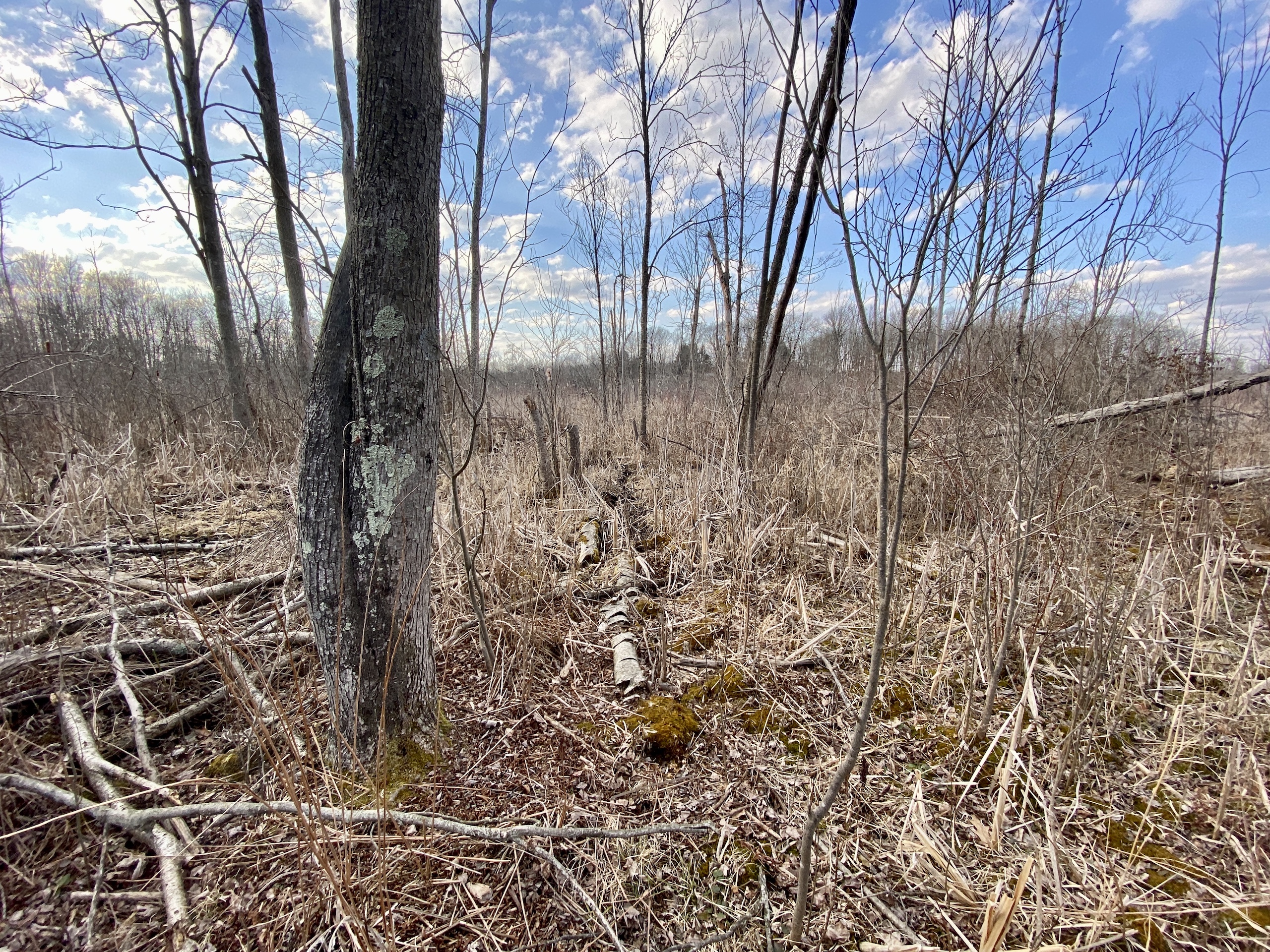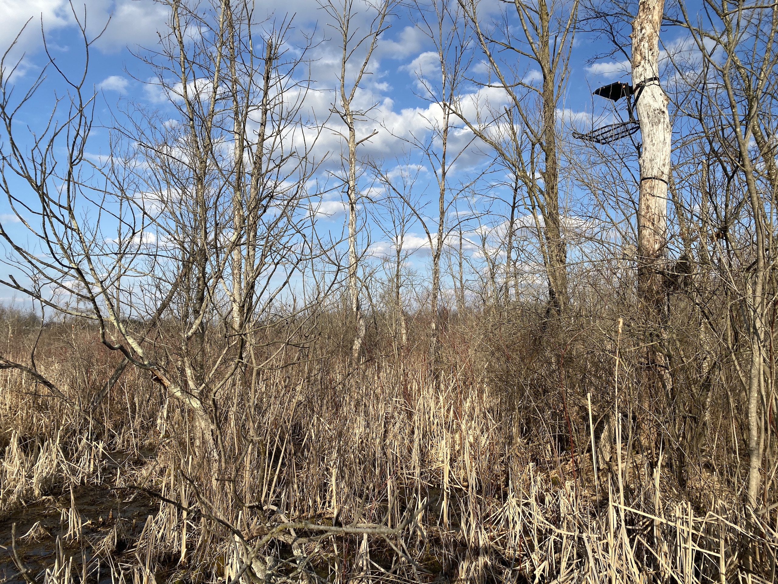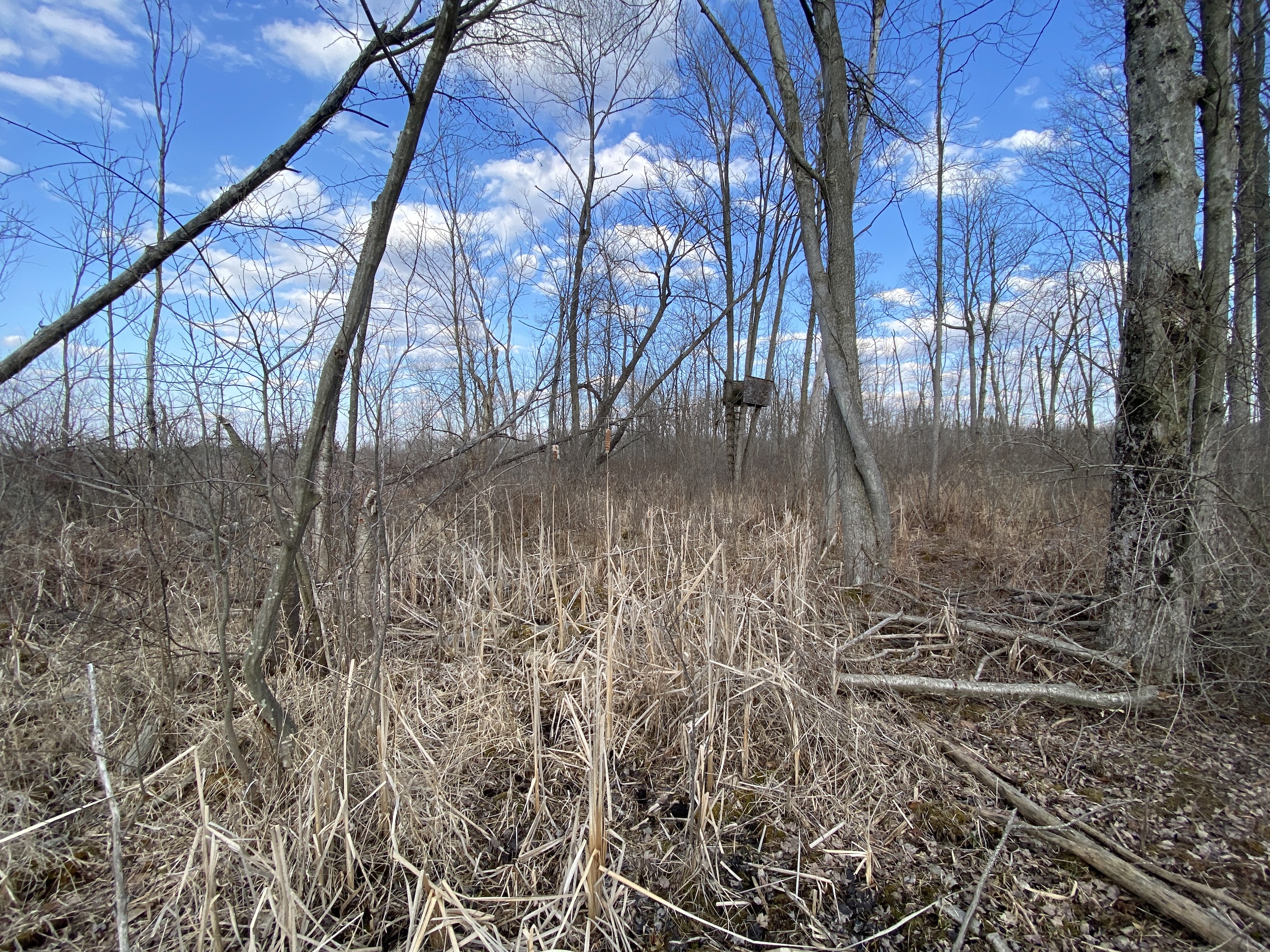 This is primarily a thick hunting parcel surrounded by big farm country, it is mostly thick cattails, poplars, and brush with flower field creek cutting through its north side. This is the kind of sanctuary that big bucks feel comfortable in. The road frontage is primarily higher hardwoods and a Vacant Land Assessment for Suitability of Onsite Sewage and Water Well Supply System was completed in 2020. There is also a convenient driveway that runs parallel with the road from the north to the south end making it easy to pull in vehicles with trailers and pull out without having to back up. As you go east from the road it drops down into a low piece of land that runs east and has some drier islands that deer gravitate to, in fact, the center island has a blind that is nicknamed the hub because deer come from all directions to pass through it. There is also some high ground in the eastern part of this tract that has the same effect. This is an excellent hunting parcel with good deer numbers, quality bucks, and turkeys. Just approx. 30 minutes south of Kalamazoo and approx. 40 minutes from the Indiana border near Middlebury put it in a great location.