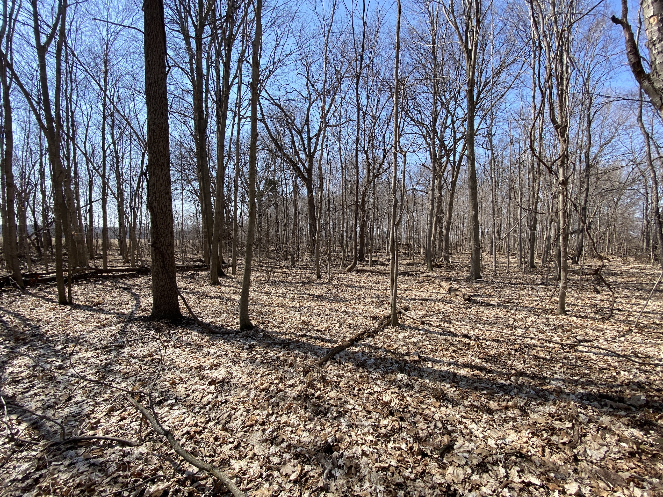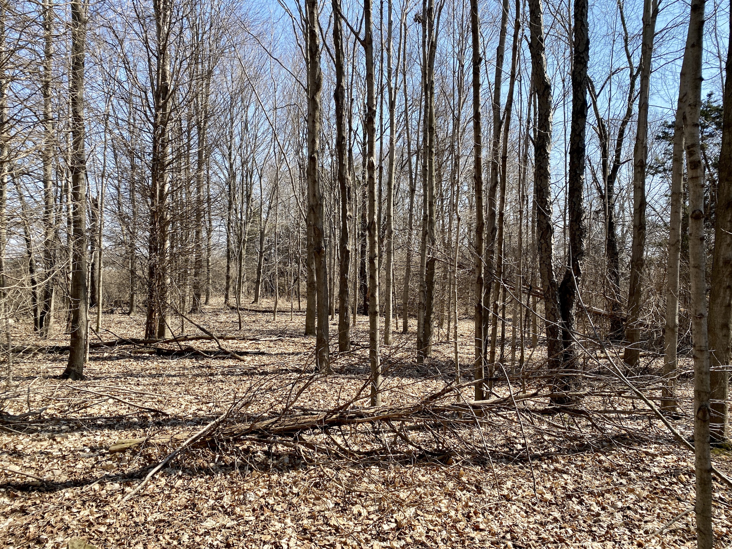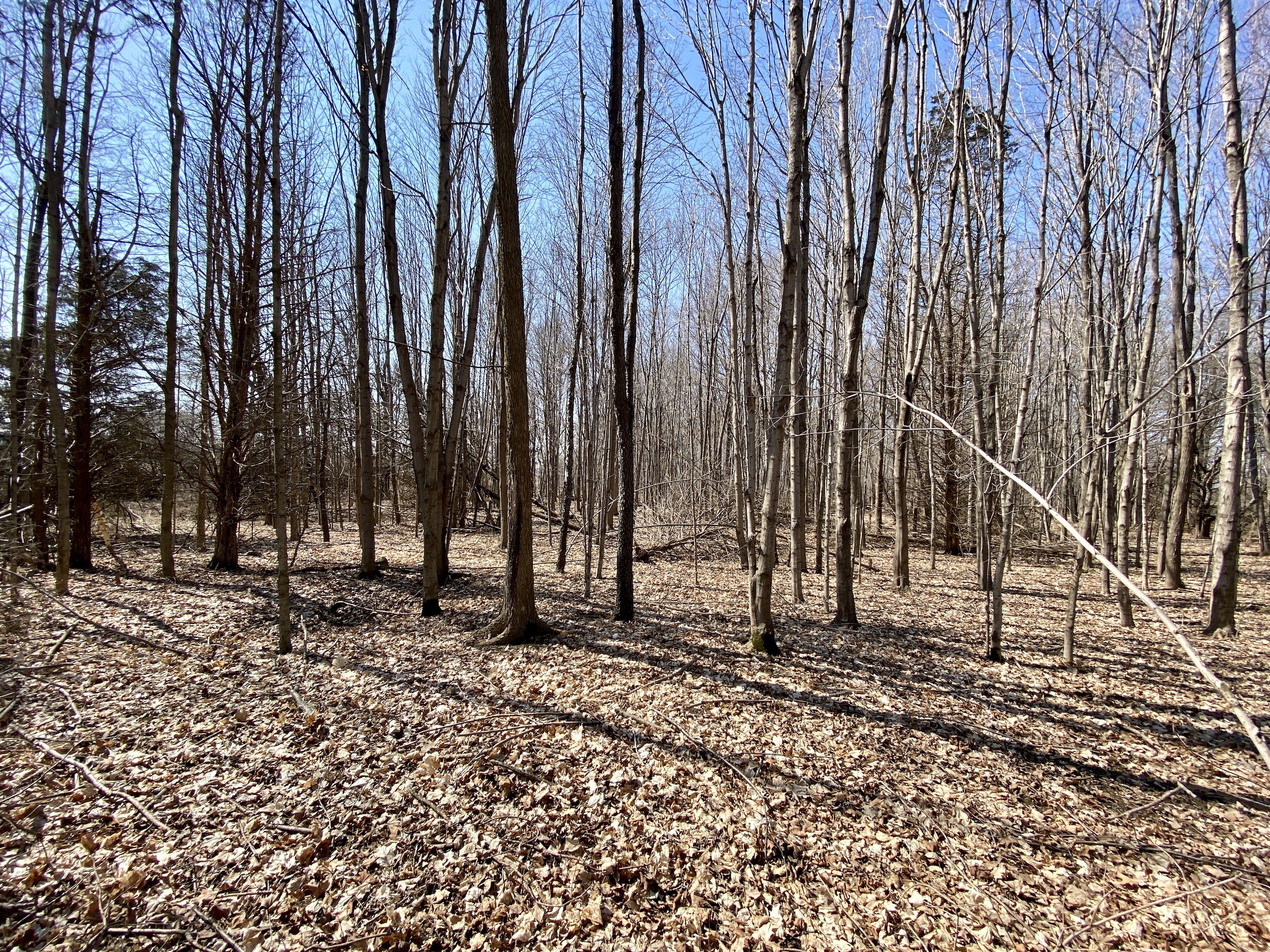 - Small hardwood timber-stand with oaks, maples, cherry, hickory and beechnut