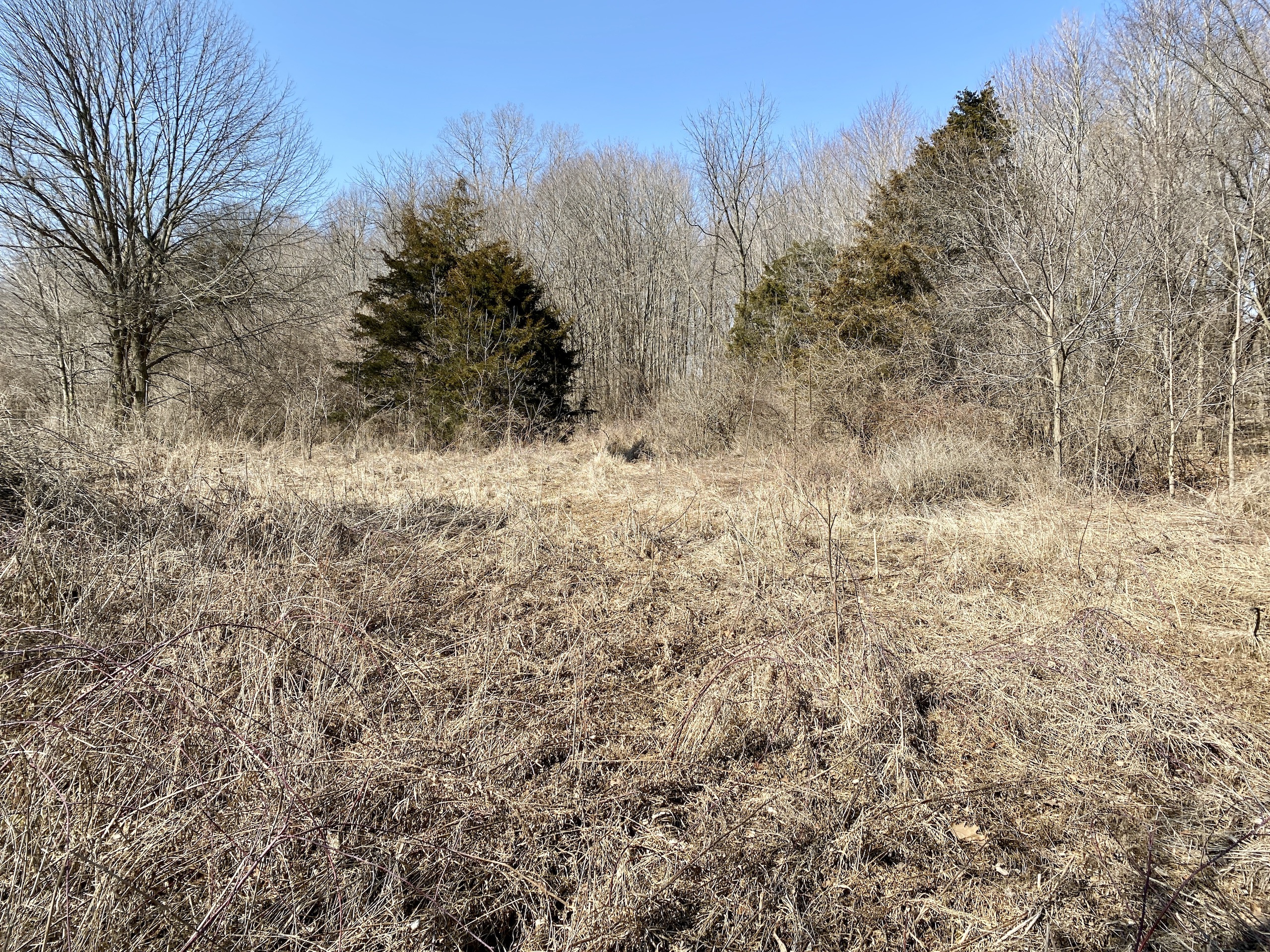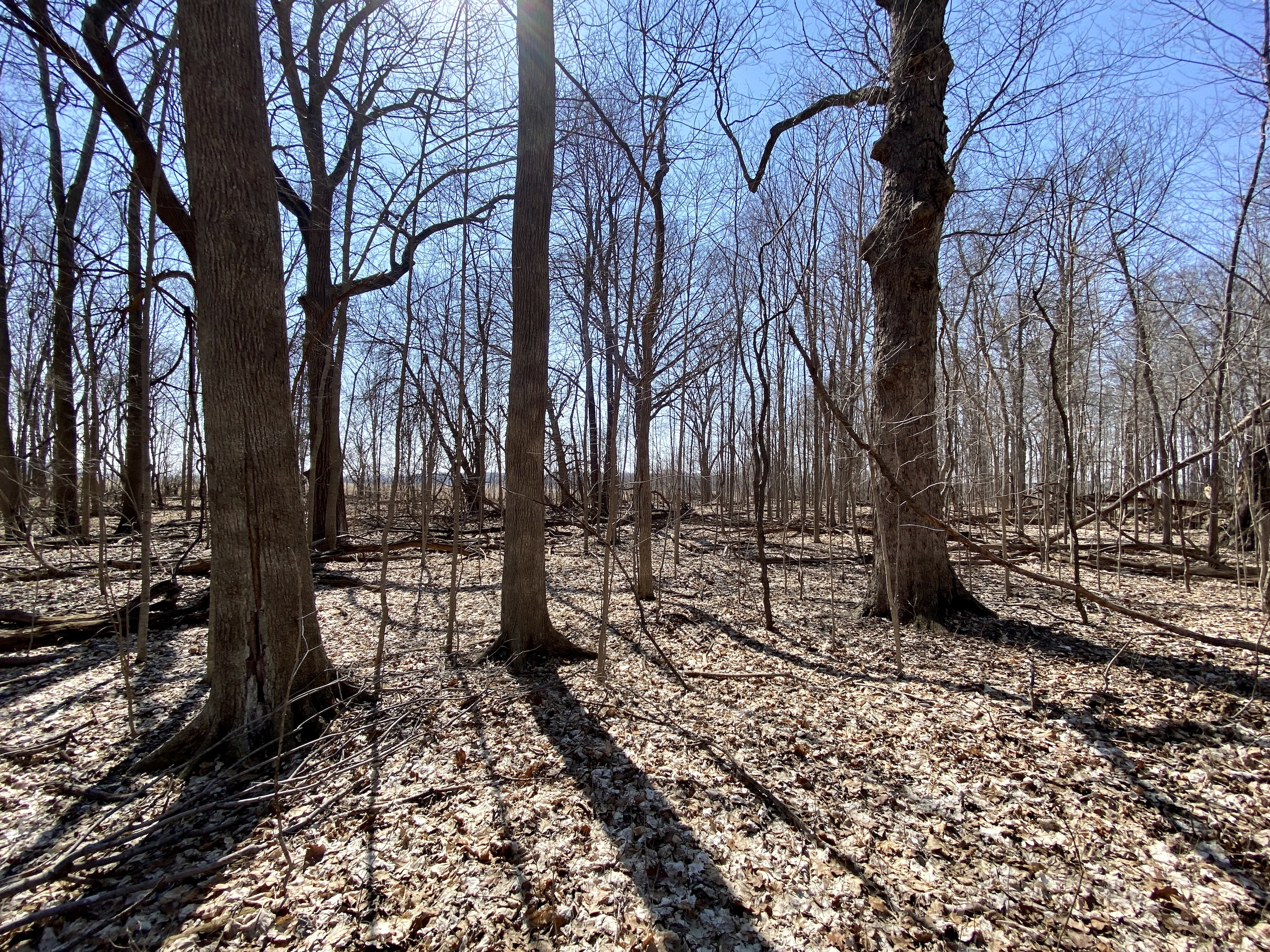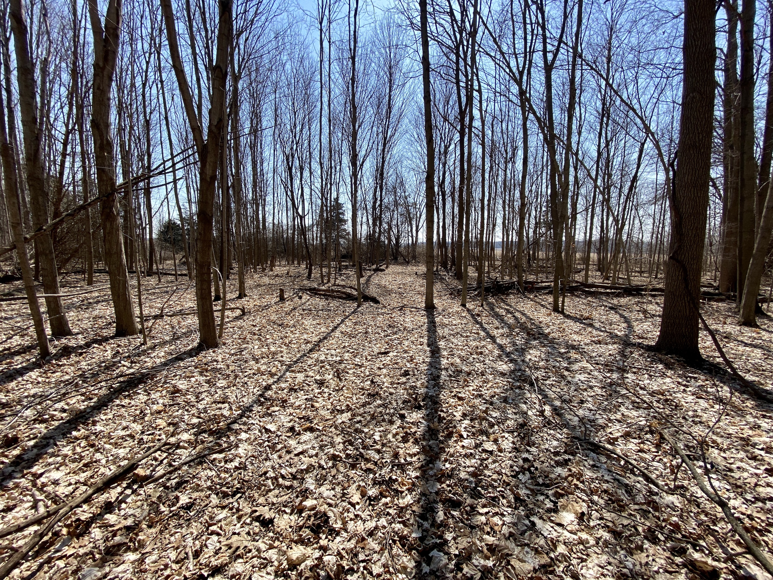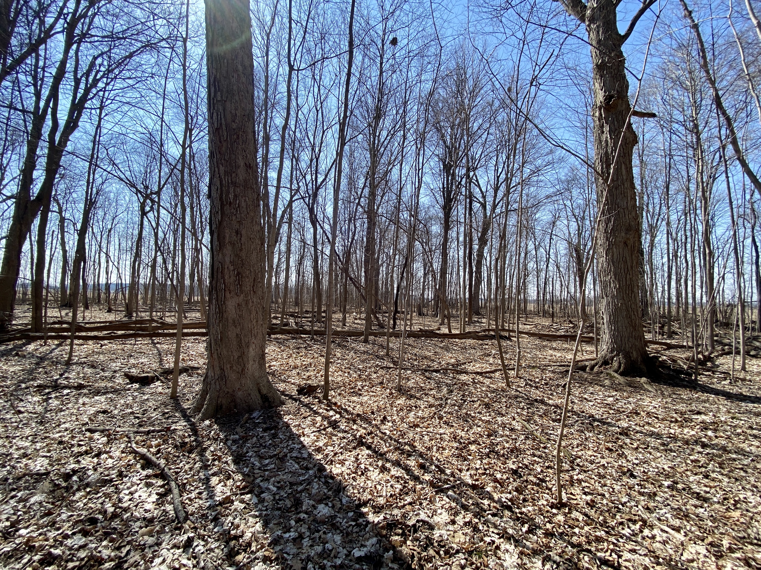 - Small hardwood timber-stand with oaks, maples, cherry, hickory and beechnut