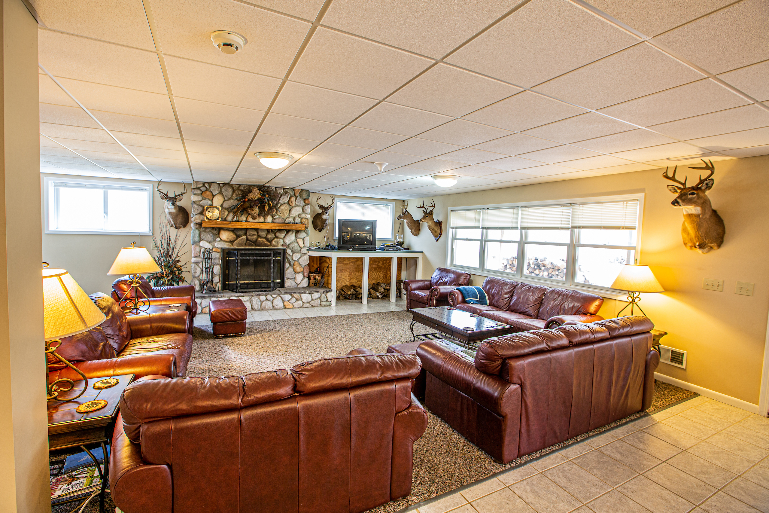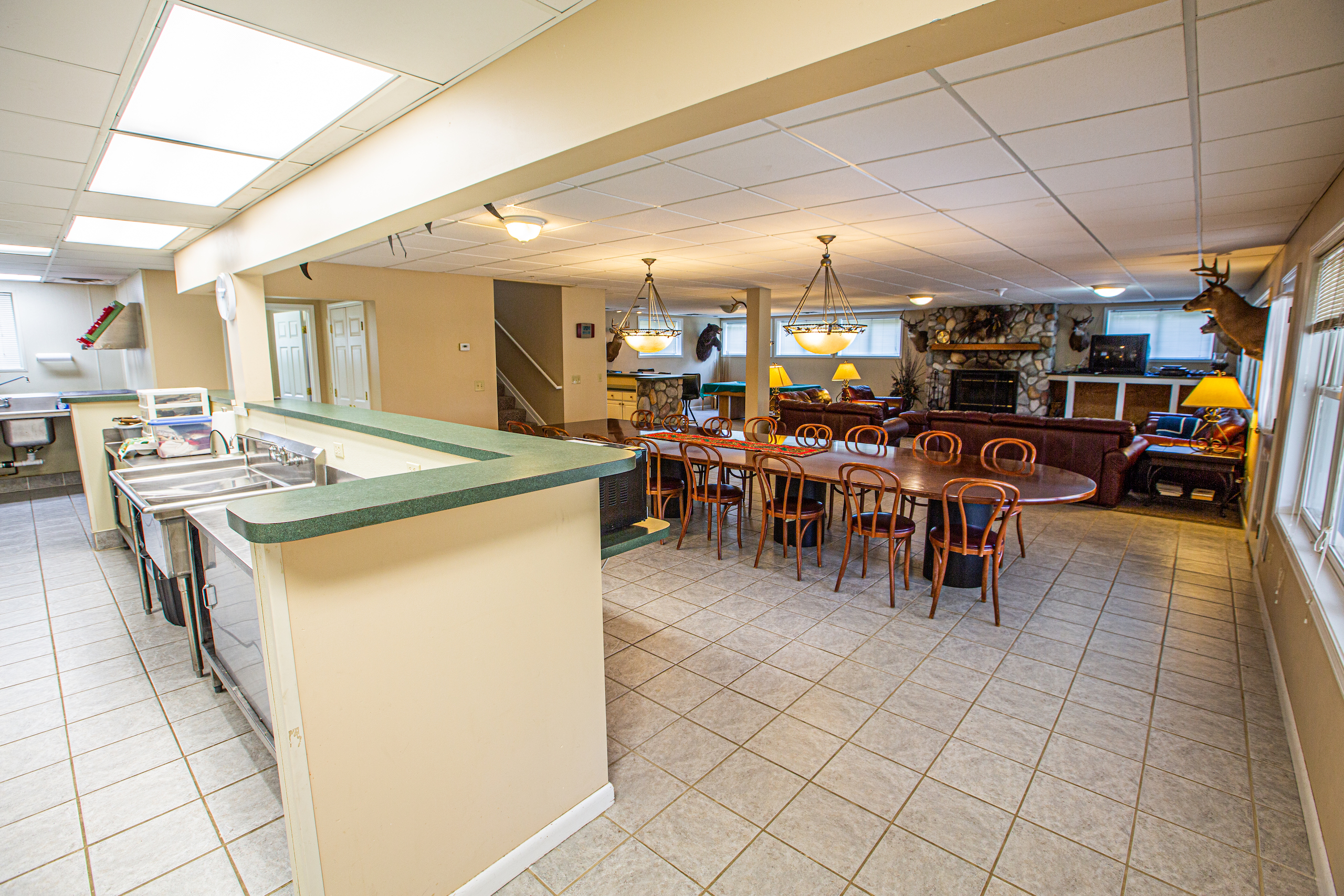 A rare find for those looking to own a large property that can accommodate large groups of family, friends, or hunting buddies. Properties like this don’t come around every day. The large, spacious lodge is suitable for family events and hunt camps alike. The open floor plans, fireplace, satellite TV, large harvest table, pool table, bar, and dining area make this an easy and fun place to entertain any crowd. A large, clean kitchen with commercial grade appliances allow the owners to put on great meals for family gatherings or simply an after the hunt dinner. When the day winds down and it is time for a rest, this lodge has 5 baths, 8 different bedrooms (sleeping 20 or more), with each bedroom having its own closet space and sink! In regards to the property itself, it is becoming harder and harder to find large tracts of contiguous tracts of ground, especially that hunt as well as this one. This tract is quite diverse, with hardwoods, pines, natural browse, bedding, thermal cover, etc. A very nice and maintained trail system leads you to and from every corner of the property for easy access to the many hunting blinds already established on this parcel. An added bonus is the fact that this property is located in one of the Northwest 12 APR (antler point restriction) counties which have done a great job in creating a more mature and balanced deer herd. the sellers have enjoyed great success for years in the deer woods and the new owners will only take advantage of the increased quality as the years go by. In addition to the deer herd, this tract also boasts great populations of turkey, bear, and small game. Once you’ve successfully filled your tag and hung your trophy on the buck pole, you will love coming into the custom locker room in order to store your gear in your own personal locker! After a hot shower and meal, you can choose whether to sit by the warm fire or relax under the large covered porch, telling stories about the day's happenings! If this sounds like the epitome of an Up North deer camp, that’s because it is! This is a great opportunity for family, friends, or a group of hunting buddies to realize a lifelong dream of owning a beautiful piece of Up North Michigan. Please don’t hesitate to call for your personal tour.