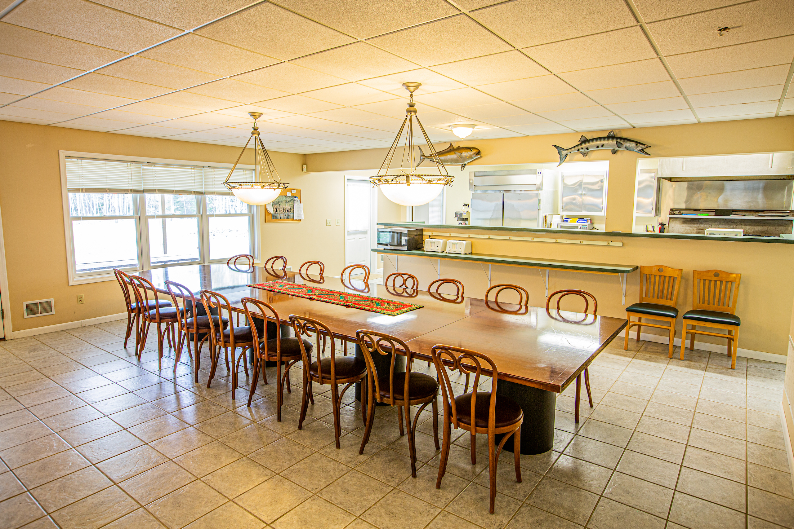 - Large harvest table, dining room