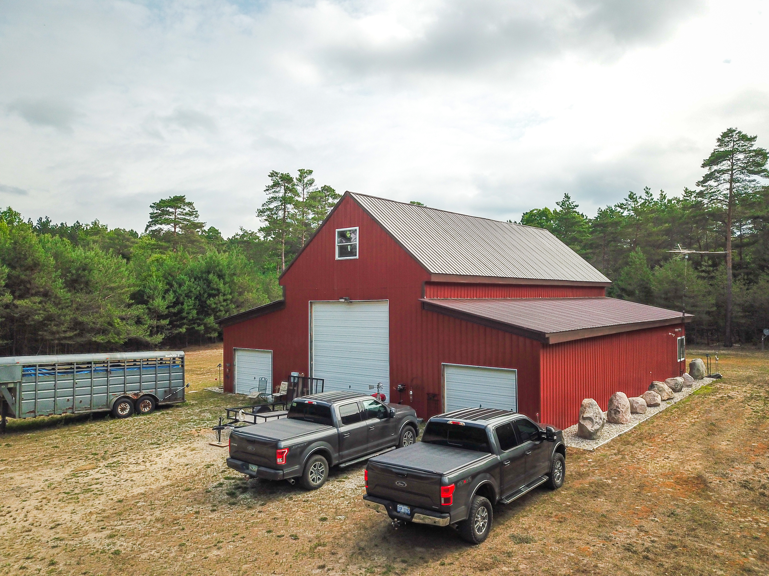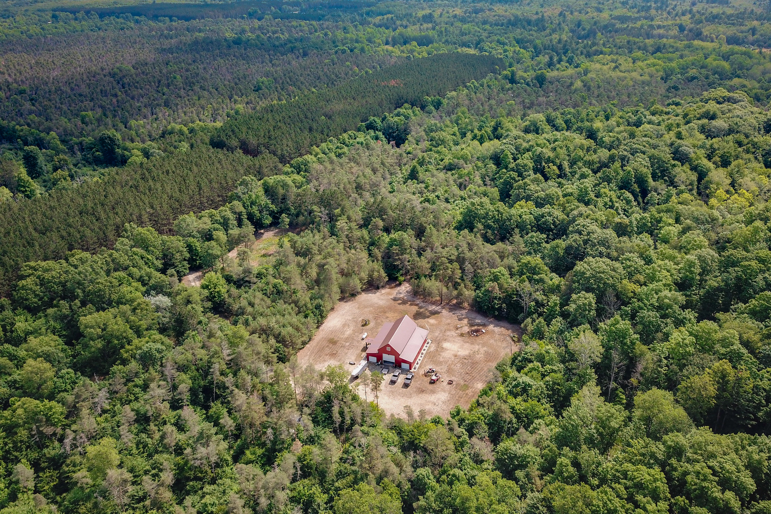 This huge 56x60 pole barn with a partially finished apartment and acreage sit conveniently adjacent to the Manistee National Forest. Located ¼ mile down a seasonal road, this property is the perfect setting for deer camp, a quiet weekend getaway, or even a place to call home. This tract is high and dry, with beautiful rolling hills full of deer, turkey, and grouse. Seller already has most of the materials needed to finish the apartment, including sheetrock, tile & grout, T&G for walls and ceiling, and additional insulation, all included for the new owner. A massive loft has even more potential for additional living space. Three big bays house all your toys and equipment, and there are even two RV hookups for visitors! Call Justin Olk for a private showing today before this one is gone!