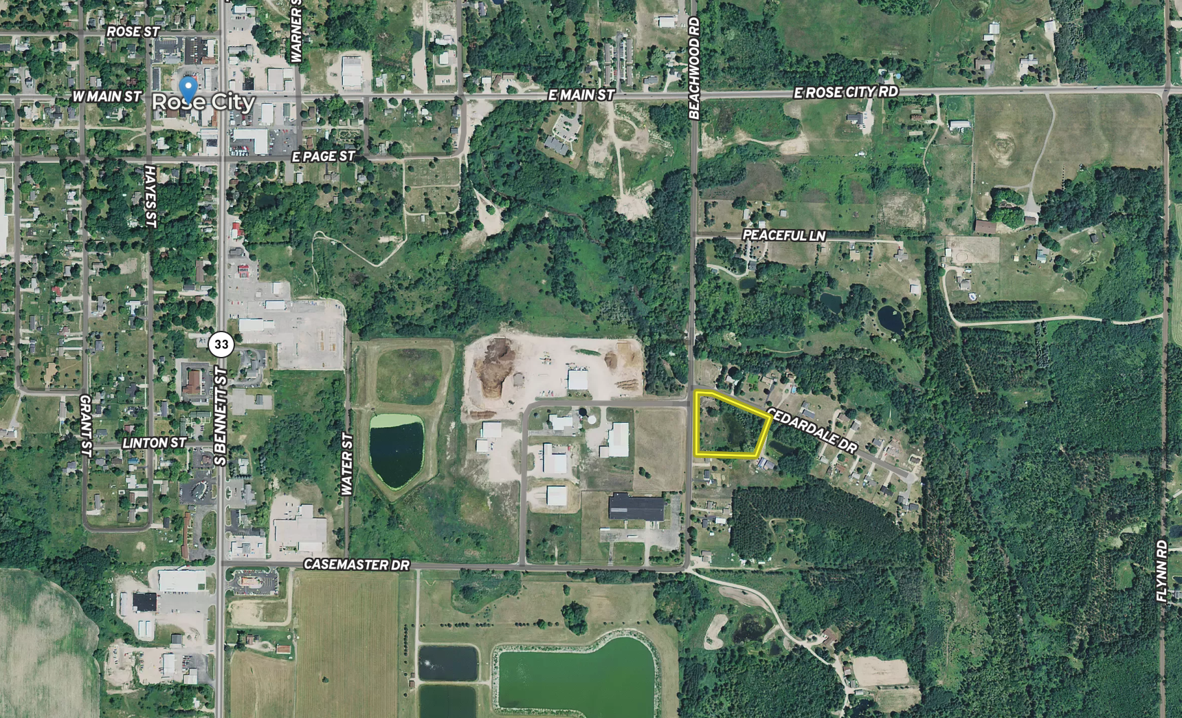 Beautiful large 1.5 acre corner lot with a pond in Rose City. Property lays naturally higher on the roadside of the pond which would make the perfect spot for a home overlooking the pond or with a walkout basement. Corner Lots like this are rare and hard to find, especially this close to town.