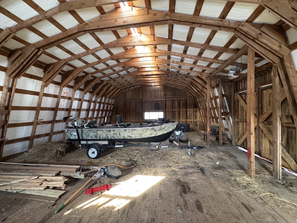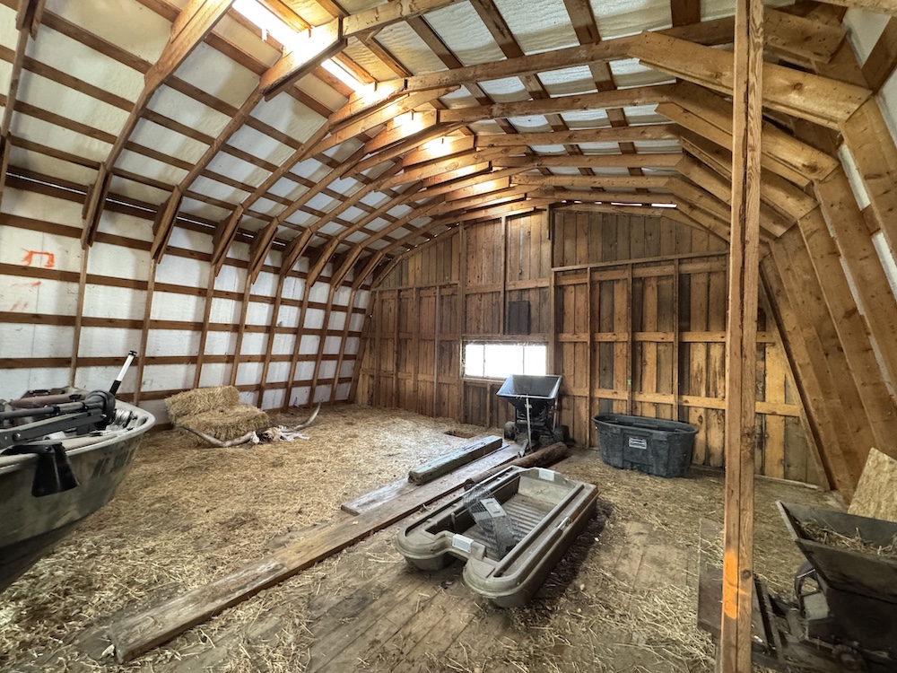 The large detached Gambrel barn has 4 horse stalls on the lower level and a large upper area perfect for hay, equipment, or general storage. Additional outbuildings include a shed and a large detached 2-car garage (24’ x 32’) for even more storage. A potential pond site lies across the drive to the west side of the easement, adding to the property’s versatility.