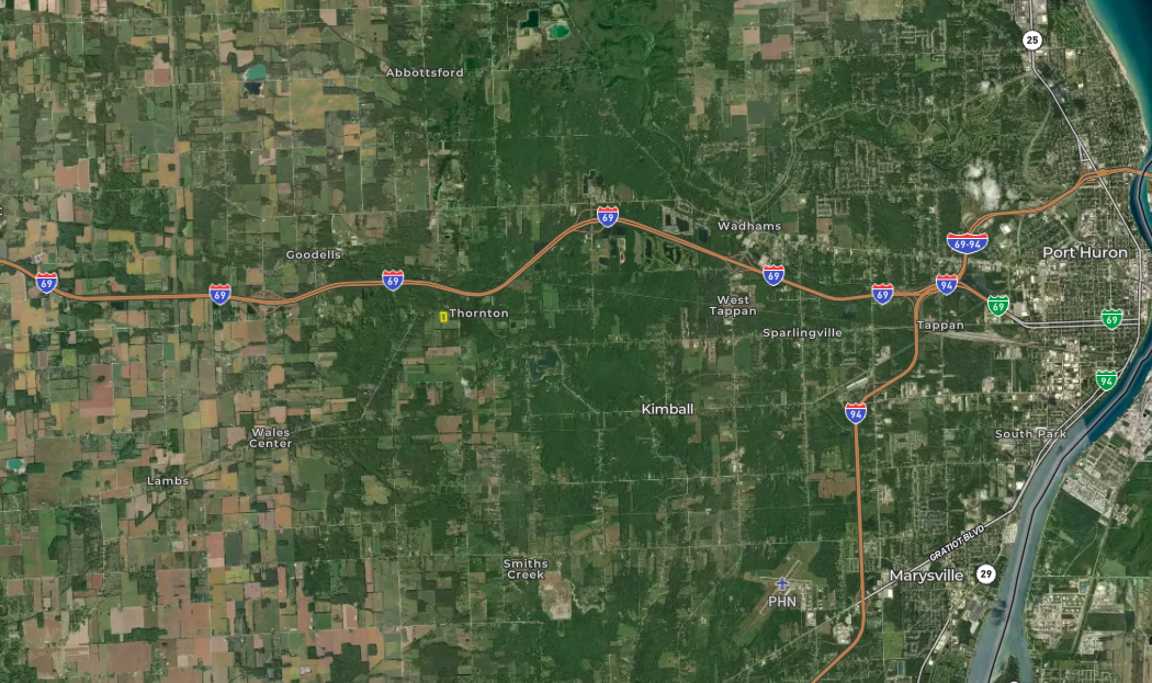 Located in Goodells, Michigan, this 5.31± acre corner parcel provides a strong rural build opportunity with frontage on both Sparling Rd and Mayer Rd. Power is available at the road, supporting future construction plans. The property is primarily wooded, offering natural privacy and a setting that blends well with the surrounding landscape. A ravine runs through the south portion of the parcel, creating terrain variation and adding visual character to the property. The corner location provides flexibility for driveway placement and layout considerations depending on buyer preferences and local approvals. Conveniently positioned near I-69, the parcel allows efficient travel to nearby cities. Port Huron is located approximately 12 miles away, and the Greater Detroit area is roughly 30 miles from the property. Parcels offering both road frontage and natural tree cover continue to be desirable for buyers seeking rural property within commuting distance of larger employment centers.
