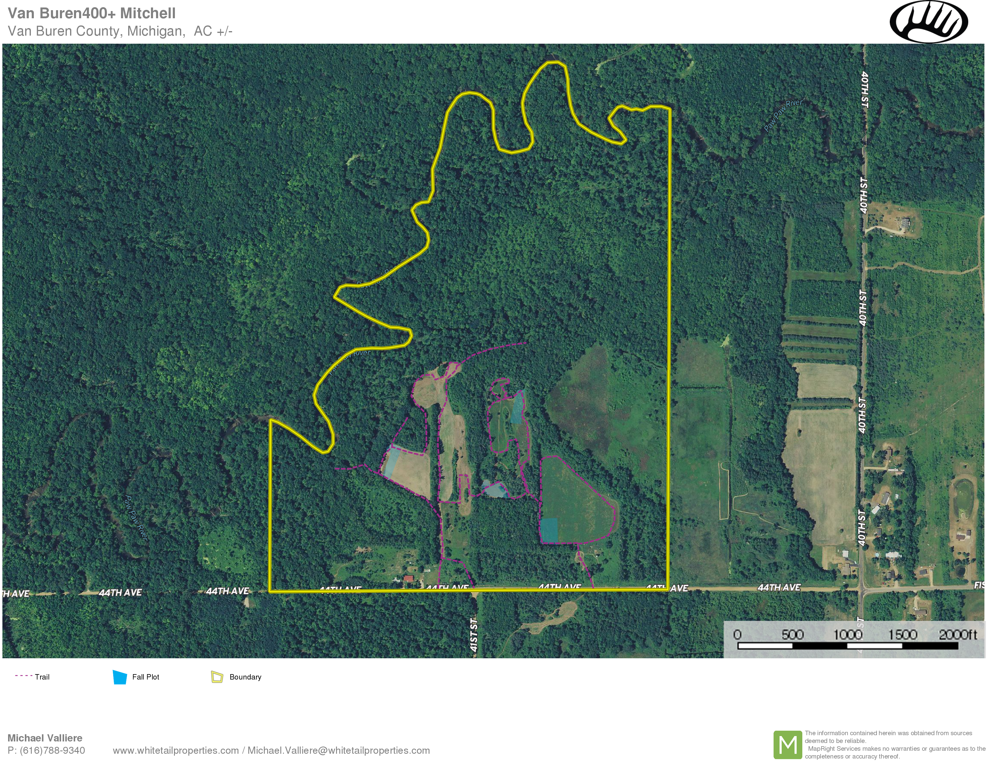 This affordable farm has the ultimate mix of all things necessary to consistently produce southern Michigan trophy belt giants! Security Cover, River frontage (Water source), Open acres for plot or potential tillable income that all provide the necessary ingredients to have a turnkey trophy hunting operation! We have started the process by implementing a trail system and plot plan that could certainly provide turnkey results! The area has consistently produced top end whitetails. Deer, Turkeys, and Fish on the Paw Paw River frontage provide the perfect base for an all-inclusive recreational farm. Would love to give you a fully guided tour of this one – it will not disappoint!