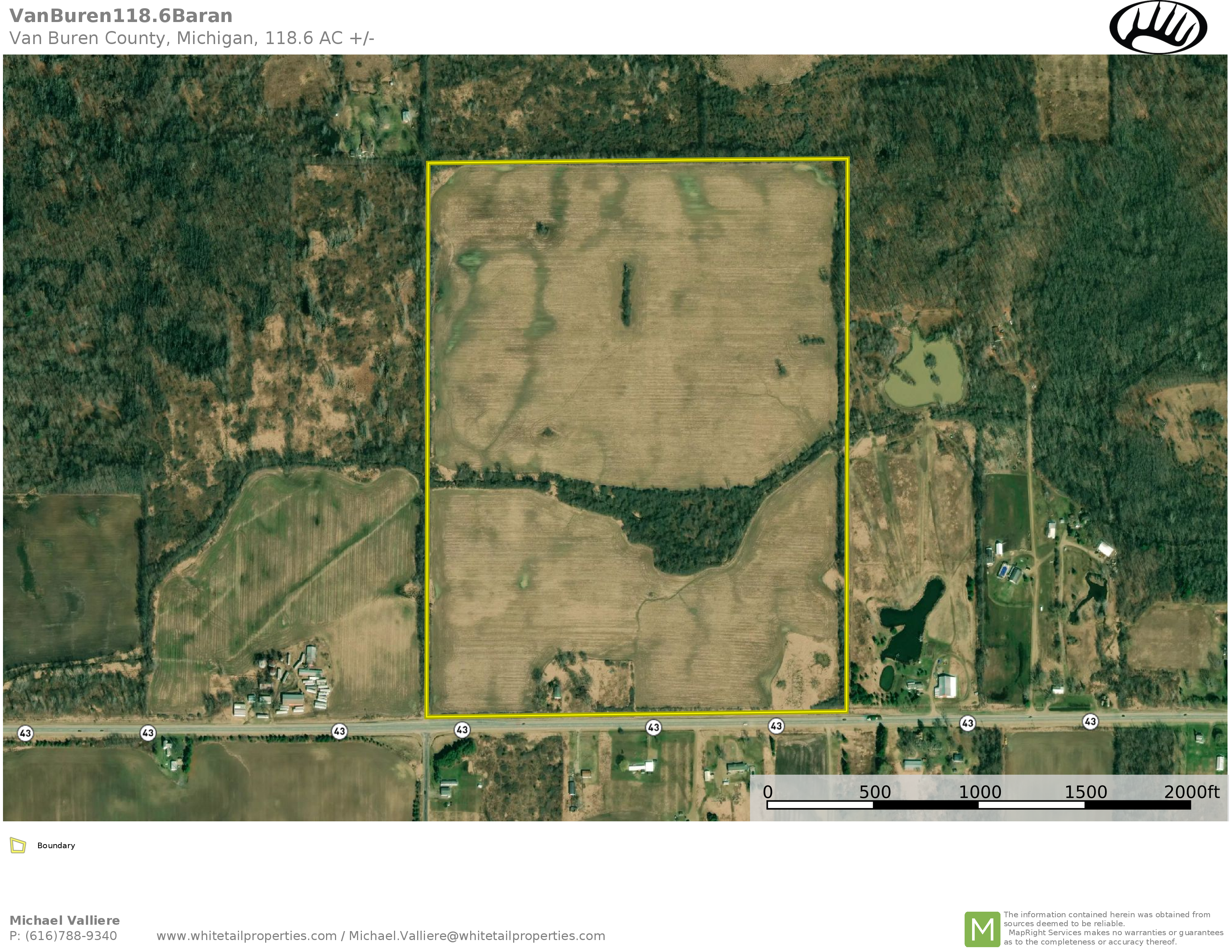 Family-owned for many years – properties like this do not come on the market every day! Paved Road frontage on M-43 with 40th St Running the entire West Property Line. This tract features 102 income-producing acres currently cash rented on an annual contract to a local farmer in a corn/soybean rotation. This gently sloping, primarily silty loam soil property boasts an NCCPI average of 73.7. The recently updated storage shed features concrete floors, electricity, new doors, and new steel. Whether looking for an investment, a place to build, country living, or just your own slice of S. Michigan – let me know if you’d like me to give you a tour!