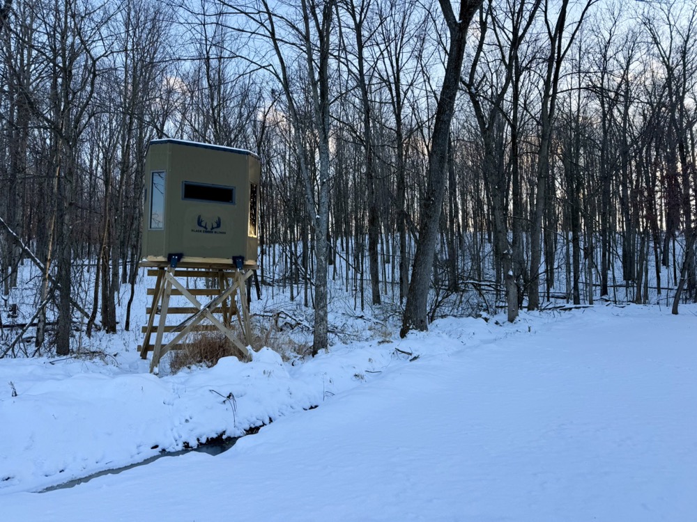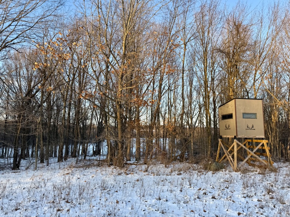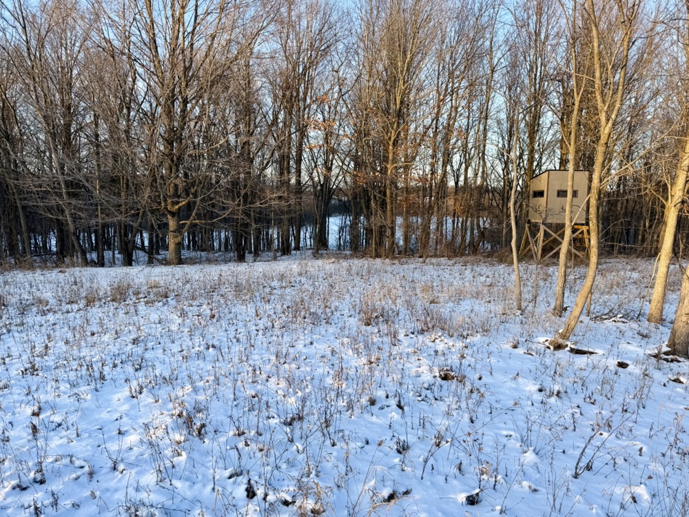 Two professionally constructed custom box blinds are positioned on the property overlooking established food plot areas. These locations were selected to take advantage of existing travel corridors and habitat features. The surrounding area is known for strong deer populations, and the combination of timber, agriculture, and water contributes to seasonal wildlife movement patterns. Waterfowl activity is also present due to the lake and surrounding habitat.