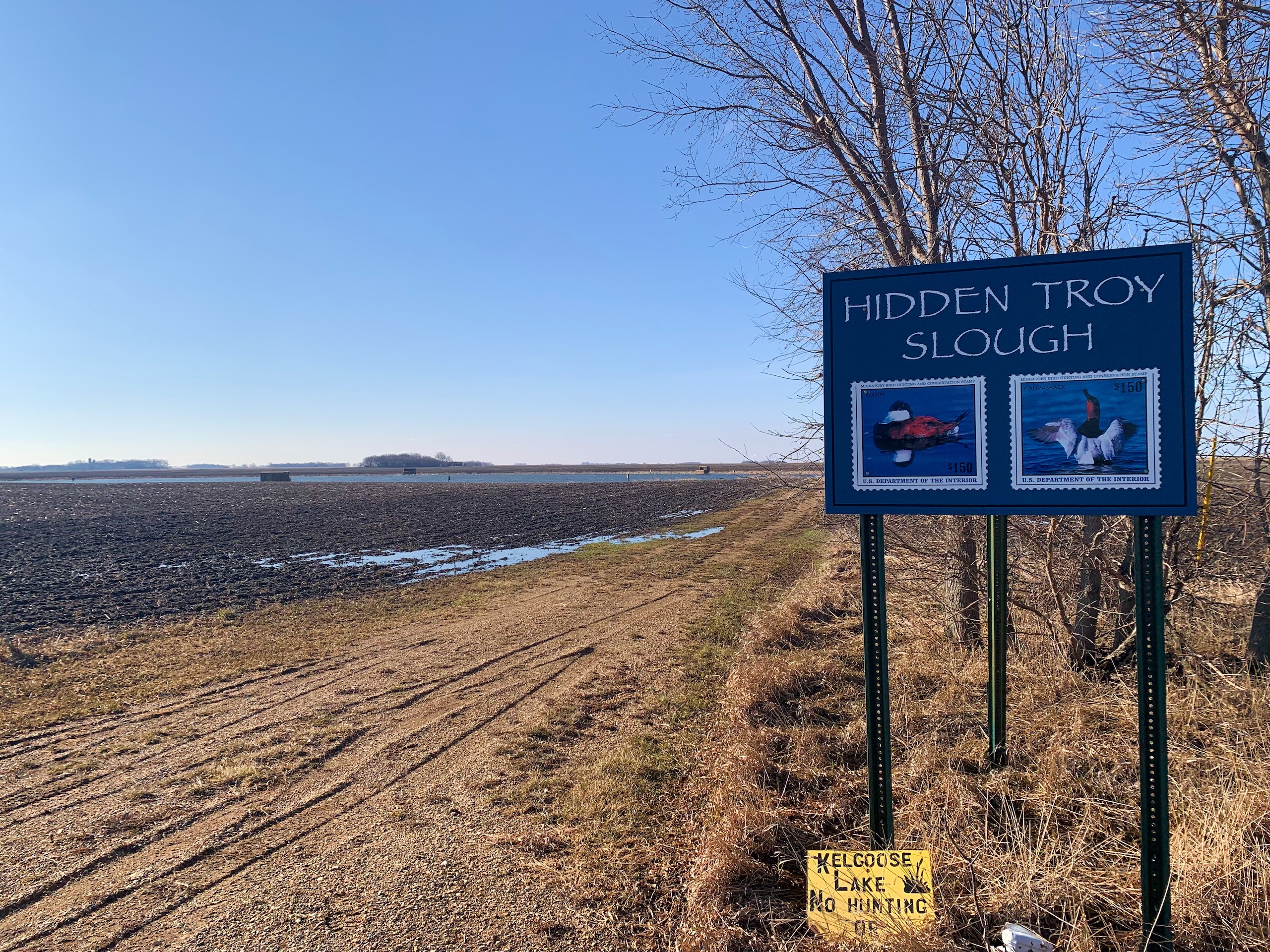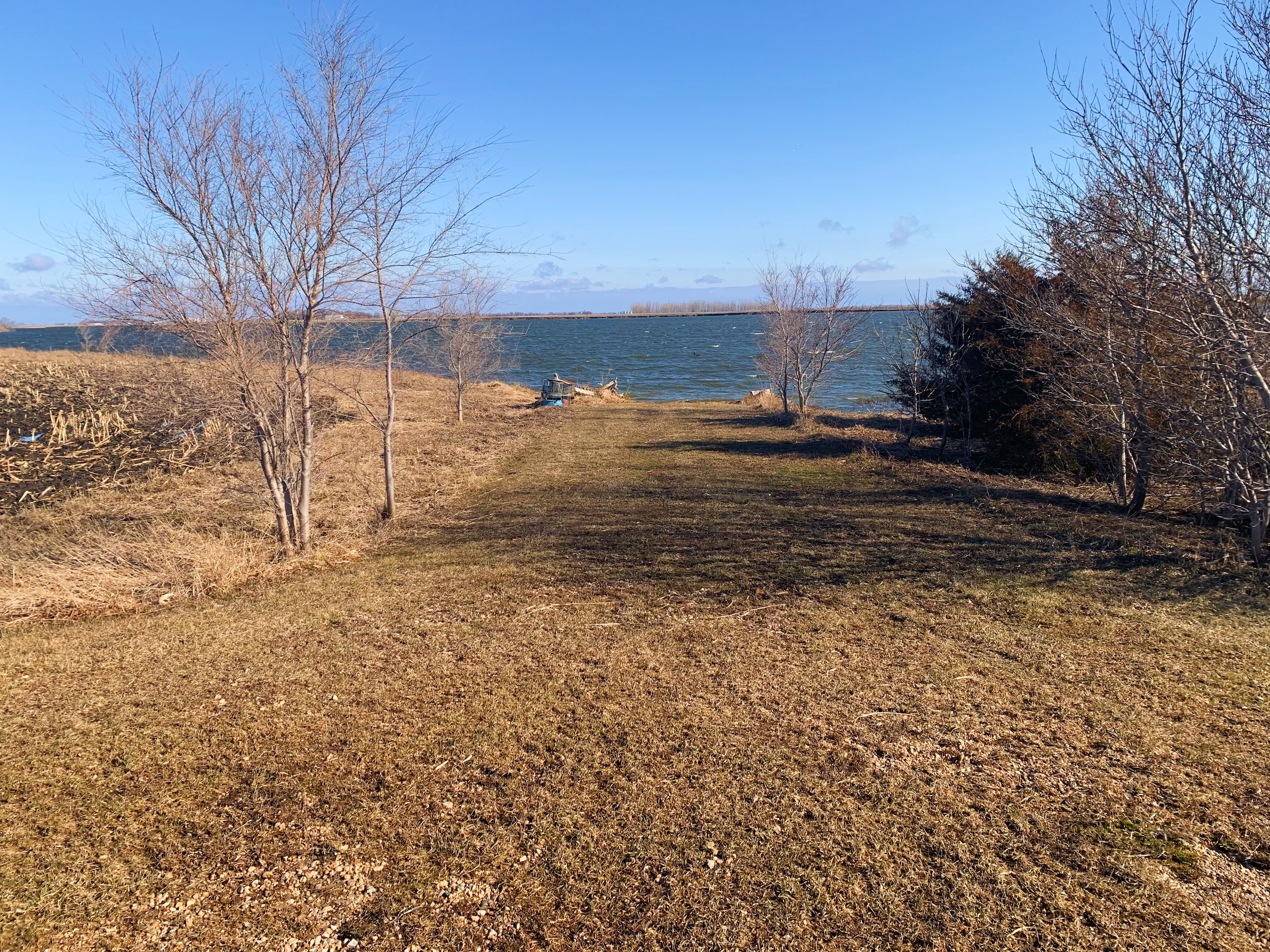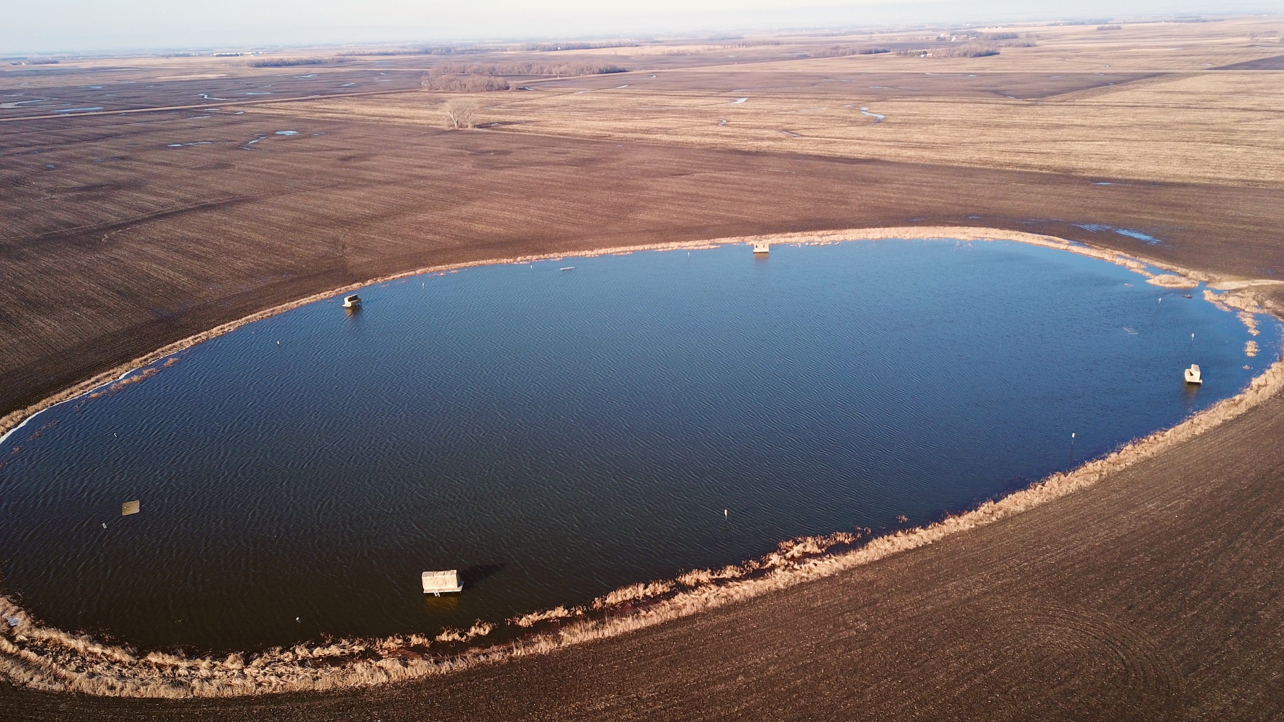 The property is currently owned and utilized by a professional waterfowl outfitter which says something on its own. Not only is there the main lake which has been dubbed “Kelgoose Lake” but there is another satellite waterfowl slough dubbed “Hidden Troy Slough” as well. Both of these come with 9 established blinds (the lake has 5 and the slough has 4) that have been strategically positioned to accommodate any wind direction. The lake has an existing solid boat landing even in wet conditions and will accommodate even larger boats and there is another landing area at the slough as well. There is also an approximately 5-acre building site that has power running up to it and all of this is accessed through the privately owned driveway off of the county highway.