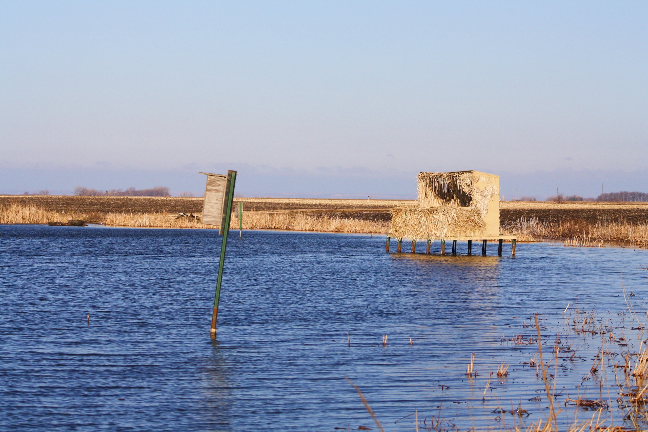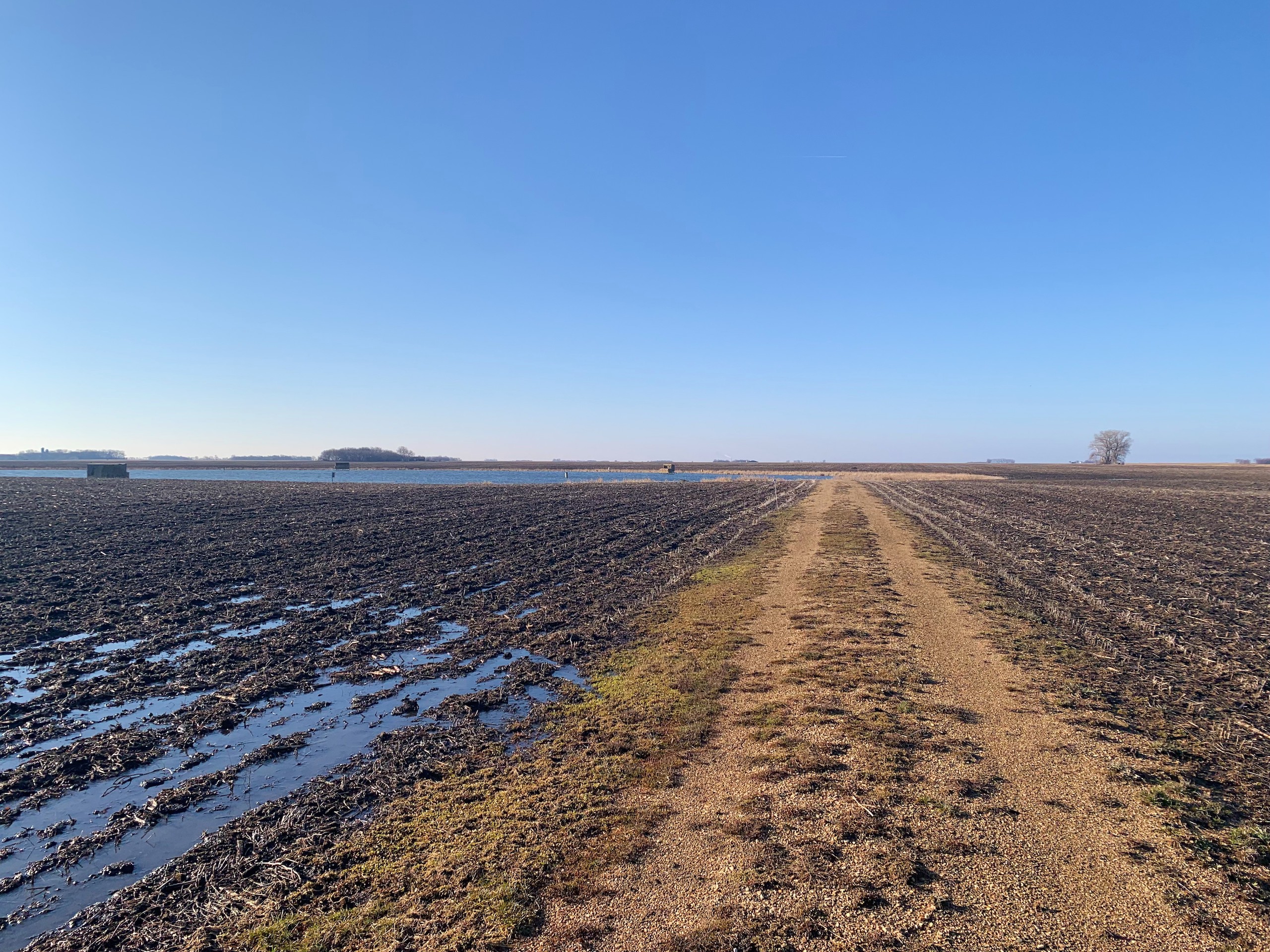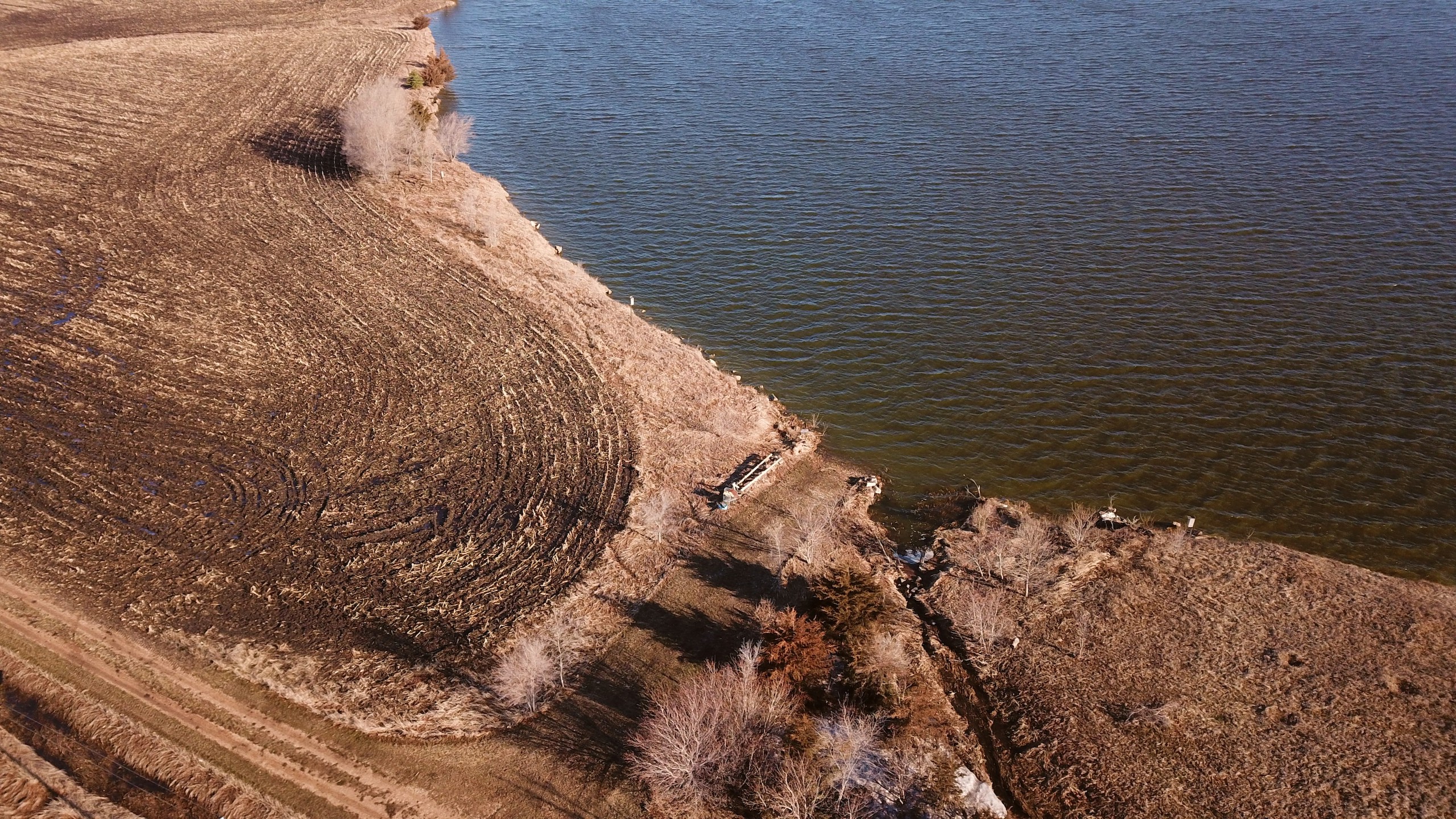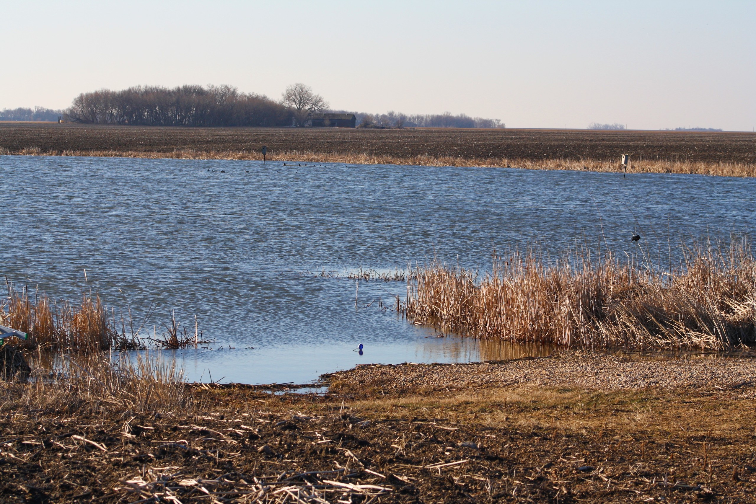 The property is currently owned and utilized by a professional waterfowl outfitter which says something on its own. Not only is there the main lake which has been dubbed “Kelgoose Lake” but there is another satellite waterfowl slough dubbed “Hidden Troy Slough” as well. Both of these come with 9 established blinds (the lake has 5 and the slough has 4) that have been strategically positioned to accommodate any wind direction. The lake has an existing solid boat landing even in wet conditions and will accommodate even larger boats and there is another landing area at the slough as well. There is also an approximately 5-acre building site that has power running up to it and all of this is accessed through the privately owned driveway off of the county highway.